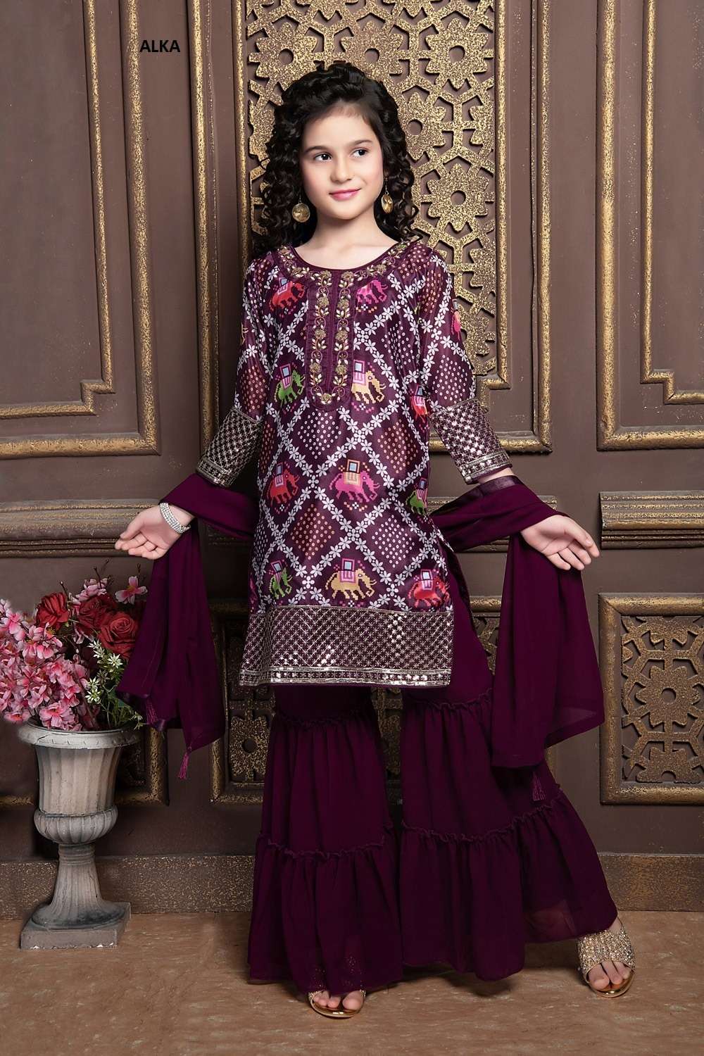 alka aaradhna vol 41 kidswear readymade lehenga choli and sharara suit
