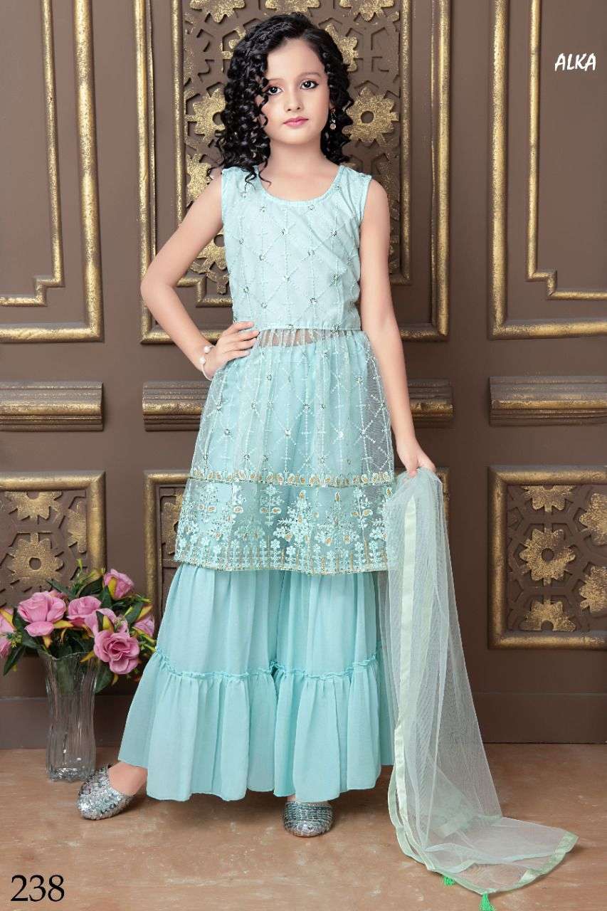 alka vol 21 kids wear readymade top with sharara & dupatta
