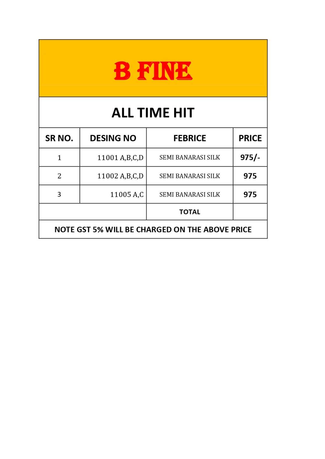 BRAND : B FINE CATALOG : ALL TIME HIT VOL - 2 FABRIC : SEMI BANARASI SILK |