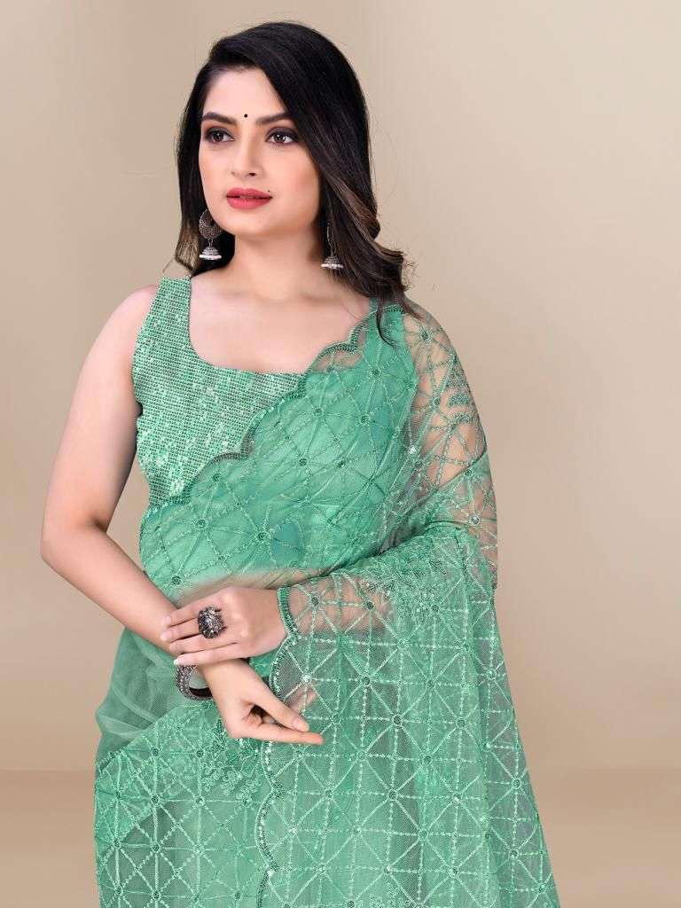 New Launch Allen sarees 🥻Saree Fabric - Soft Net Embroidered Saree With Sequins Cut Work Border With blouse- 6.30 |
