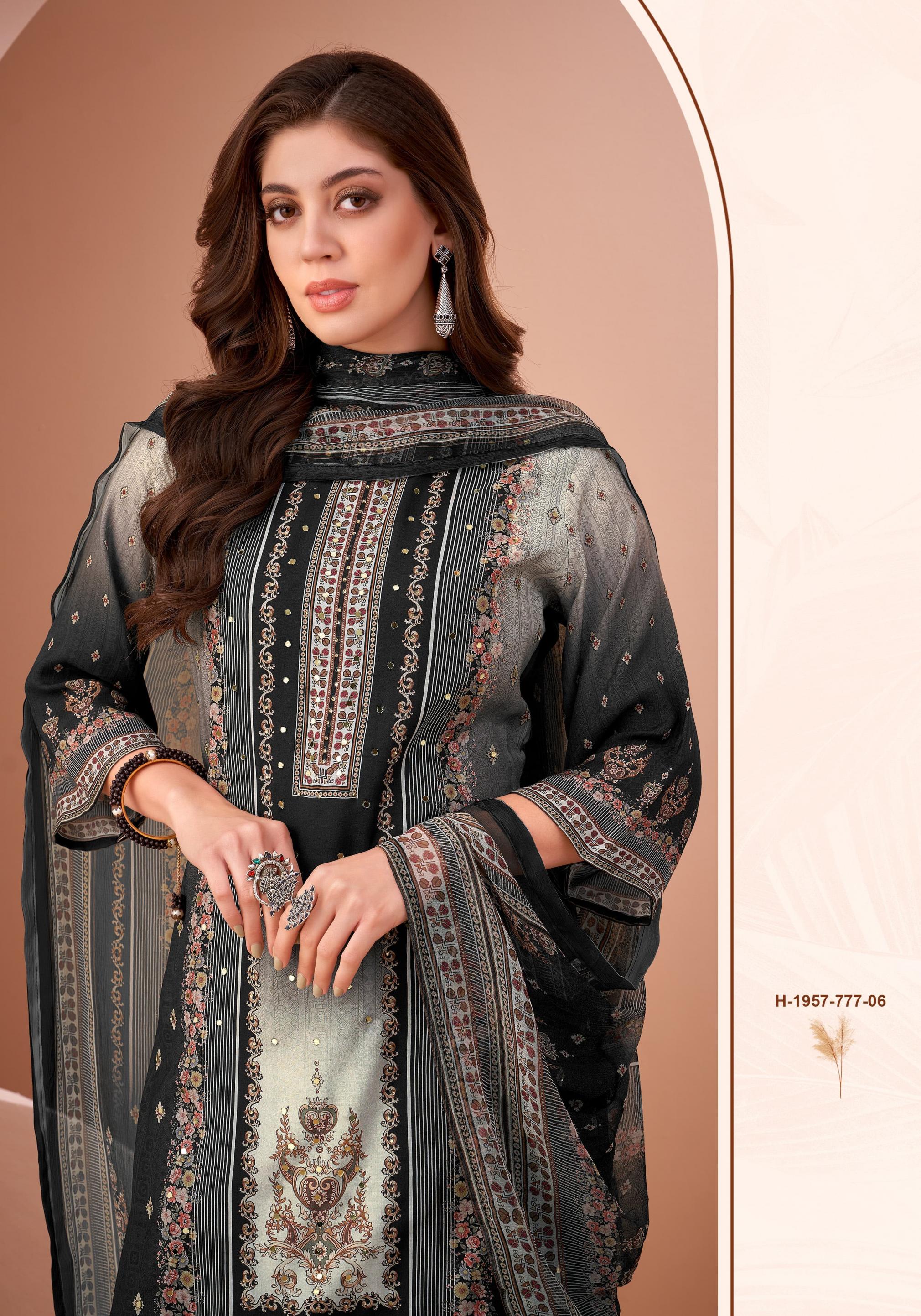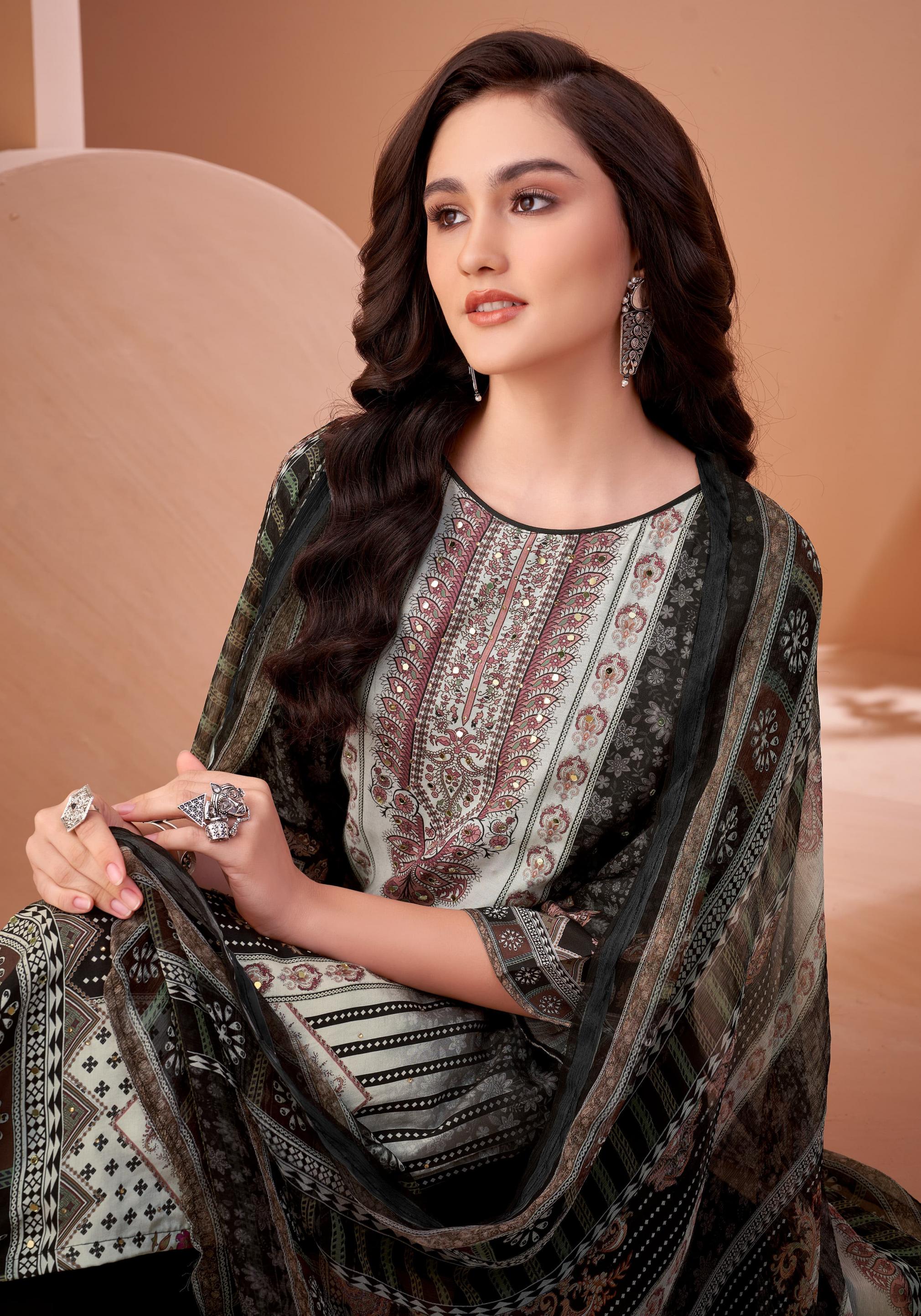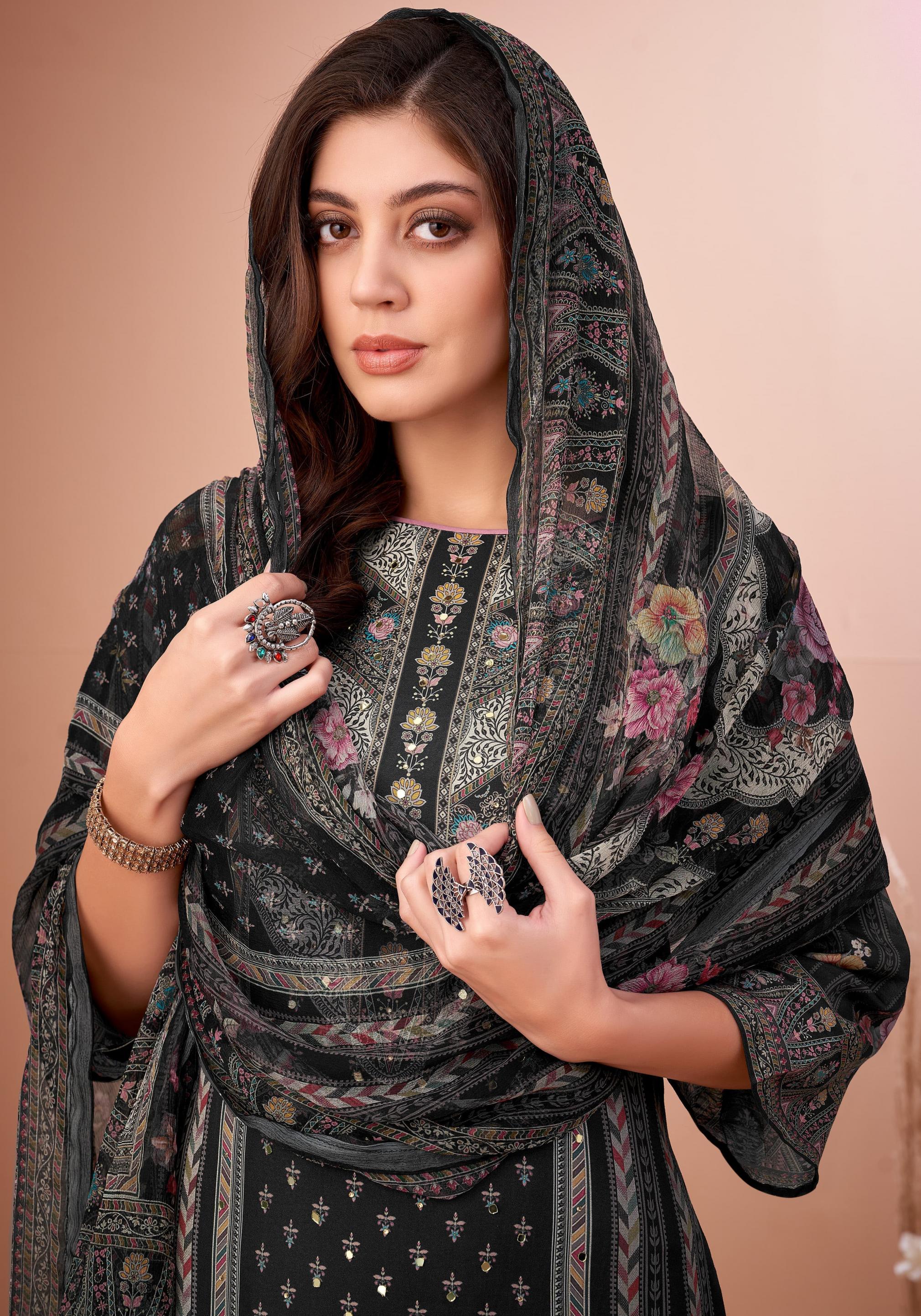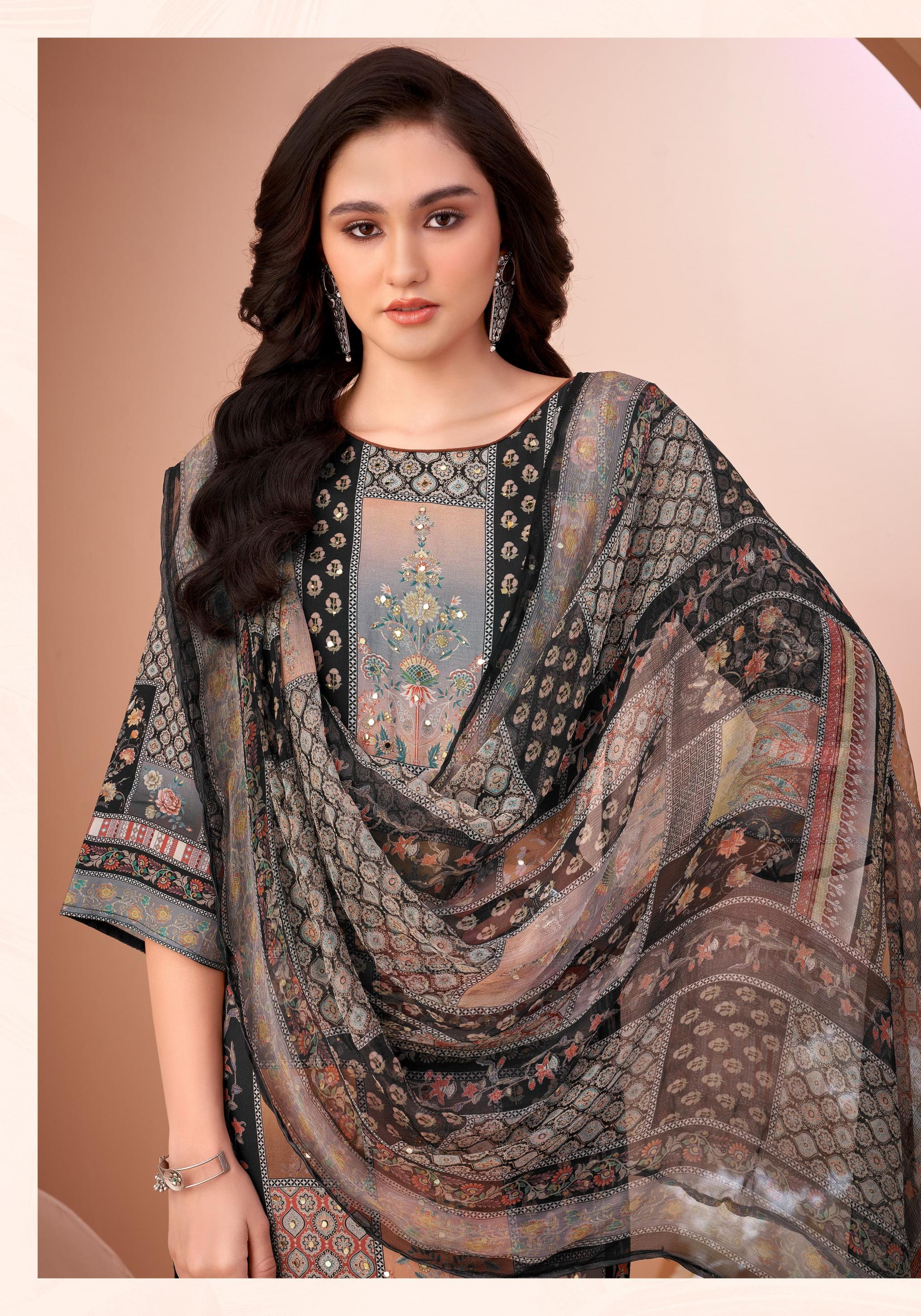 alok black mirror viscose muslin digital pakistani 3 pcs dress