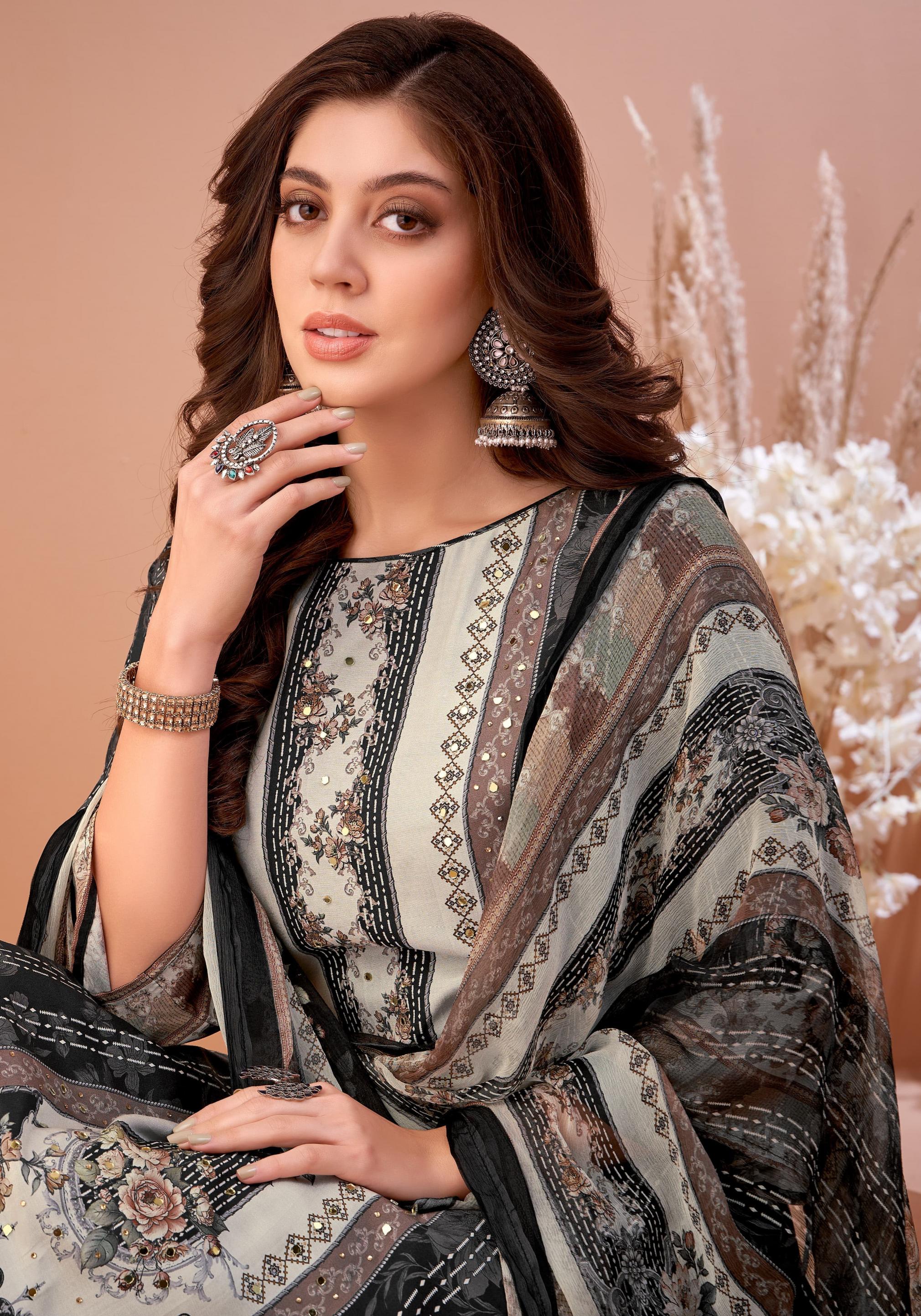 YOUR FAVOURITE BRAND♥️ Launches its New Designer Suits : BLACK MIRROR 🔸 Fabric Details 🔸 👖 Bottom: Pure 100% Viscose Reyon 🏳️ Dup: Pure Viscose Bemberg Chiffon Print Dupatta RATE: 8️⃣4️⃣0️⃣+5️⃣%GST 8️⃣Pcs |