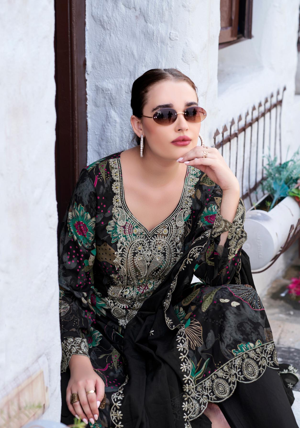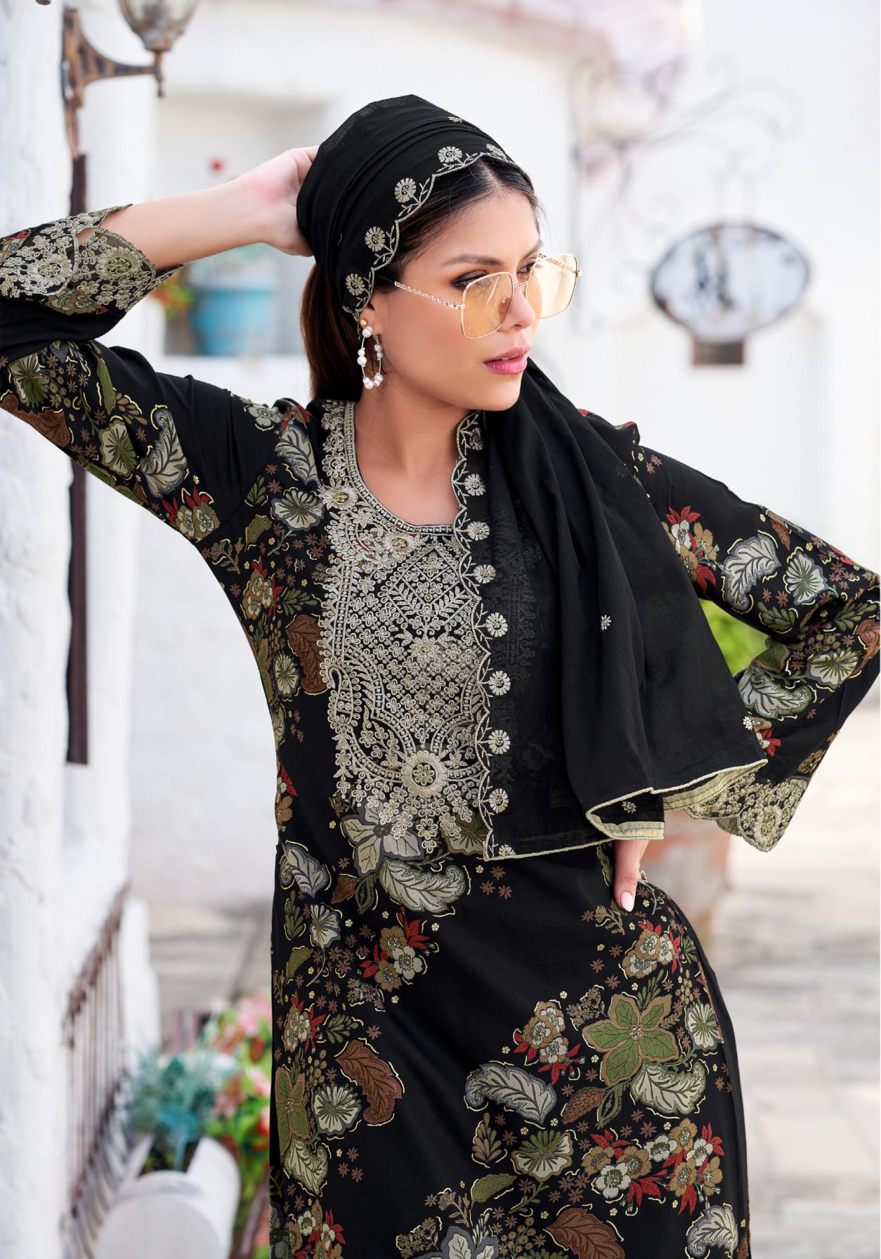 ♥️YOUR FAVOURITE BRAND♥️ Launches its New Designer Suits : BLACK BUNNY-2 🔸 Fabric Details 🔸 👖 Bottom: Pure Reyon Solid With Embroidery Work 🏳️ Dup: Pure Cotton Solid With Fancy Embroidery Work RATE: 7️⃣8️⃣0️⃣+5️⃣%GST 6️⃣Pcs |