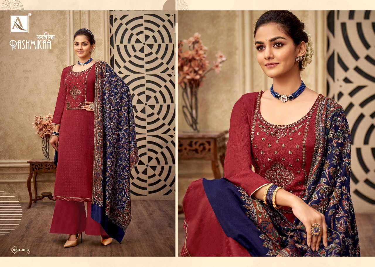 ♥️YOUR FAVOURITE BRAND♥️ Launches its New Designer Suits : RASHMIKAA 🔸 Fabric Details 🔸 👖 Bottom: Pure Wool Pashmina Solid 🏳️ Dupatta: Pure Wool Pashmina Hand Weave Jacquard Dupatta RATE: 8️⃣4️⃣0️⃣ + 5️⃣%GST 7️⃣ Pcs |