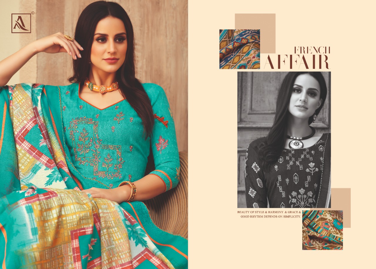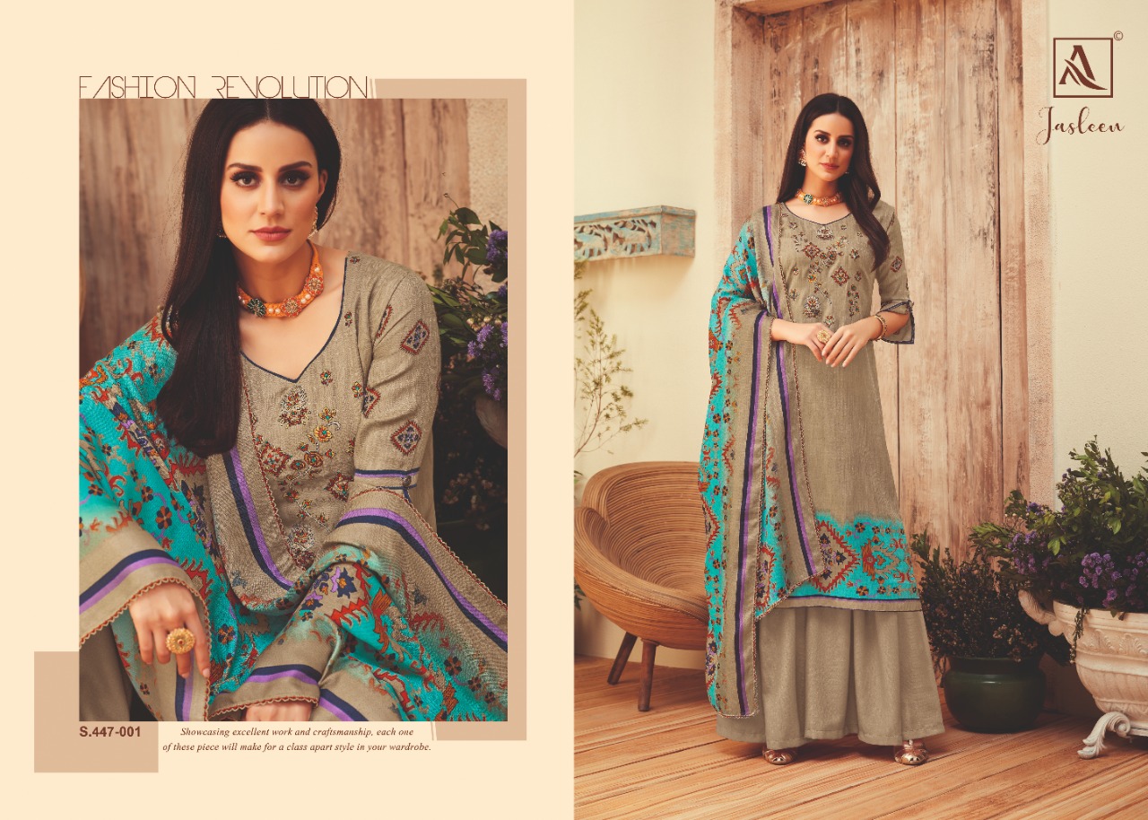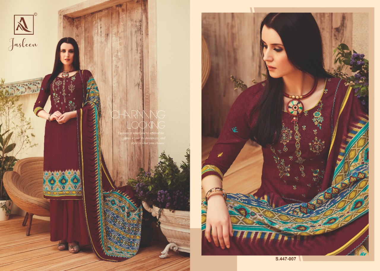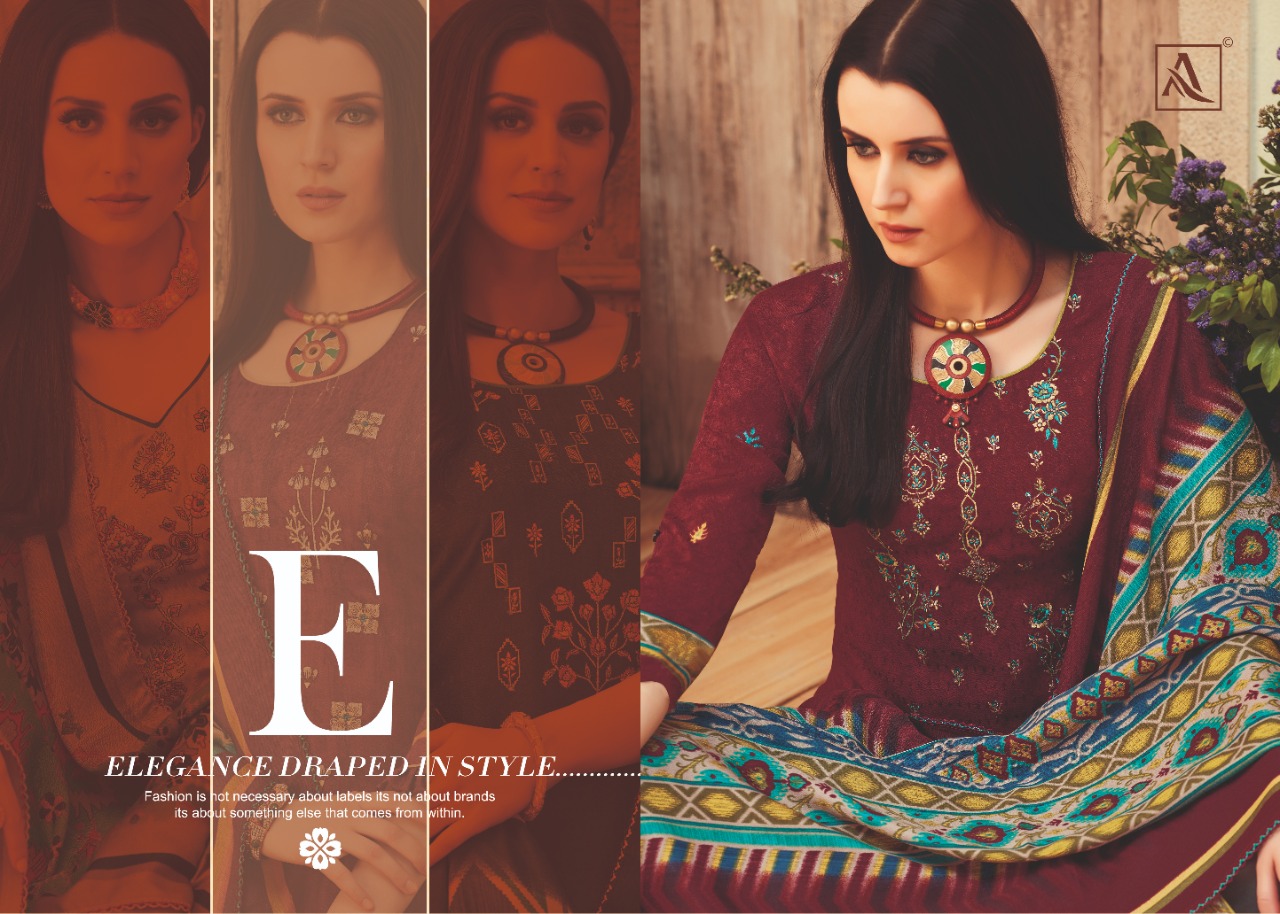 Alok Suit Jasleen Wool Pashmina Jequard Dress Materials Wholesaler Surat