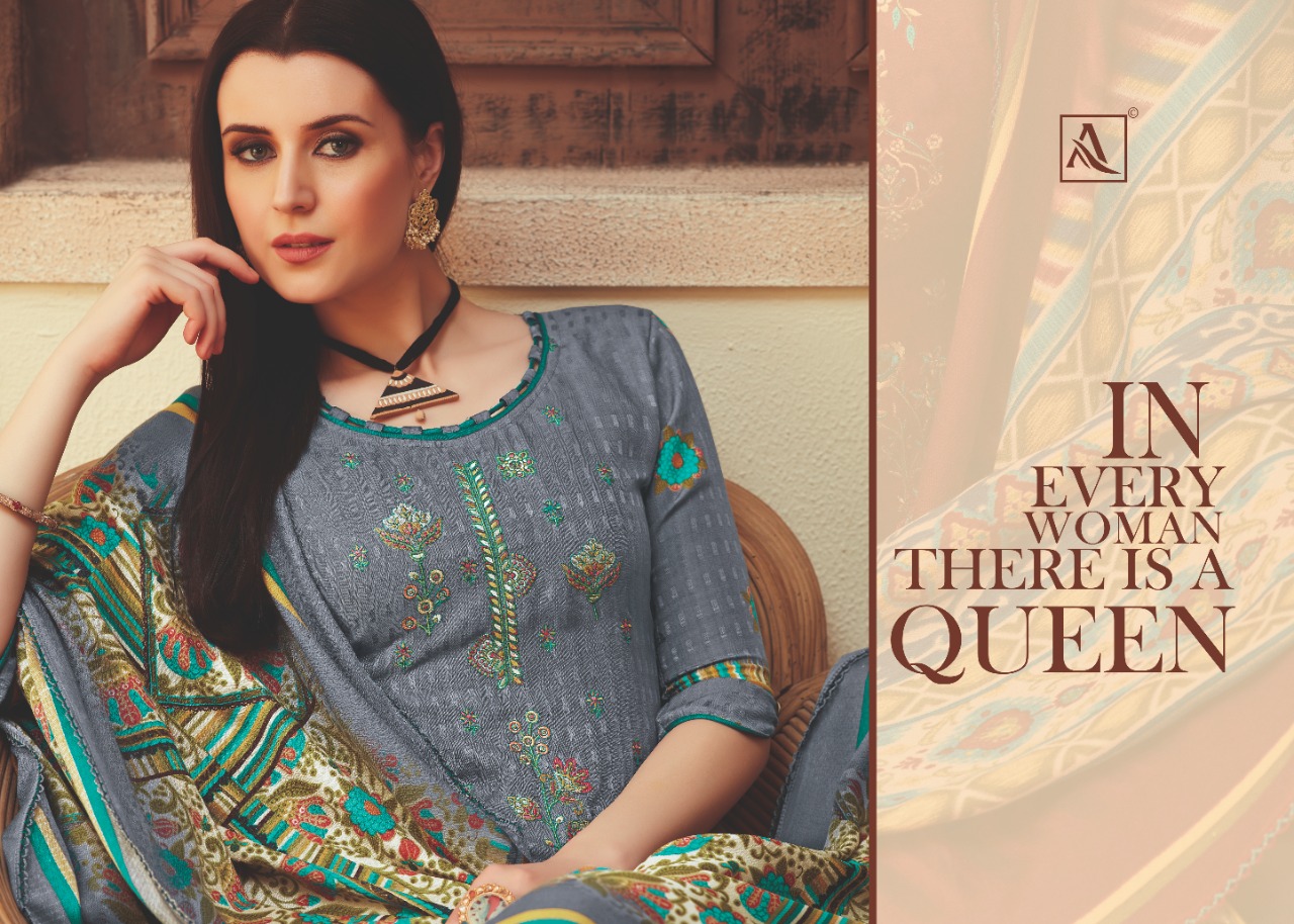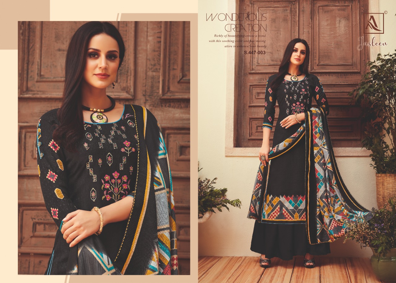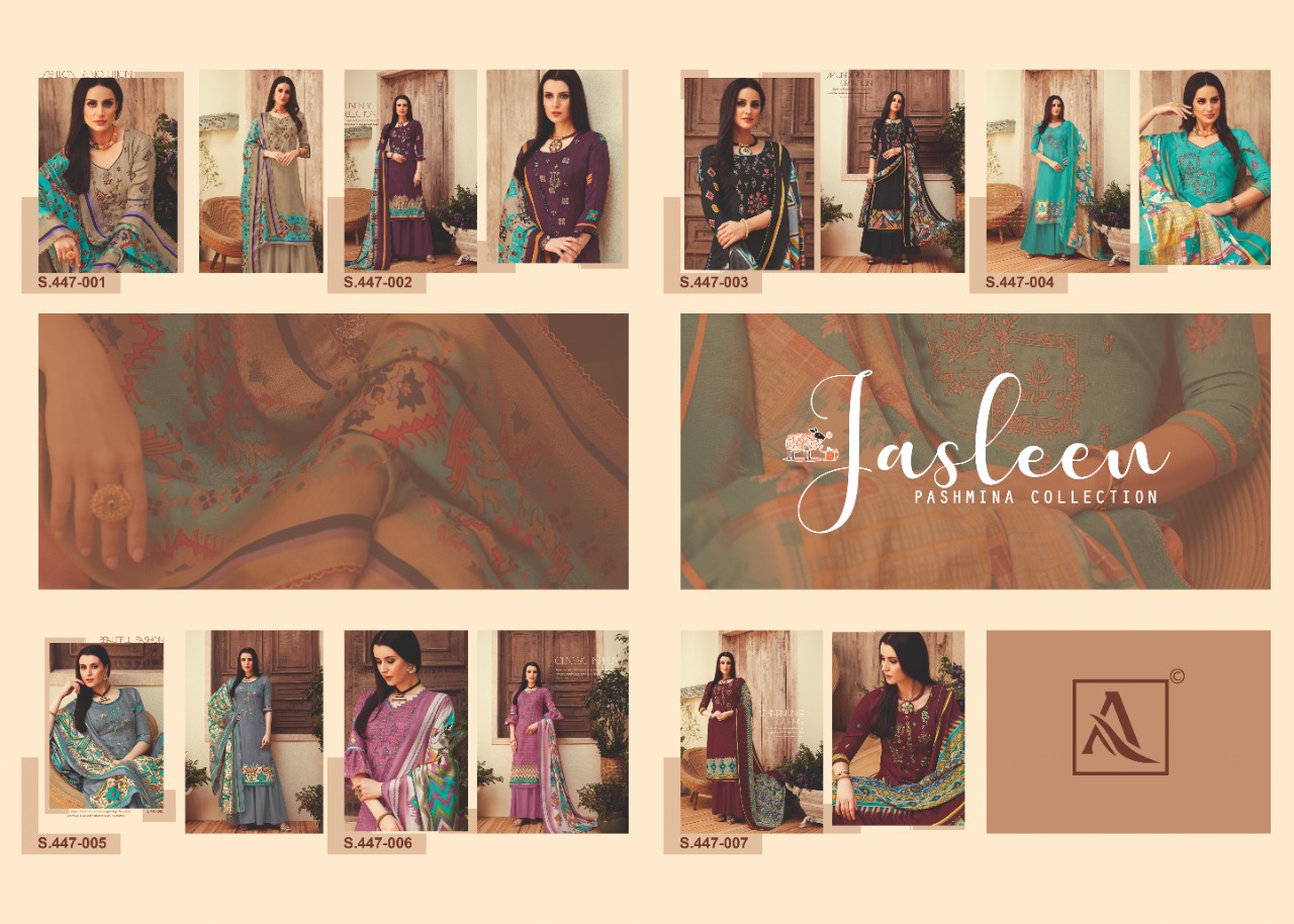Alok Suit Jasleen Wool Pashmina Jequard Dress Materials Wholesaler Surat