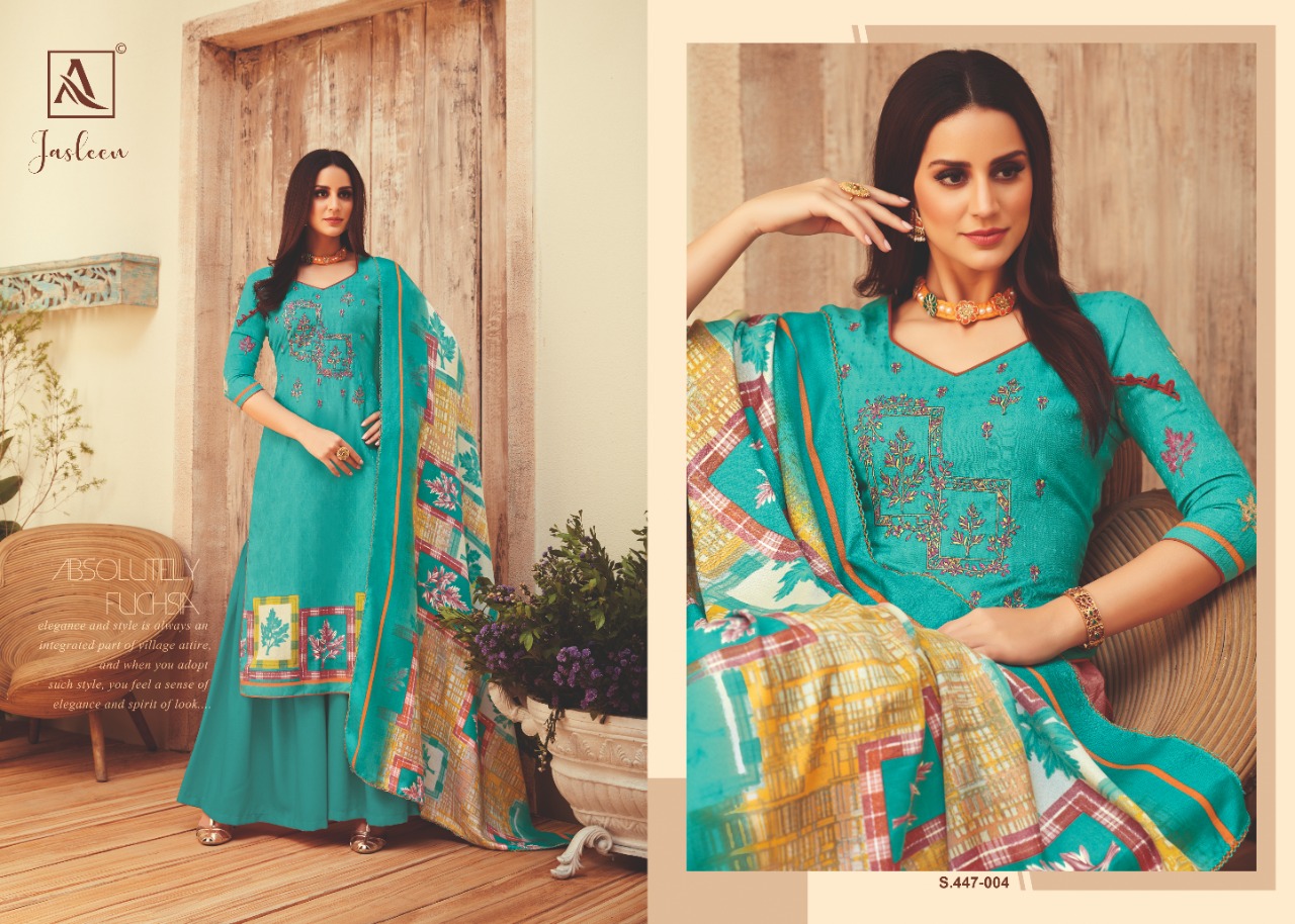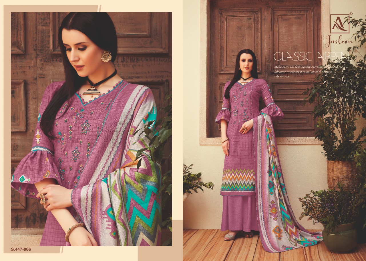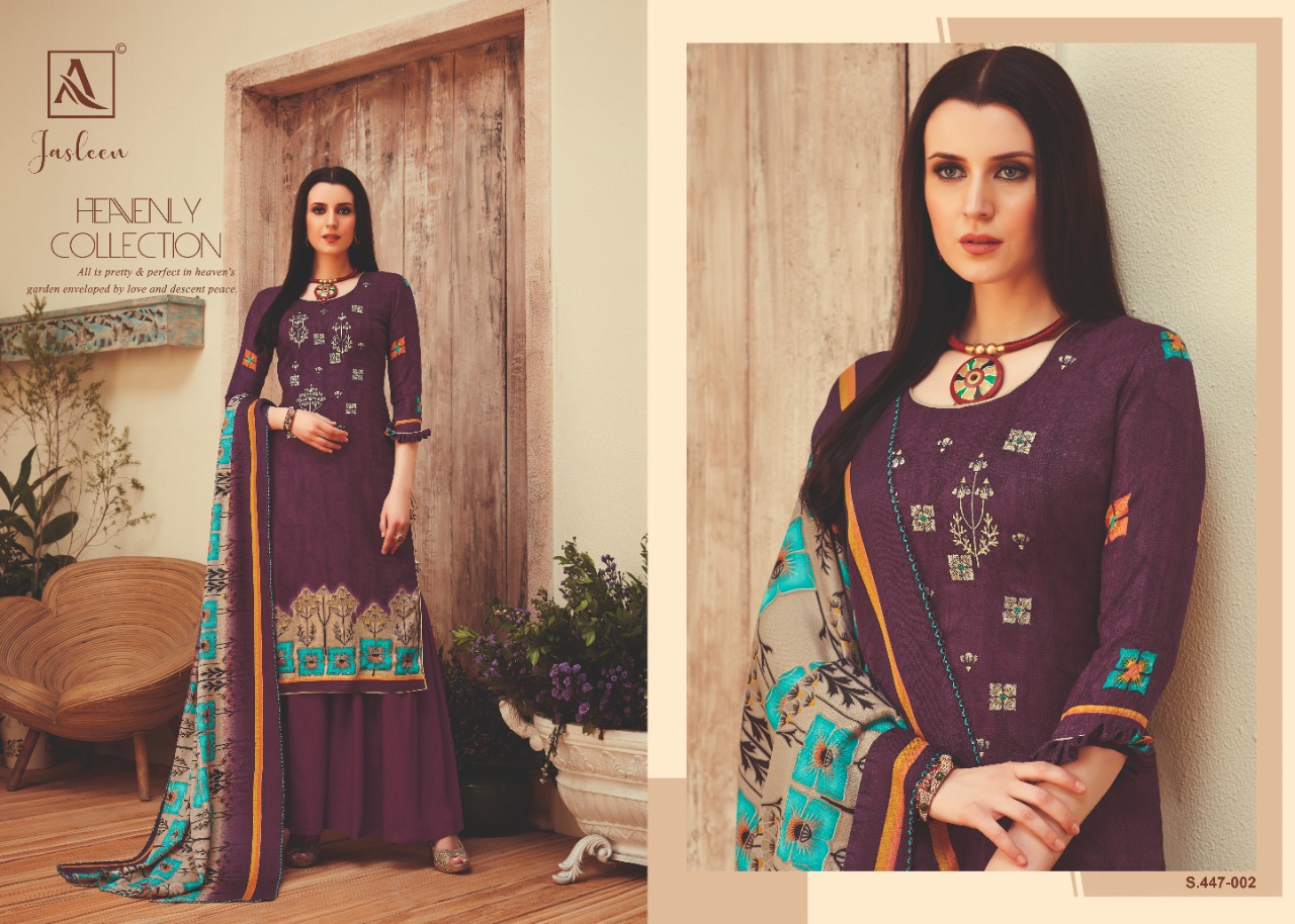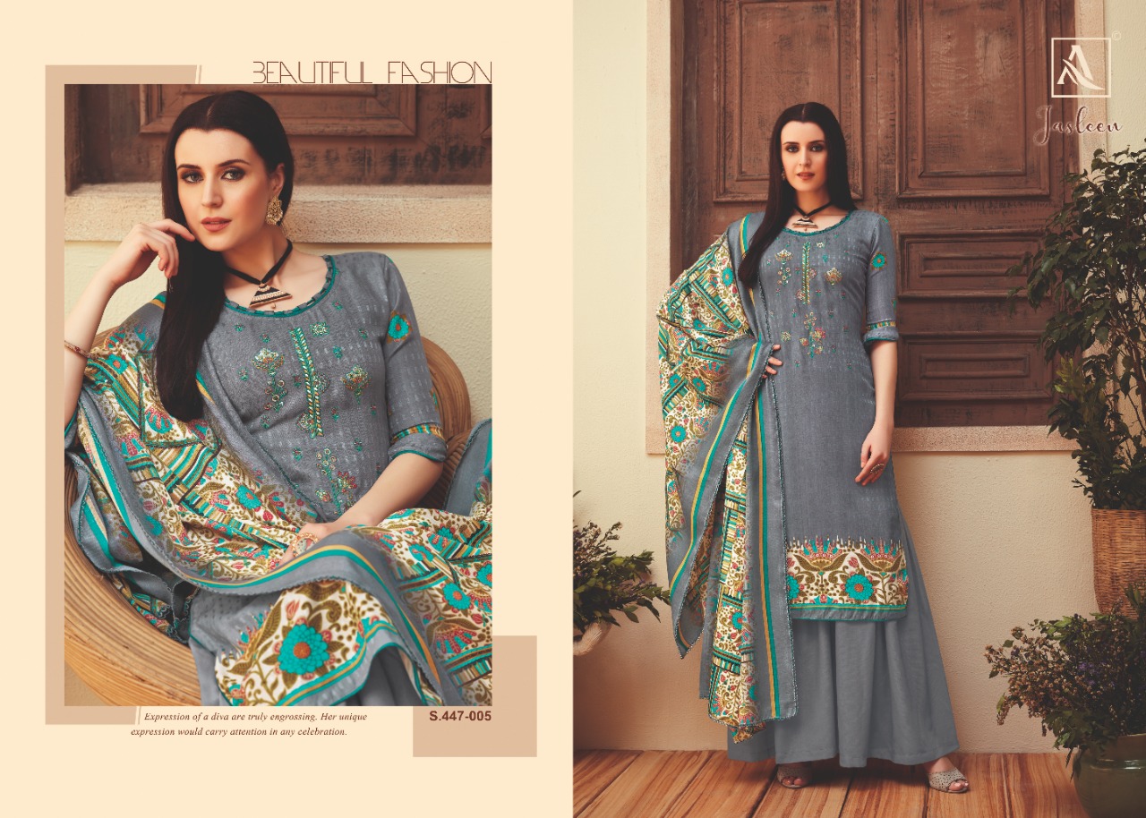 Alok Suit Jasleen Wool Pashmina Jequard Dress Materials Wholesaler Surat