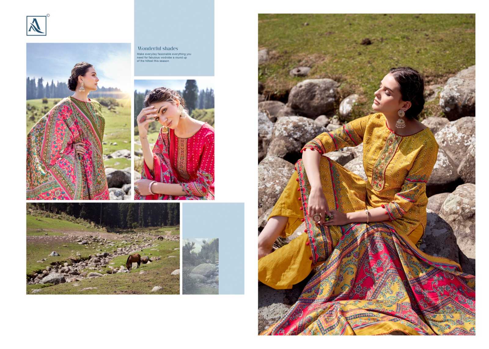 alok suit kesariya elegant printed wool unstitch salwar kameez winter wear