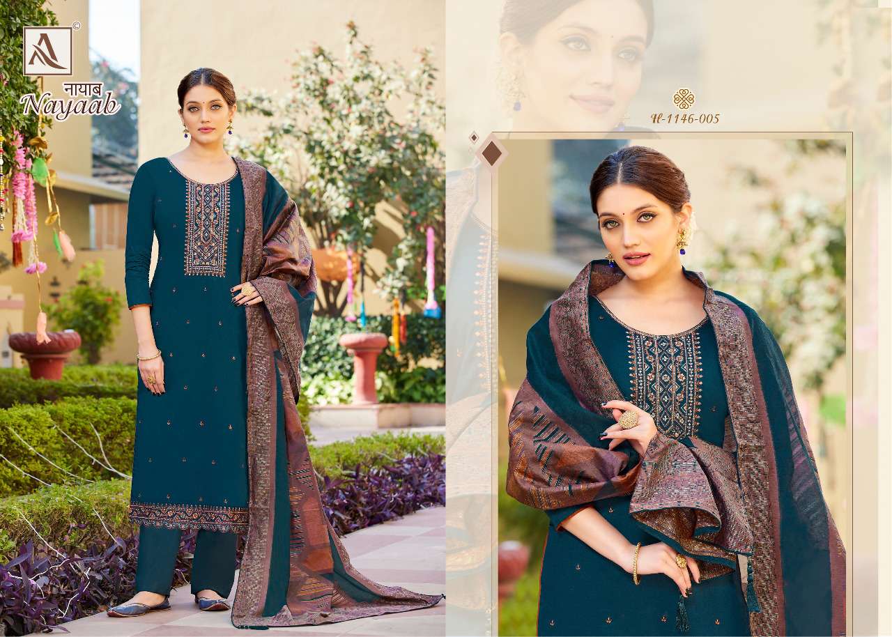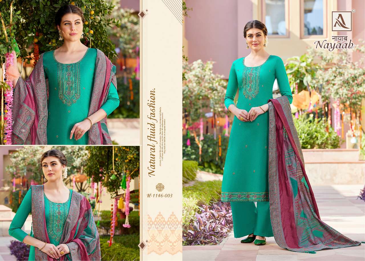 Alok Suit - Make in India 👗 Launches its New Designer Suits : NAYAAB 🔸 Fabric Details 🔸 👖 Bottom: Pure Cotton Solid 🏳️ Dupatta: Pure Hand Weave Katha Pattern Designer Dupatta With Piping Lace RATE: 8️⃣9️⃣9️⃣+5️⃣%GST 6️⃣Pcs |