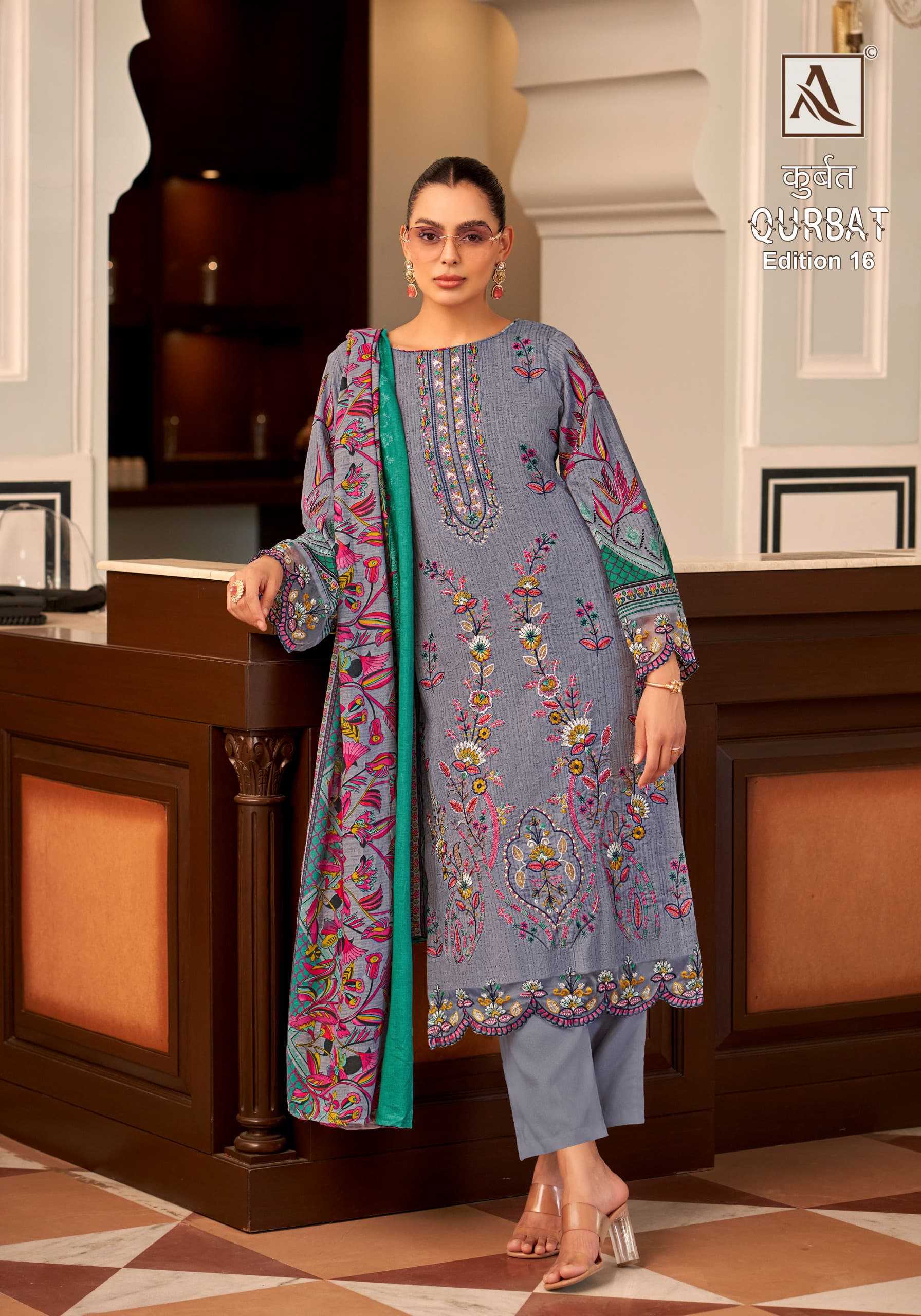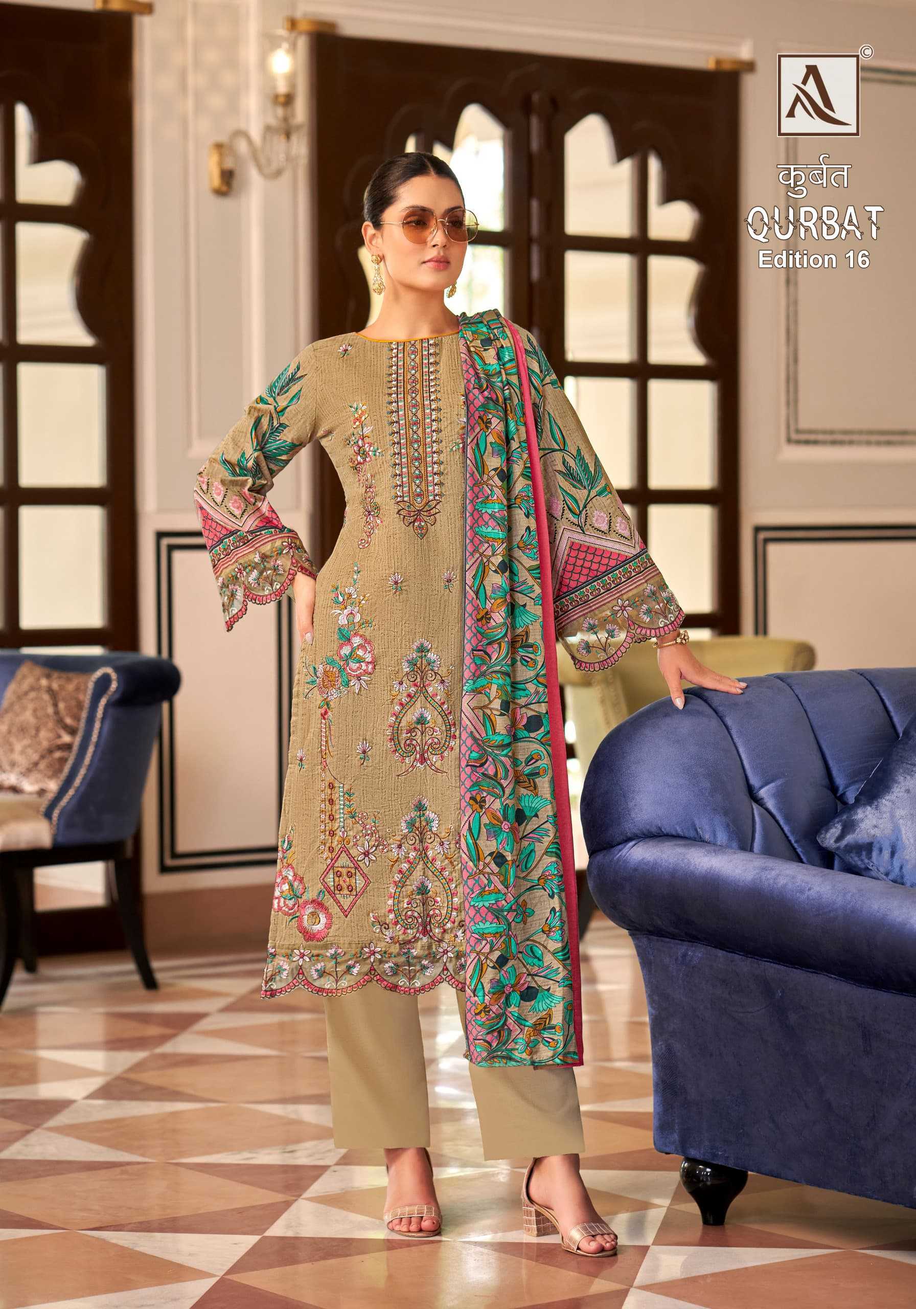 alok suit presents qurbat vol 16 stylish salwar kameez dress material