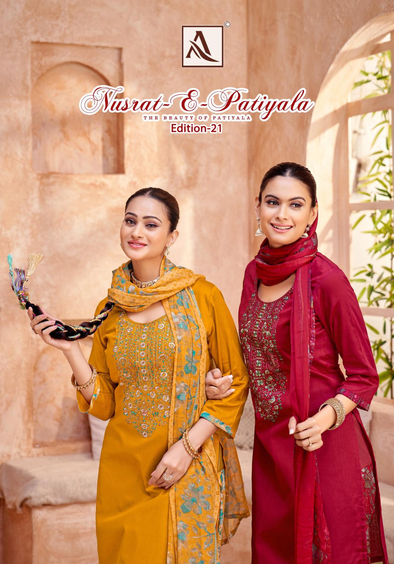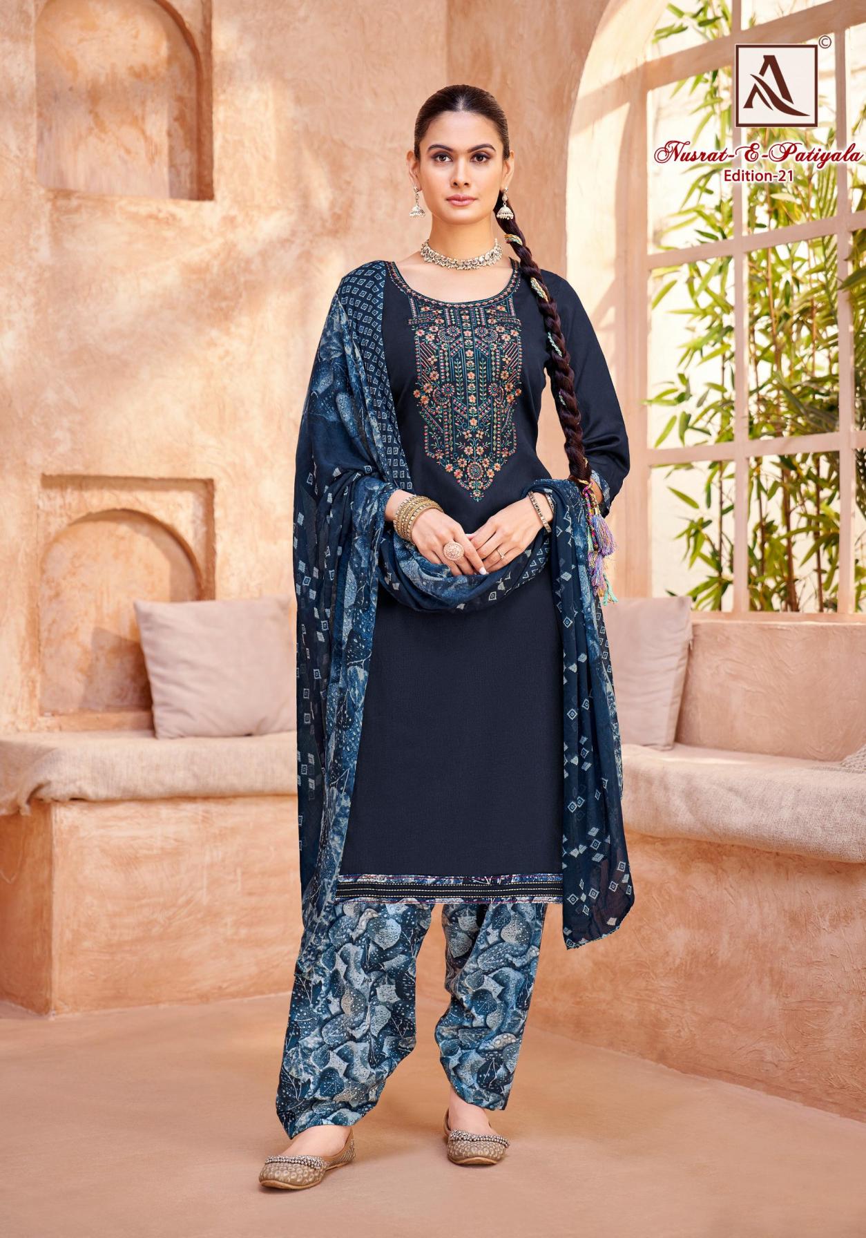 alok suits launch nusrat e patiyala vol 21 unstitched zam style patiyala suits