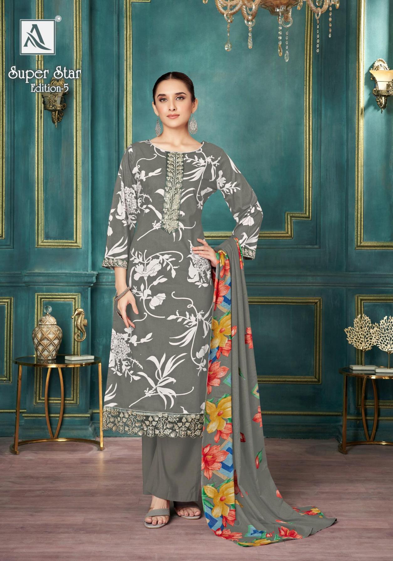 ♥️YOUR FAVOURITE BRAND♥️ Launches its New Designer Suits : SUPER STAR-5 🔸 Fabric Details 🔸 👖 Bottom: Pure Cotton Solid 🏳️ Dup: Pure Cotton Mal Mal Print Dupatta RATE: 620/- +5 %GST 6 Pcs |