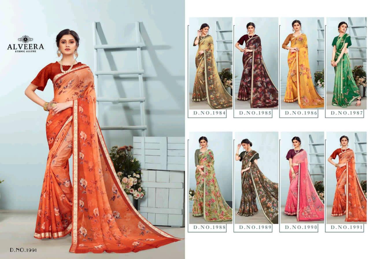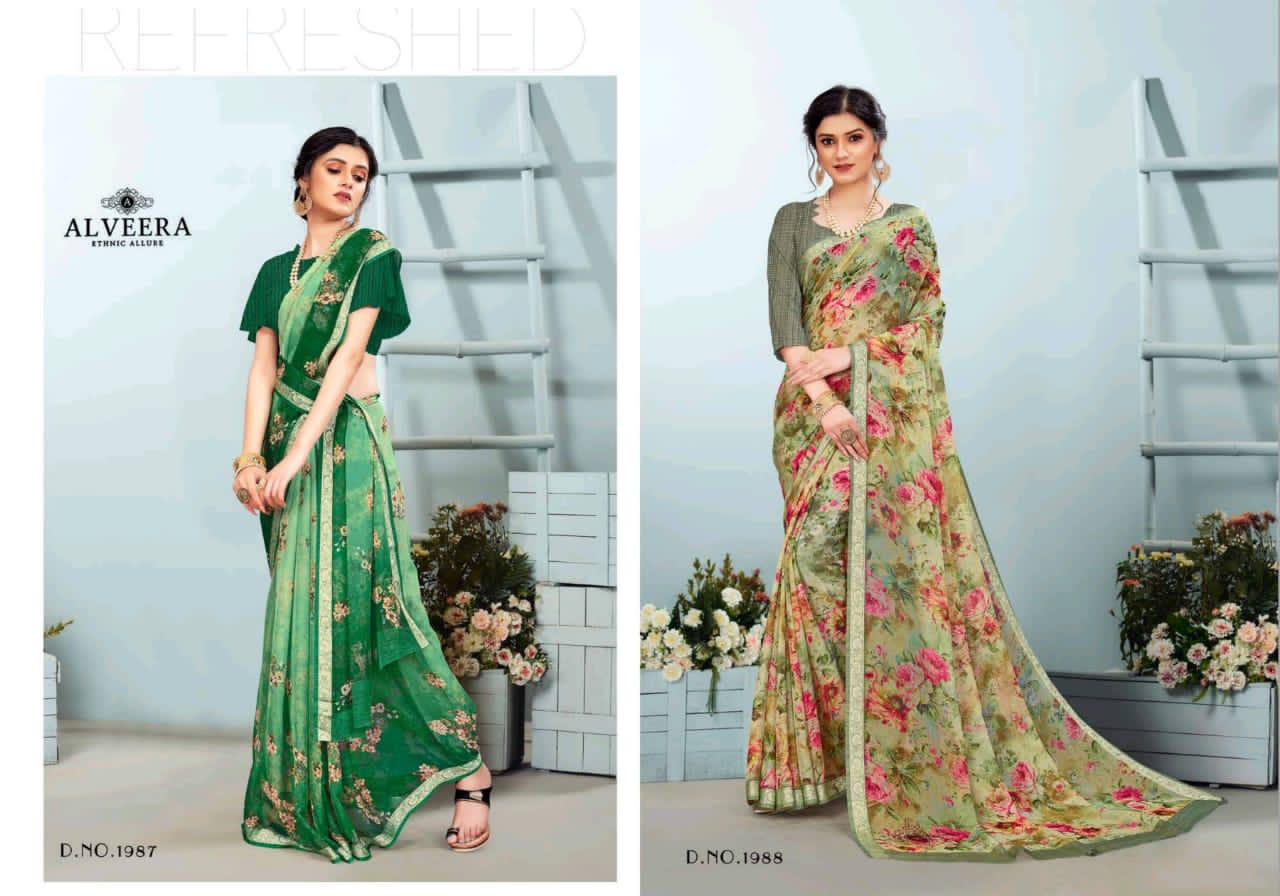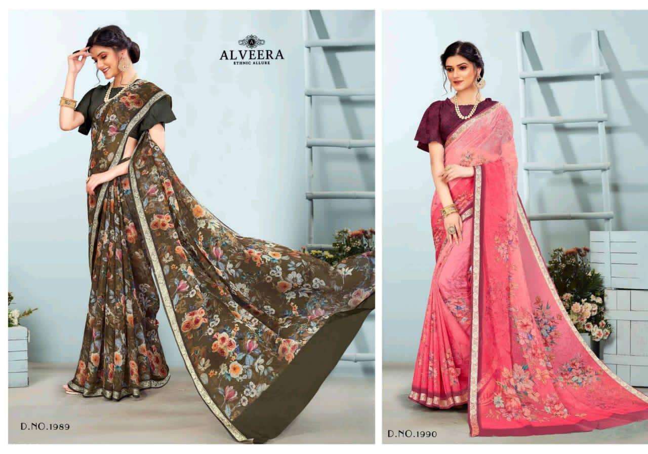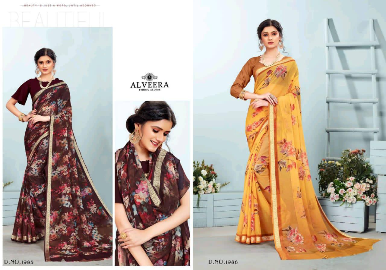 Alveera Presenting Nyra Digital Chiffon With Viscose Border Stylish Saree At Best Rate