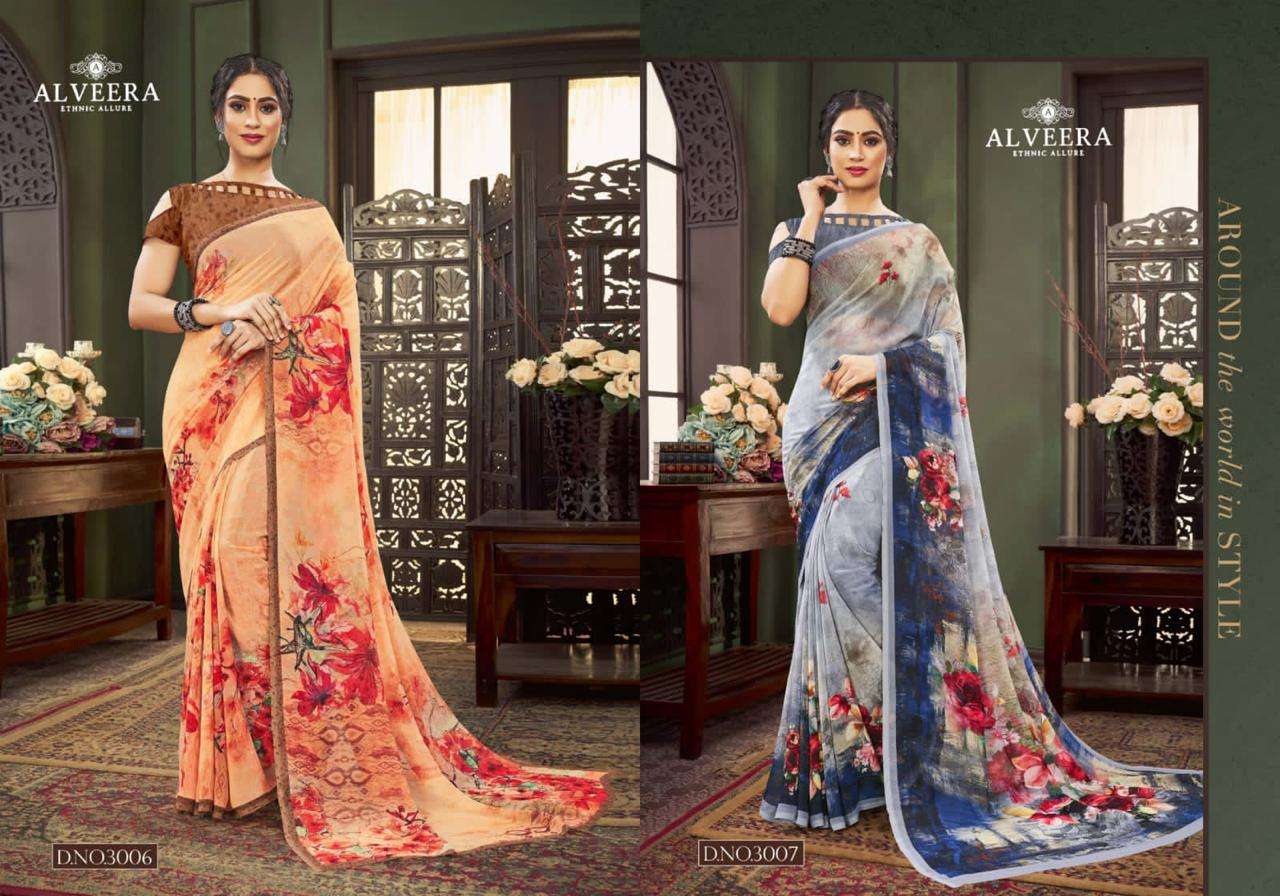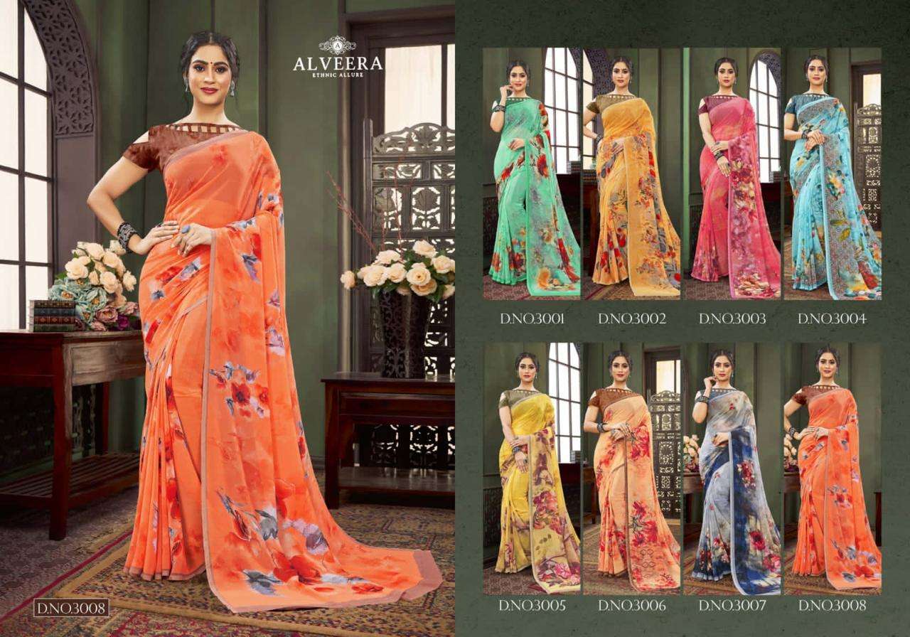 Brand - ALVEERA Catlog - PRIYA VOL 3 Fabrics-Direct Digital prints on georgette  Prise - 750 per pcs. Delivery from tomorrow. Series- 3001 to 3008 |