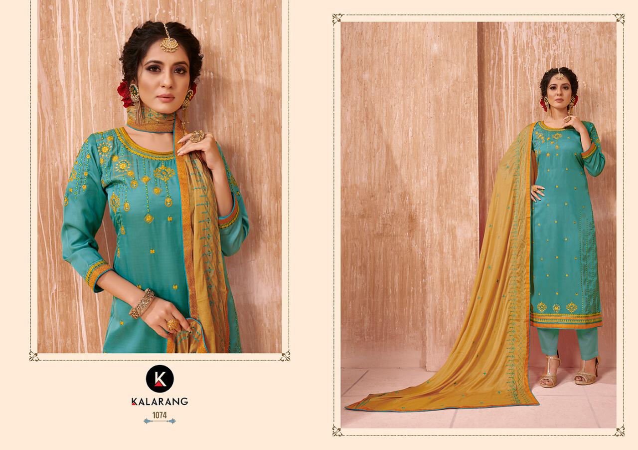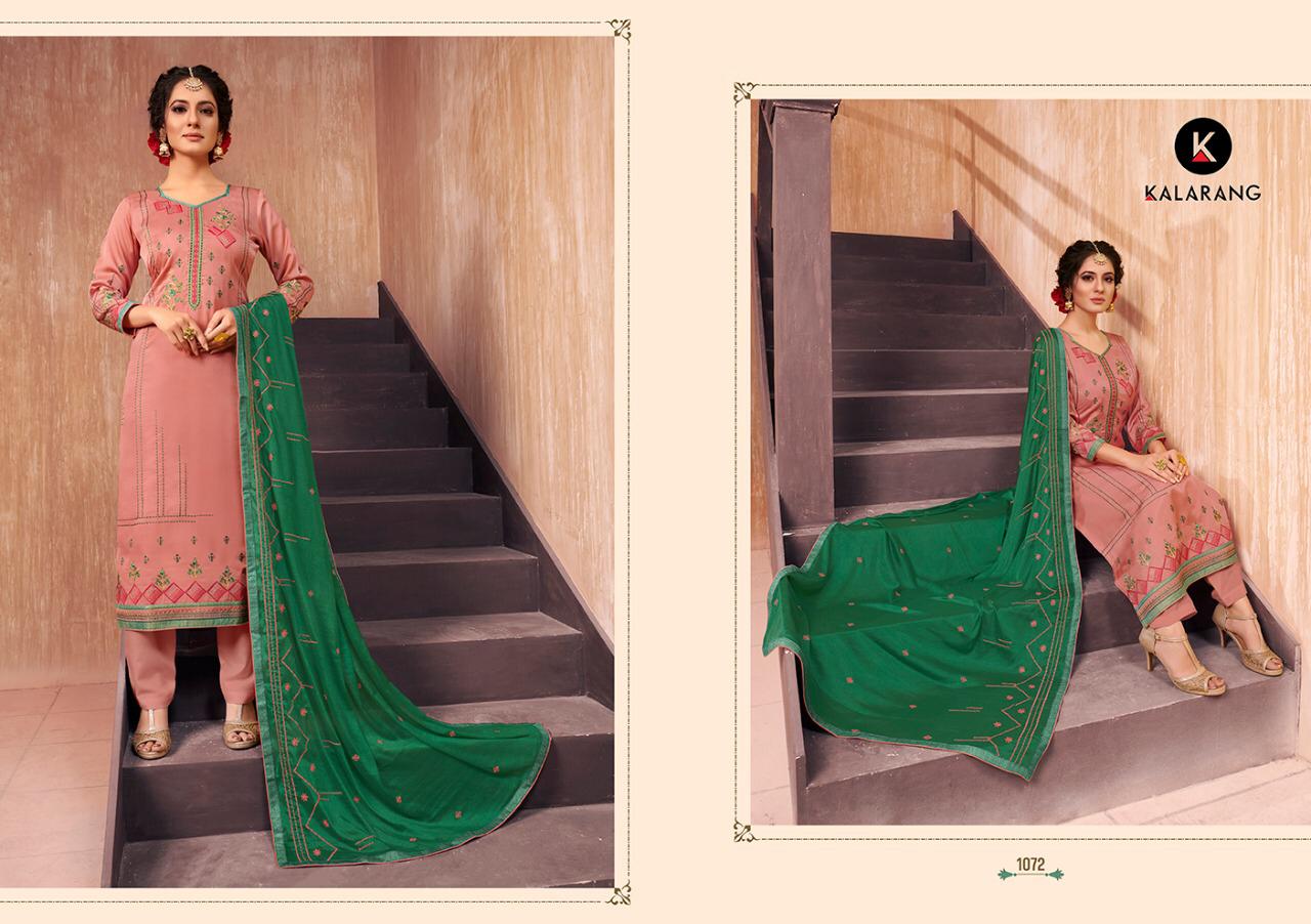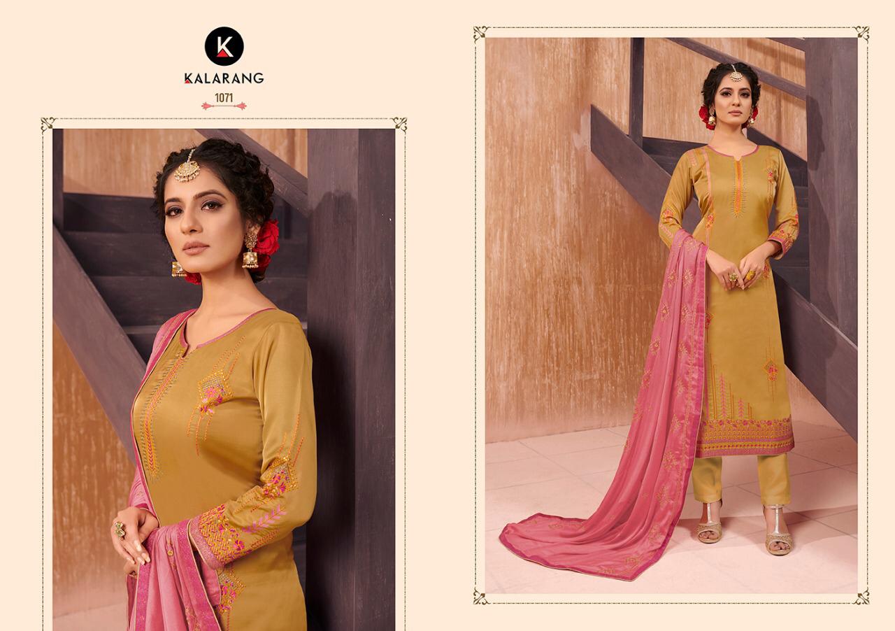 Alvira Vol 2 By Kalarang Satin Embroidery Designer Dress Materials