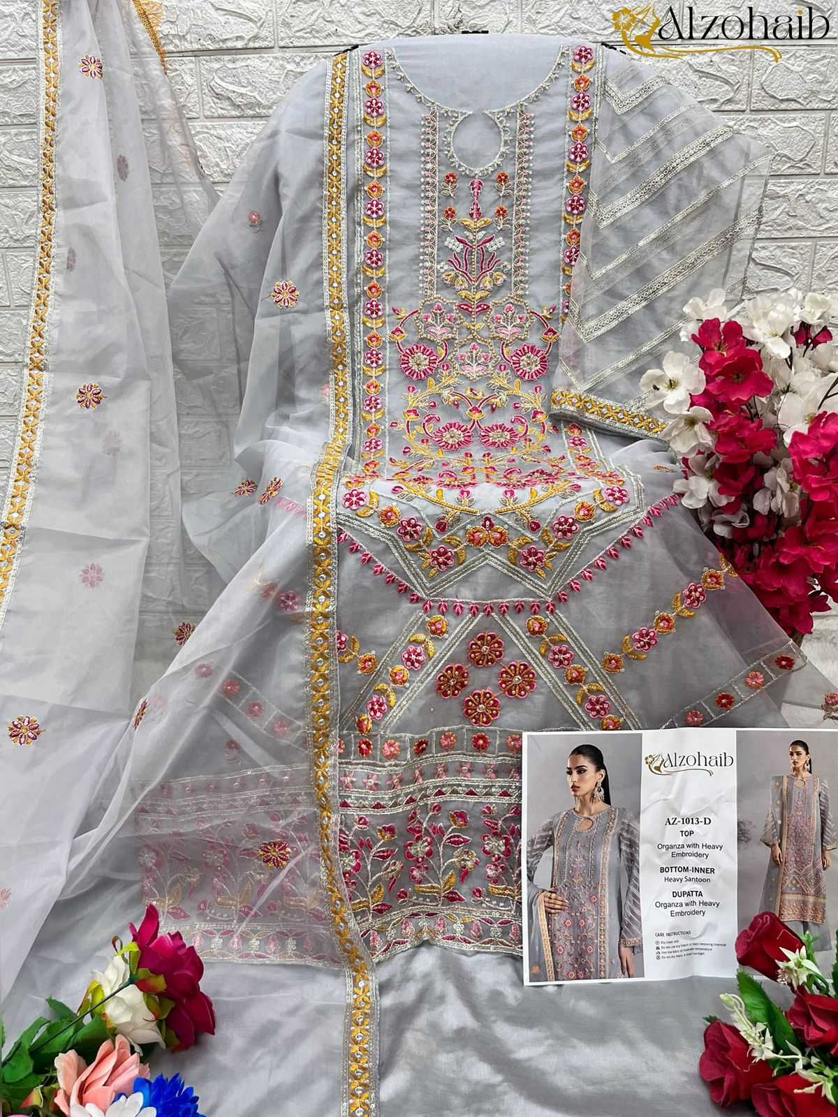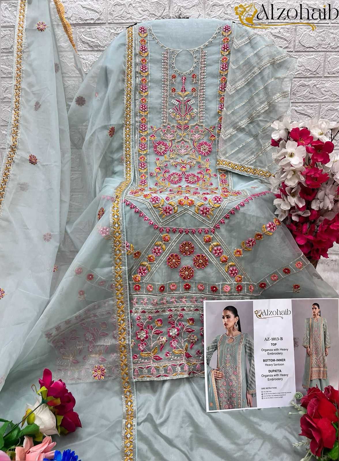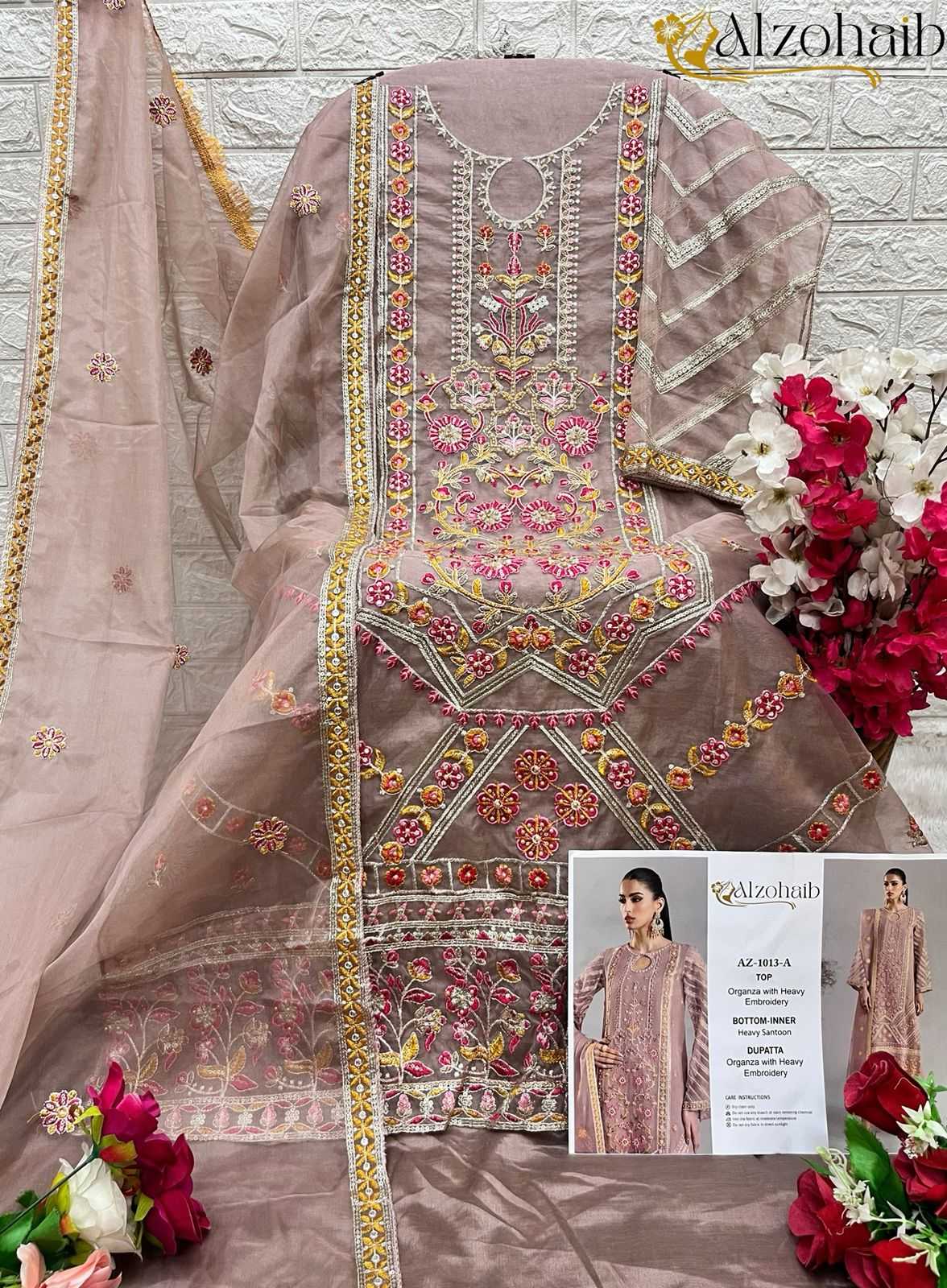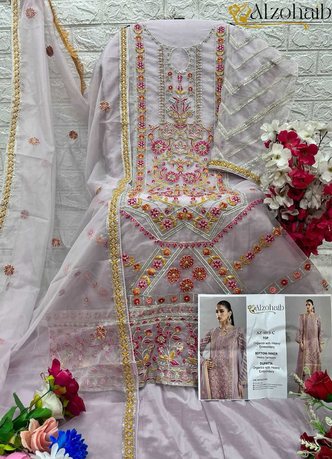 alzohaib 1013 organza bollywood style pakistani dress material