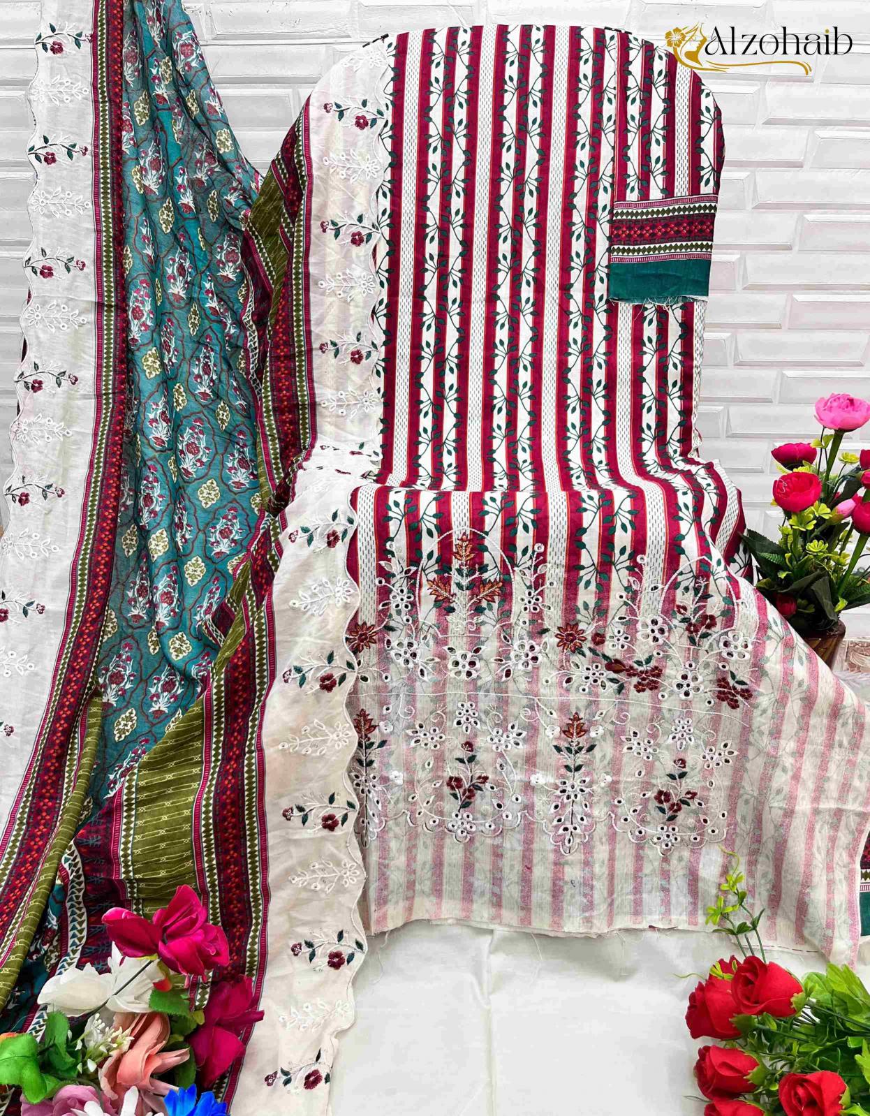 alzohaib 1086-1089 embroidery work cotton print pakistani suits