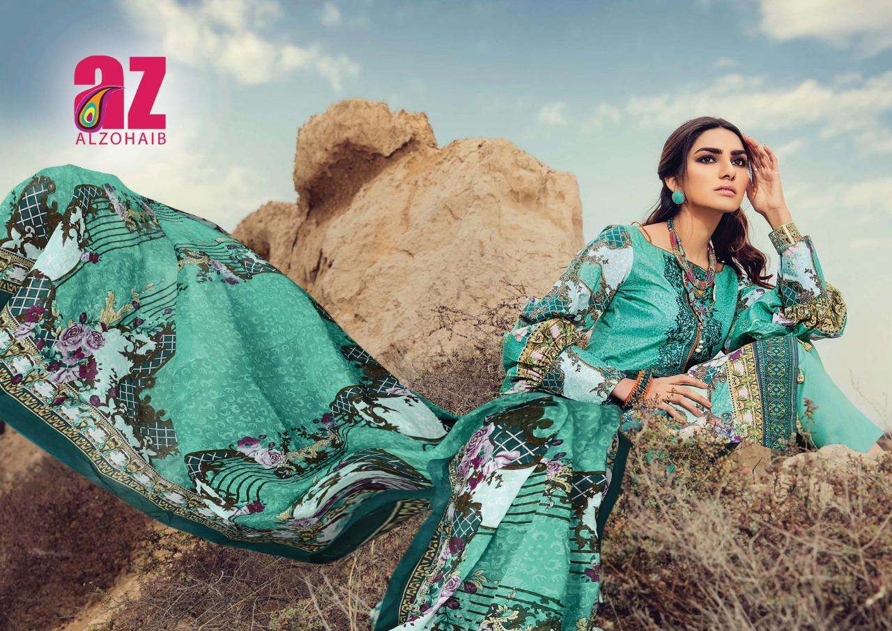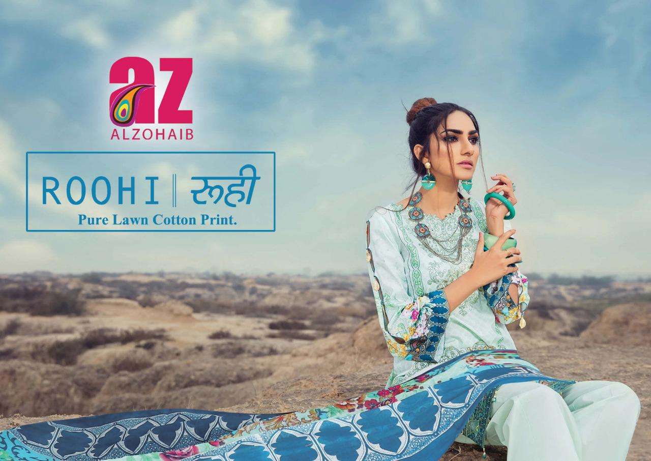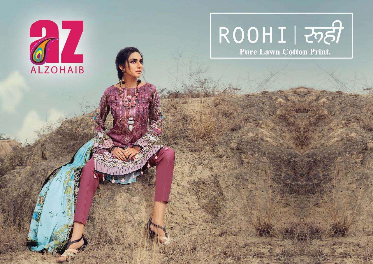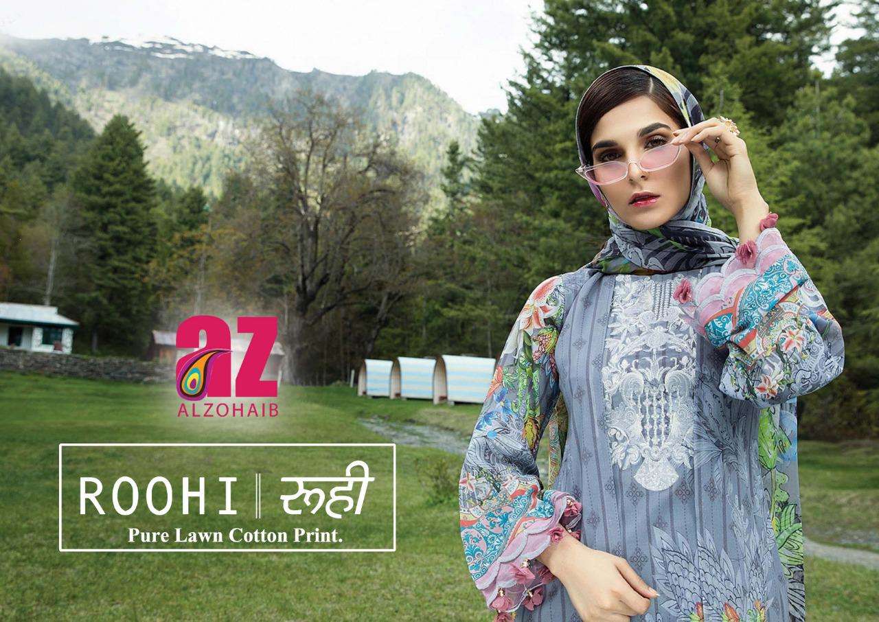 alzohaib roohi vol 2 lawn cotton printed suits wholesaler in surat
