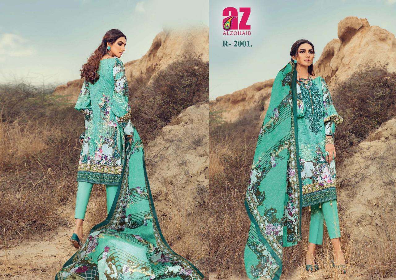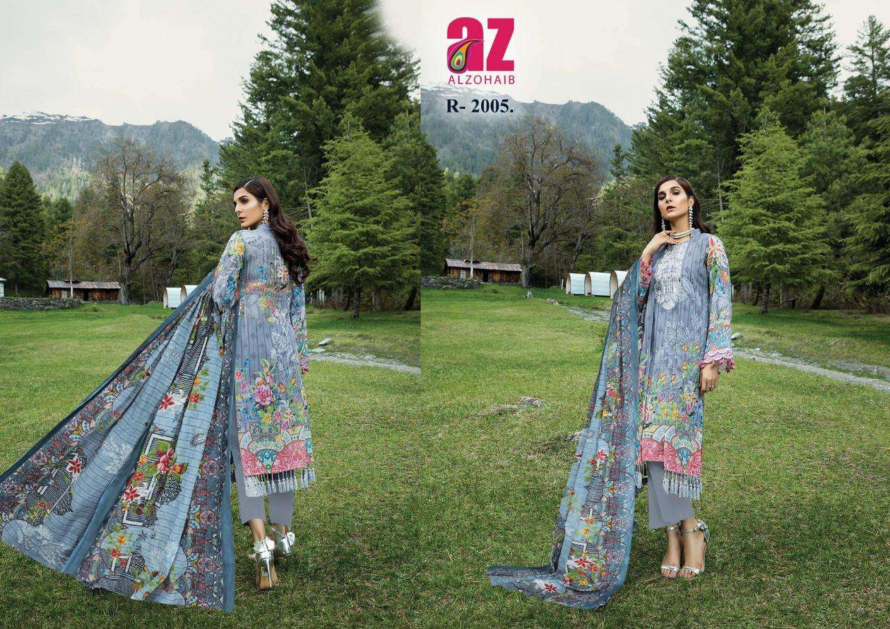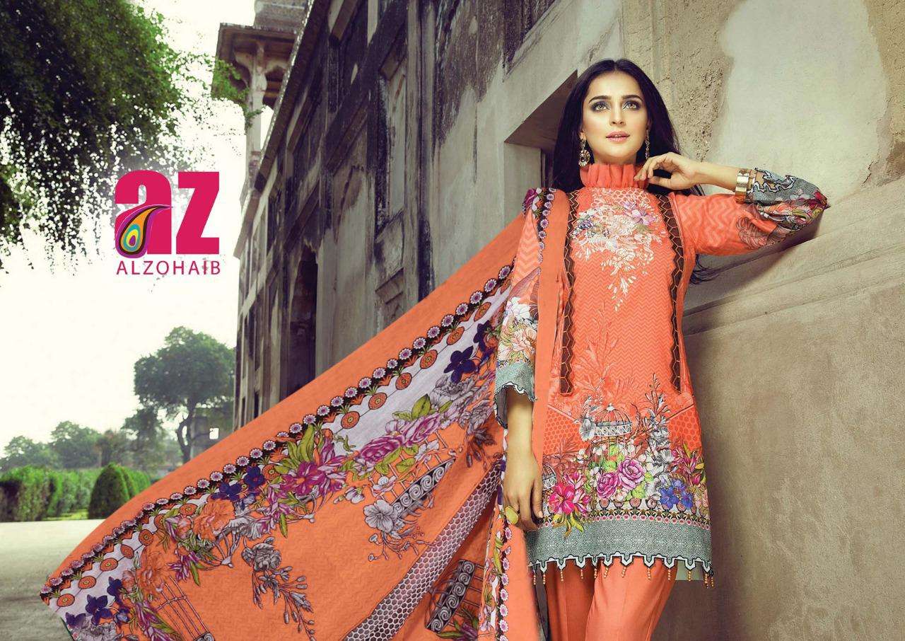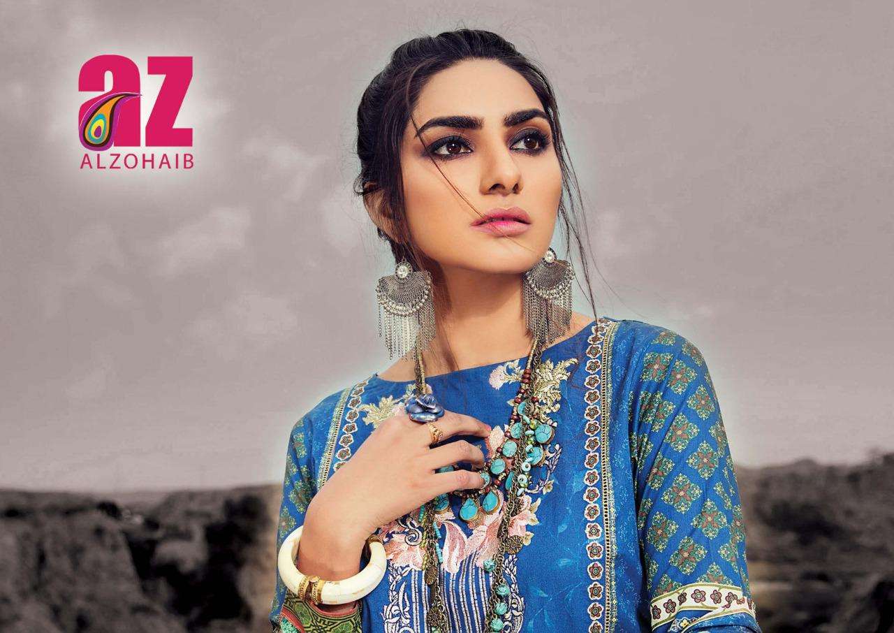 alzohaib roohi vol 2 lawn cotton printed suits wholesaler in surat