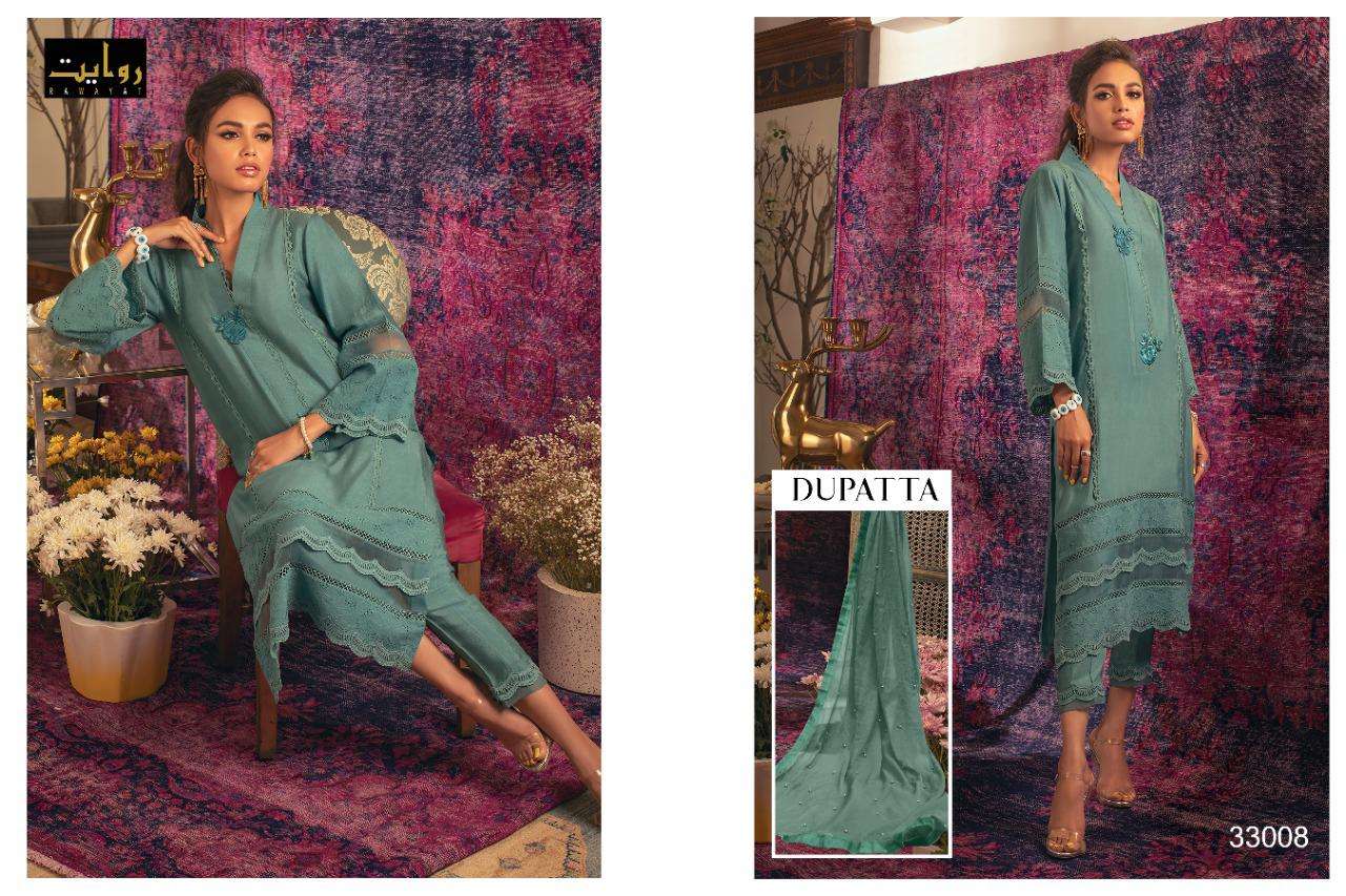 Rawayat Presents Latest Collection Launched on 13-07-2021. Presenting Beautiful collection of 7 PCS with Unstitched .