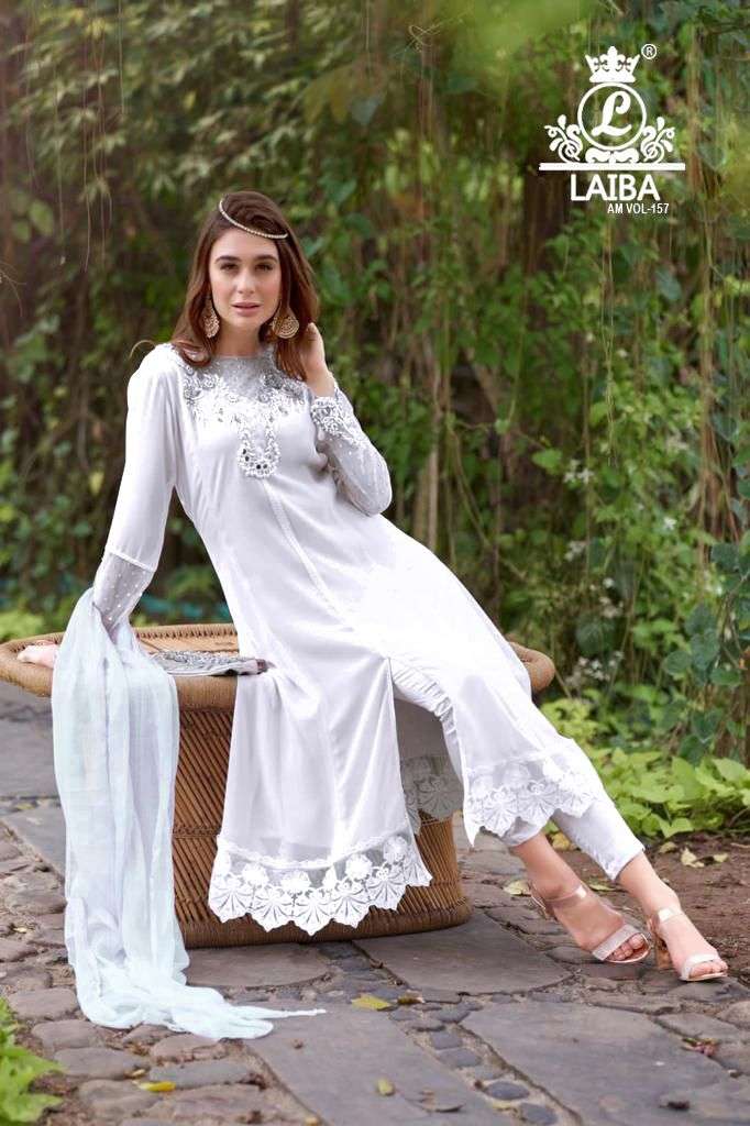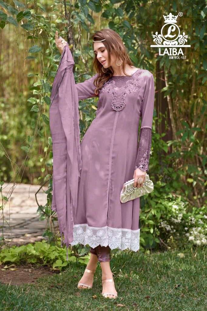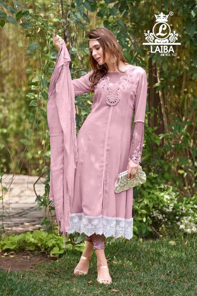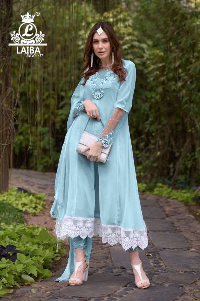 am vol 157 by laiba designer georgette pakistani 3 piece readymade suits