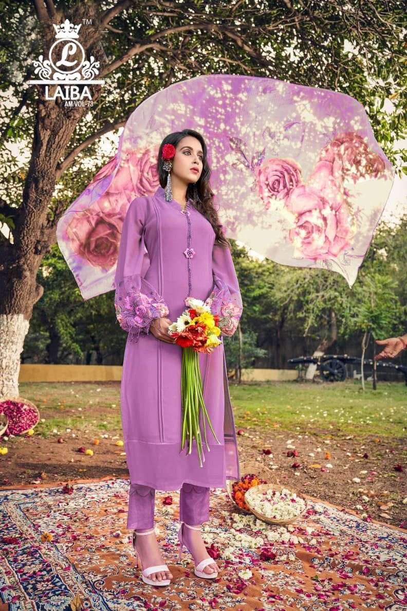 am vol 73 by laiba designer georgette pakistani readymade suits