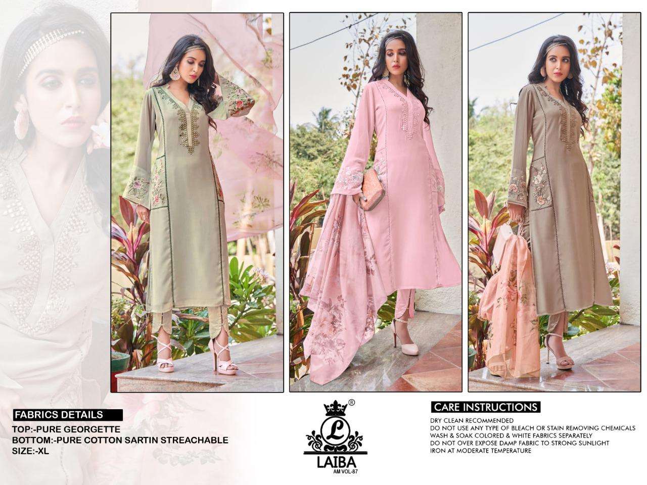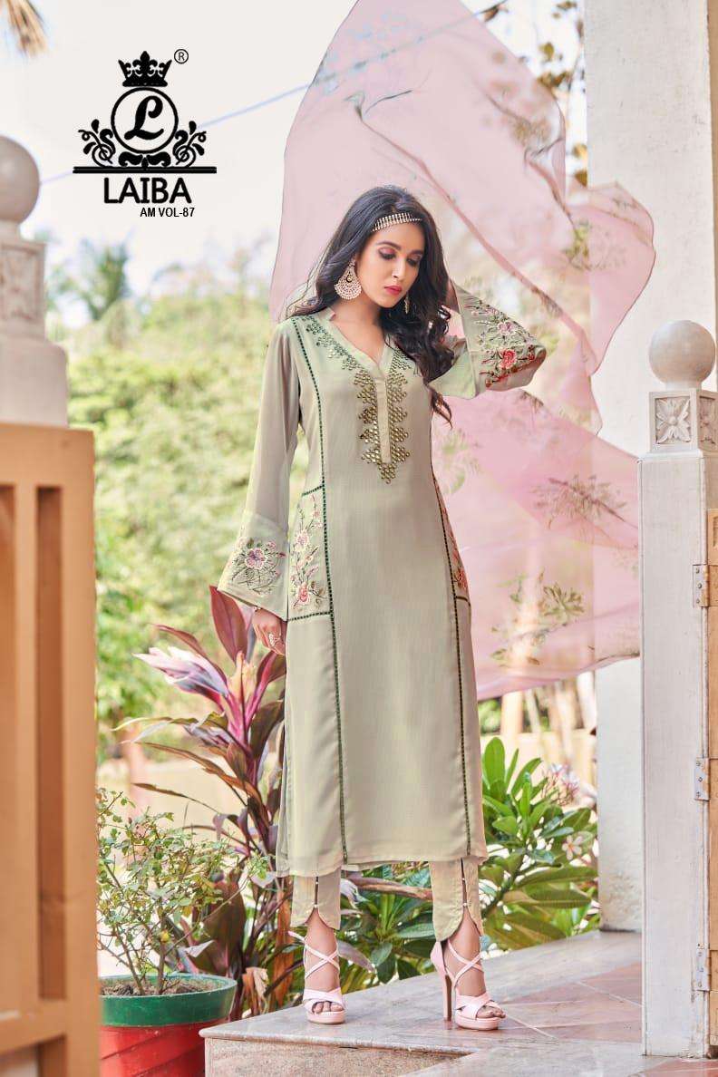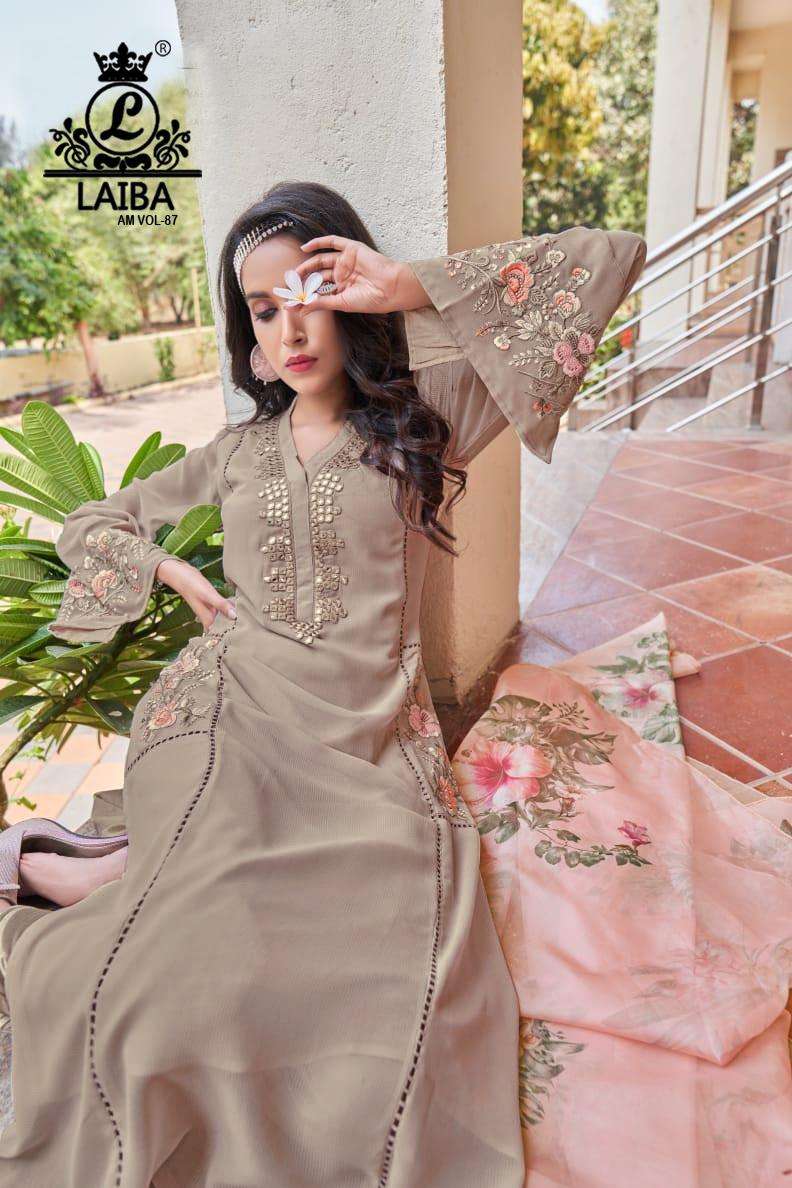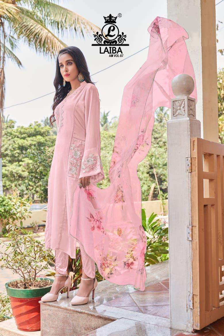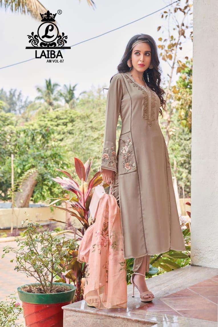 Am Vol 87 Designer Kurti Pant With Dupatta By Laiba