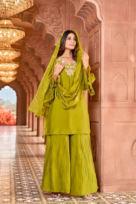 Amara Fashion PURE MUSLIN CRUSH SHORT KURTI WITH DIVIDER PLAZO