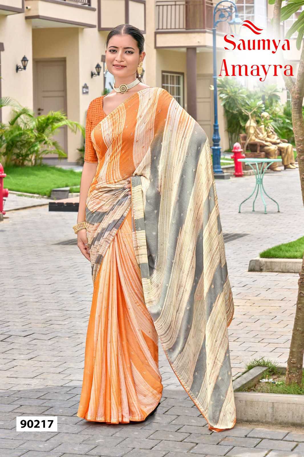 amayra by saumya comfy wear brasso & chiffon saree wholesaler