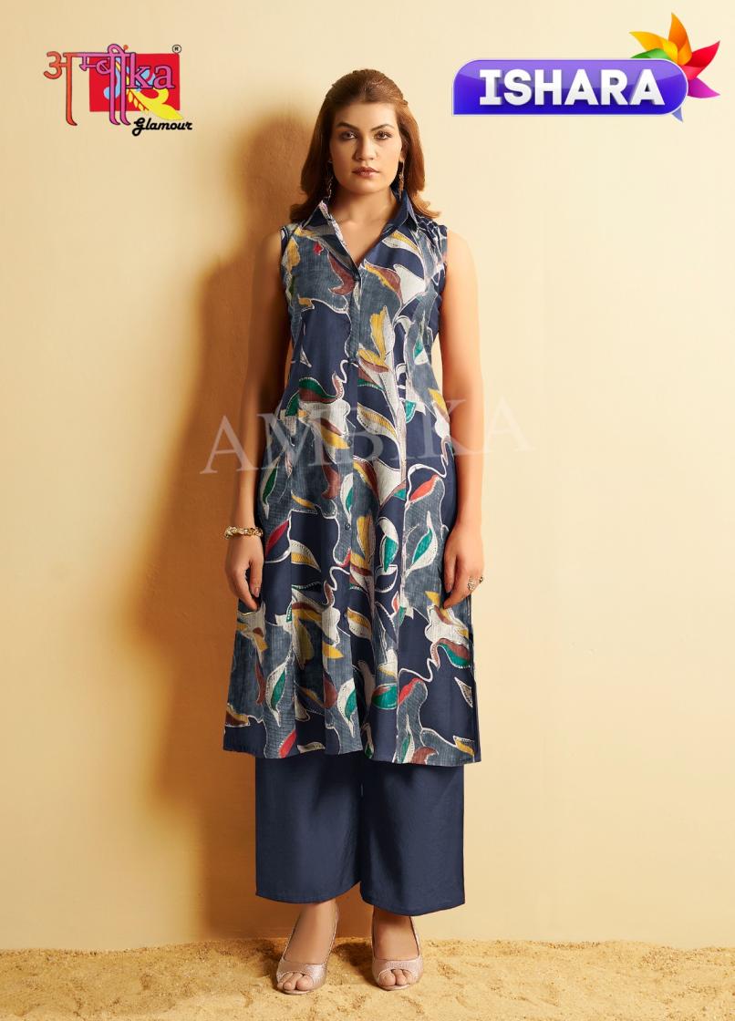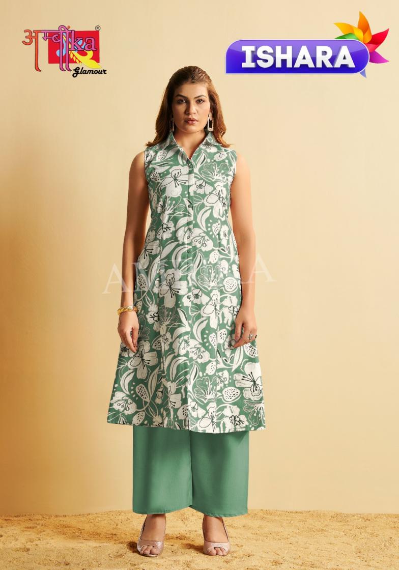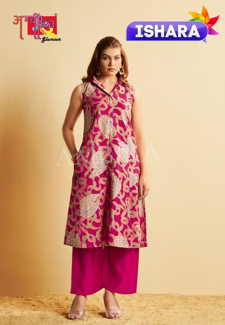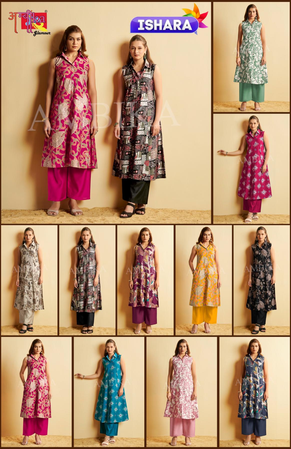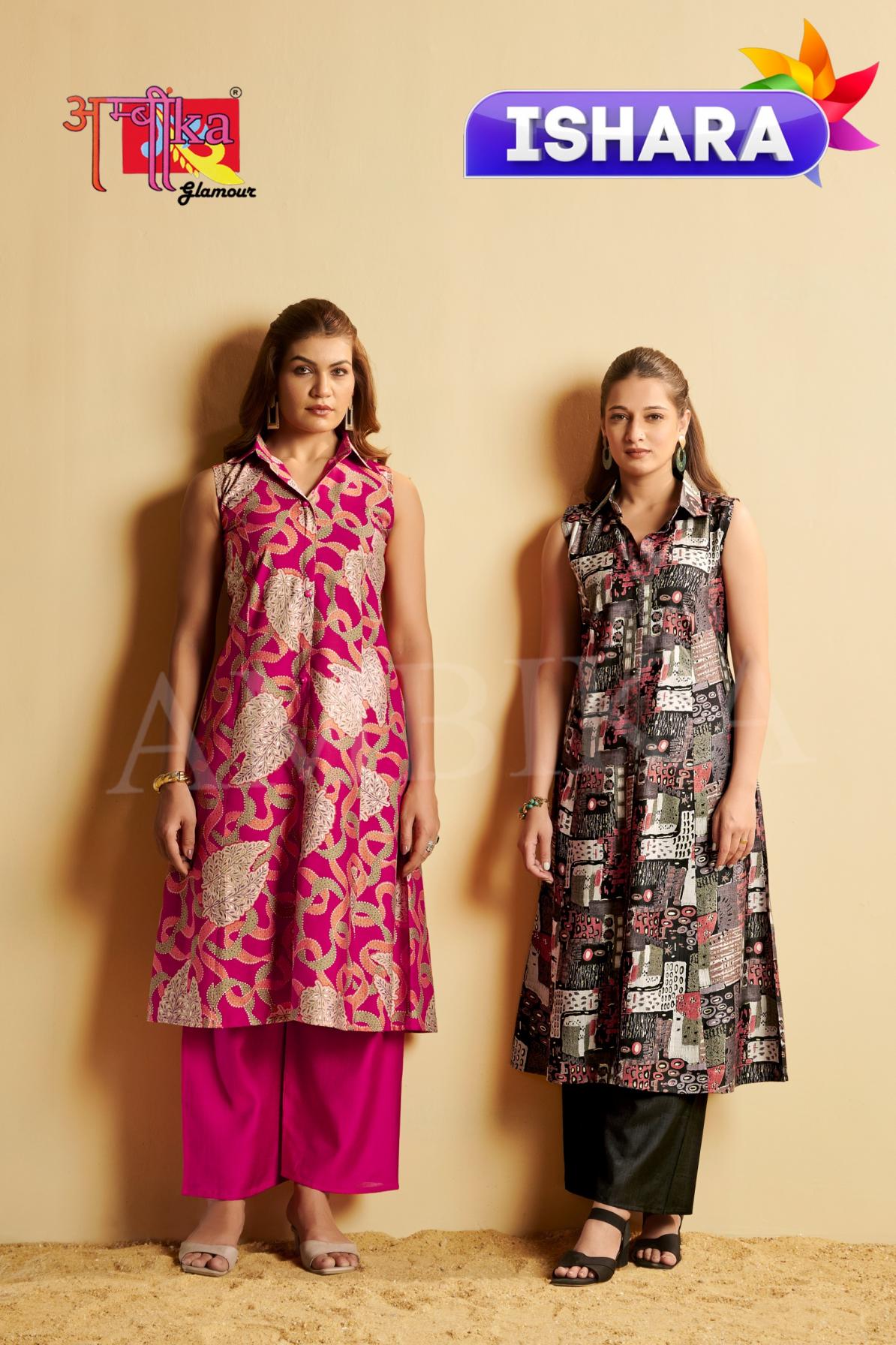 ambika ishara fully stitch verican a line cut combo kurti with plazzo
