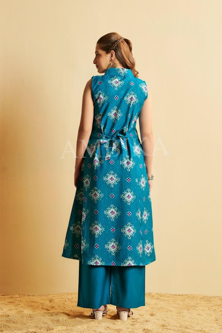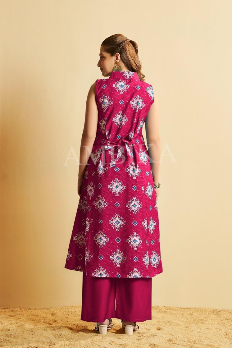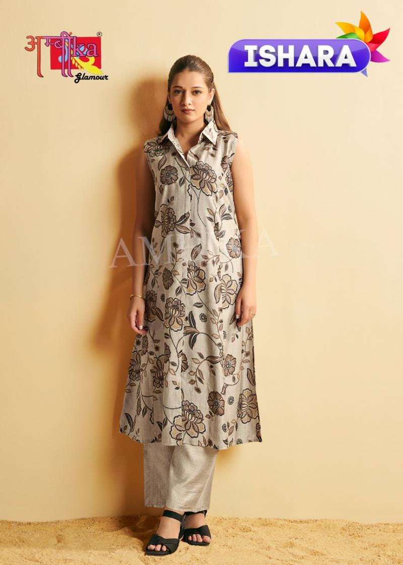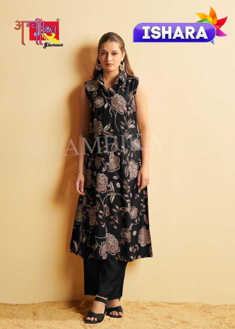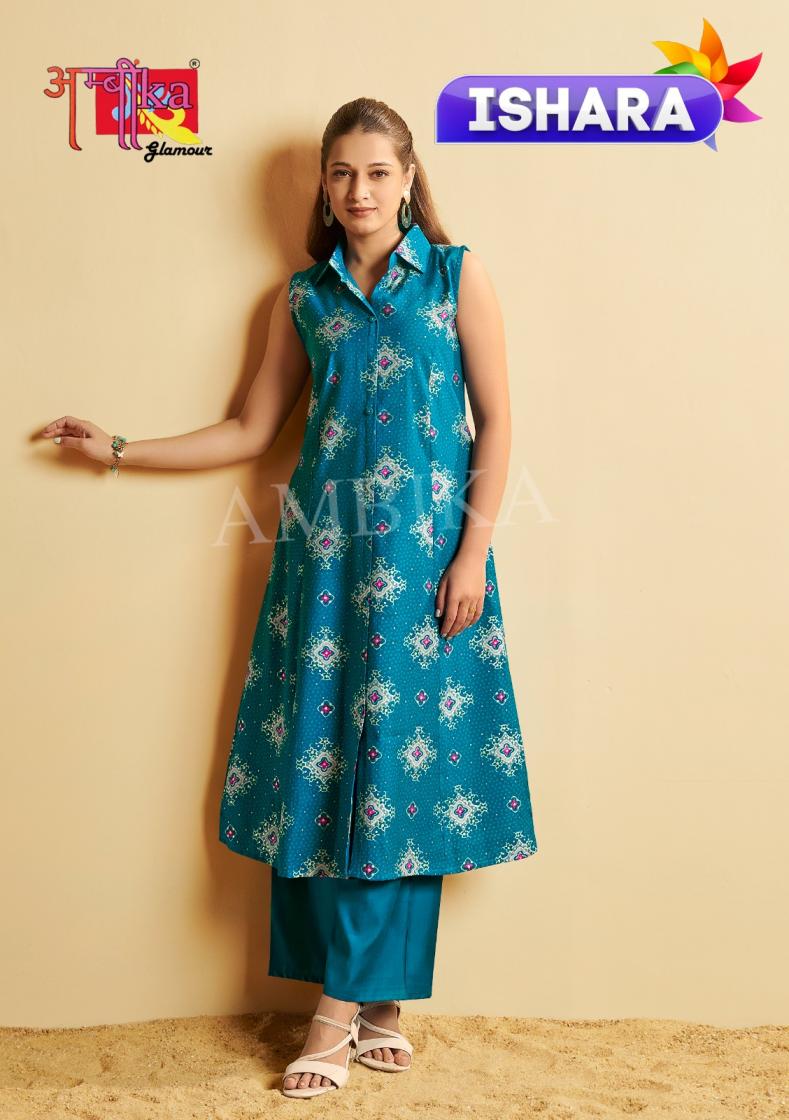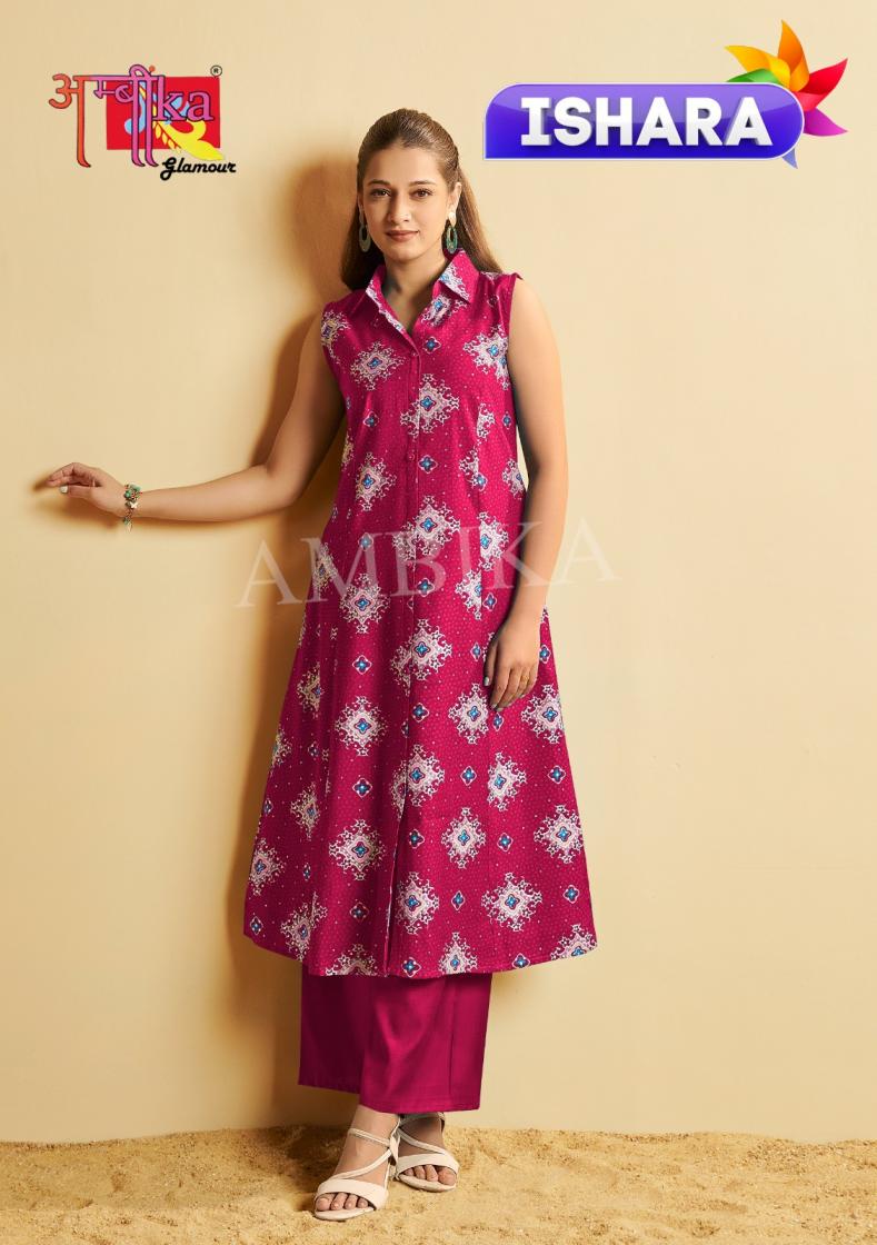 ambika ishara fully stitch verican a line cut combo kurti with plazzo