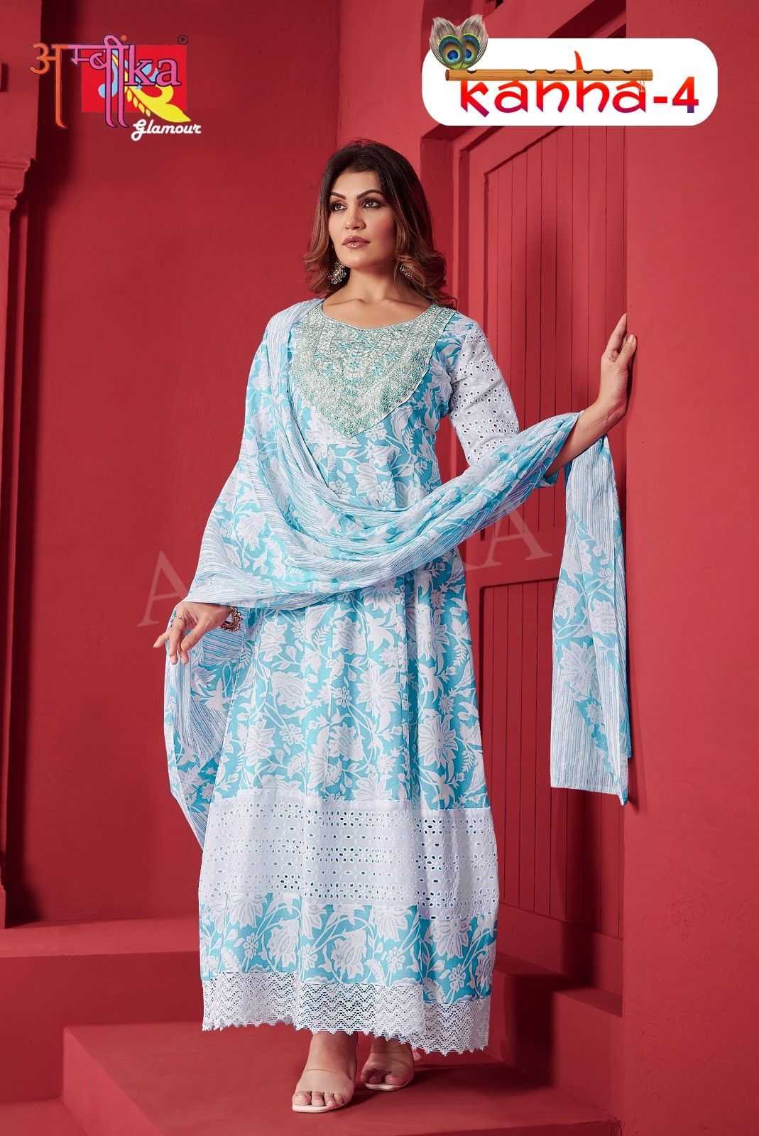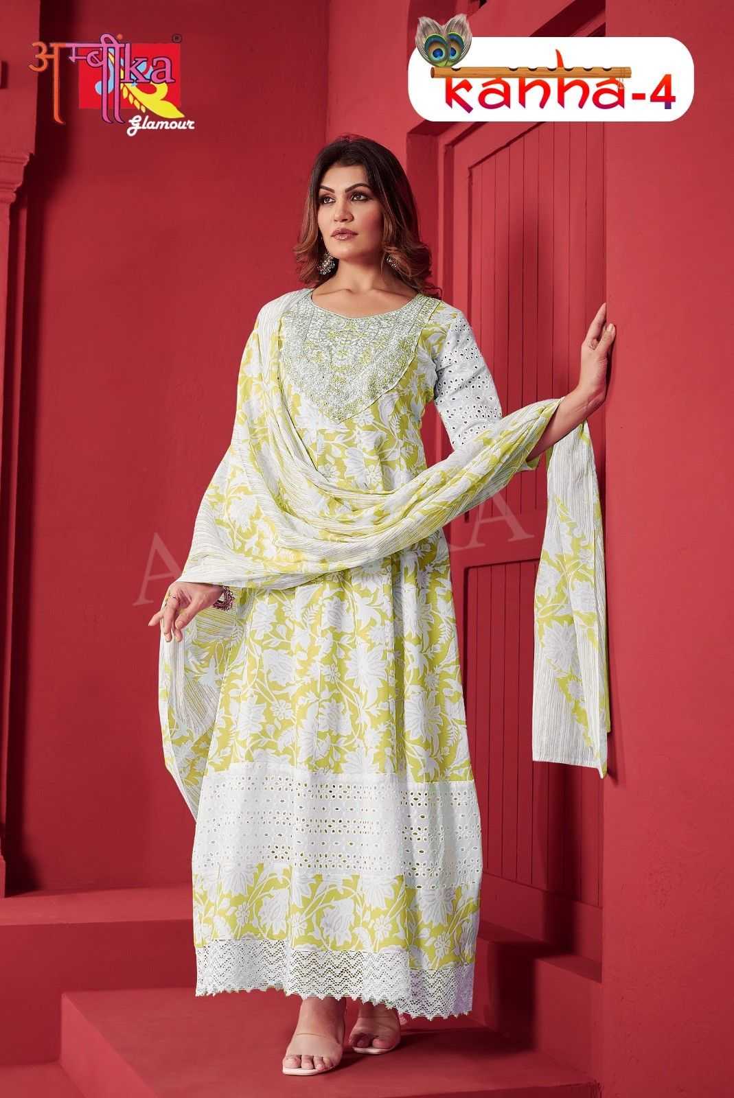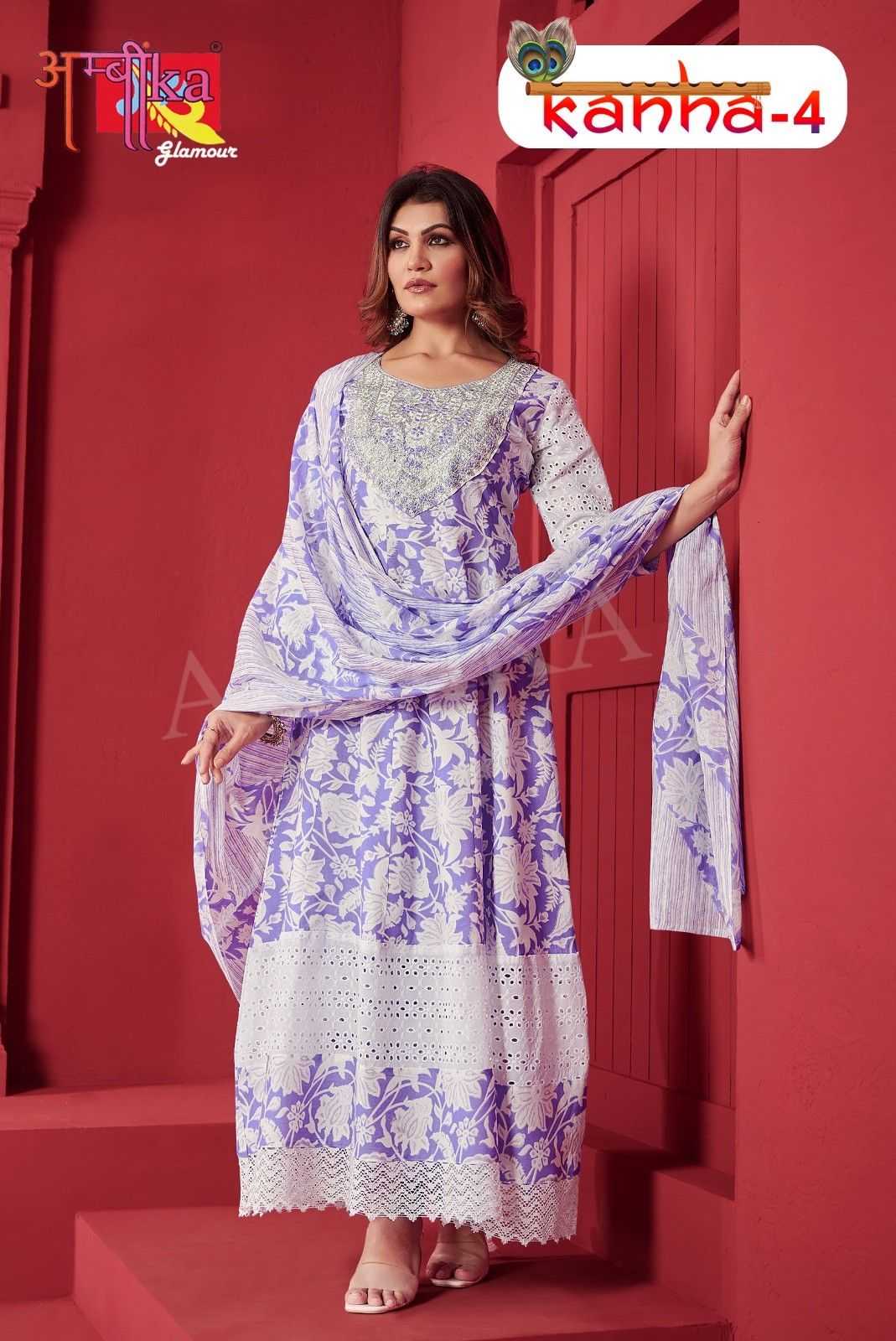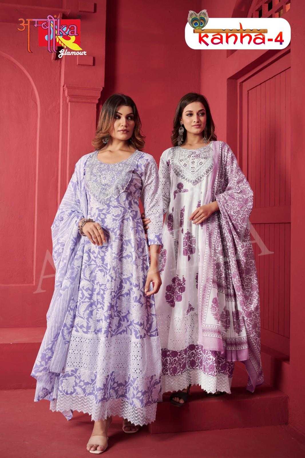 ambika kanha vol 4 cotton print comfortable readymade combo set 3pcs dress