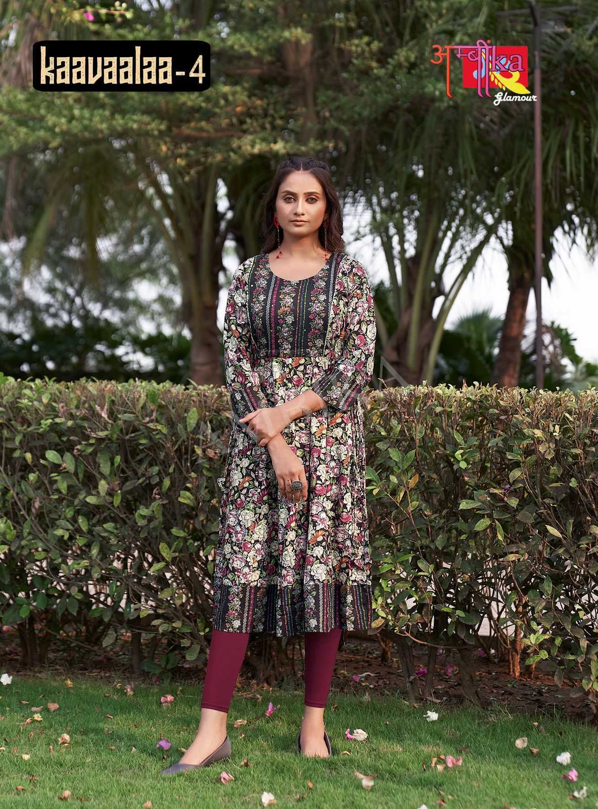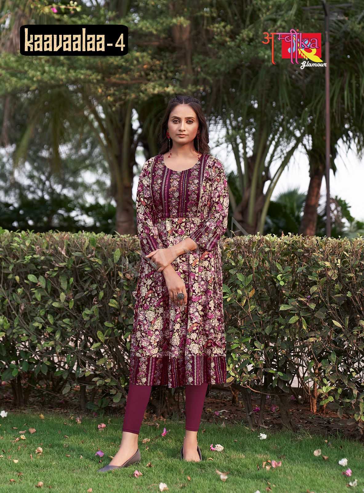 ambika kurti kaavaalaa vol 4 fancy fullstitch ghera kurti with adjustable dori combo set