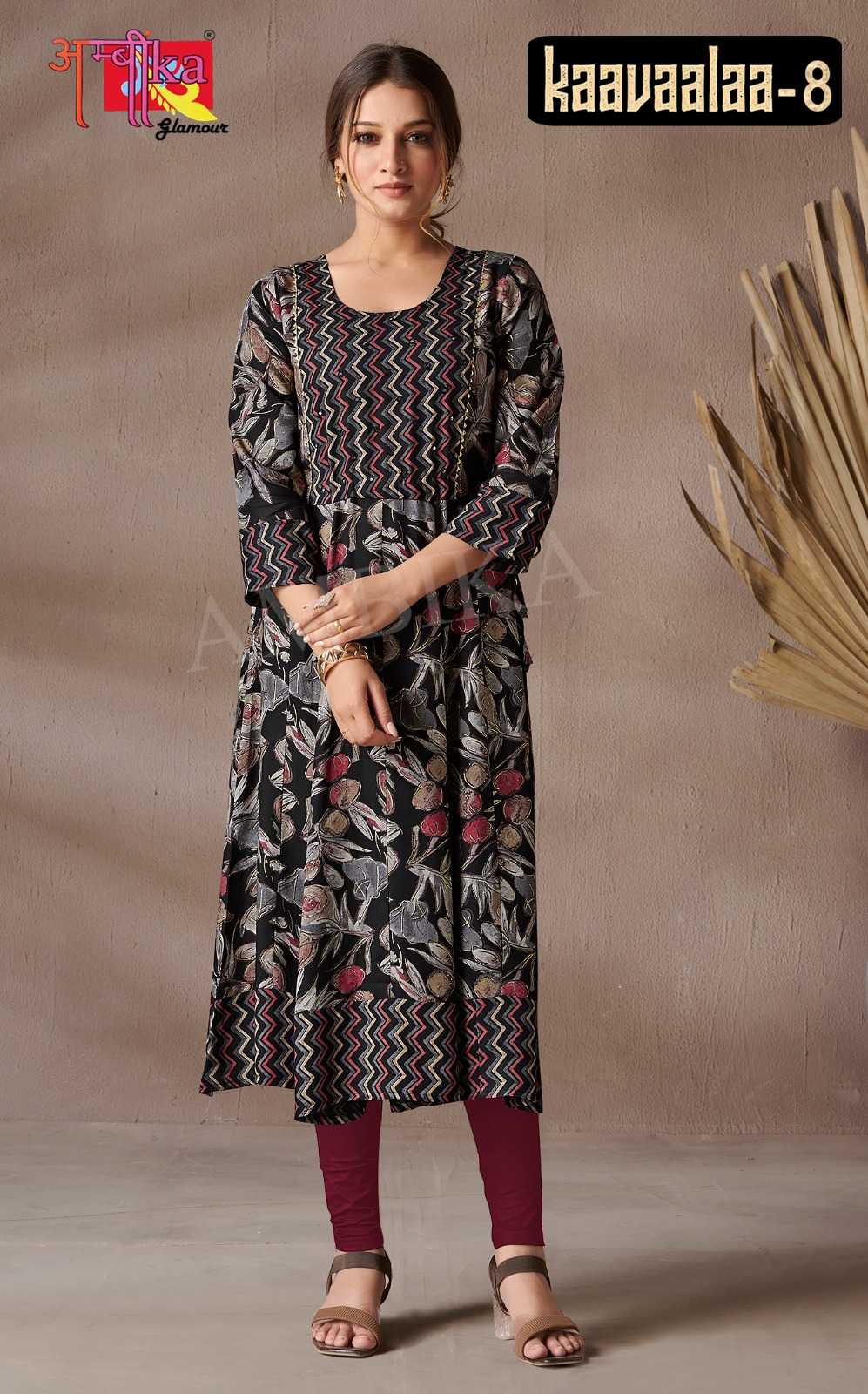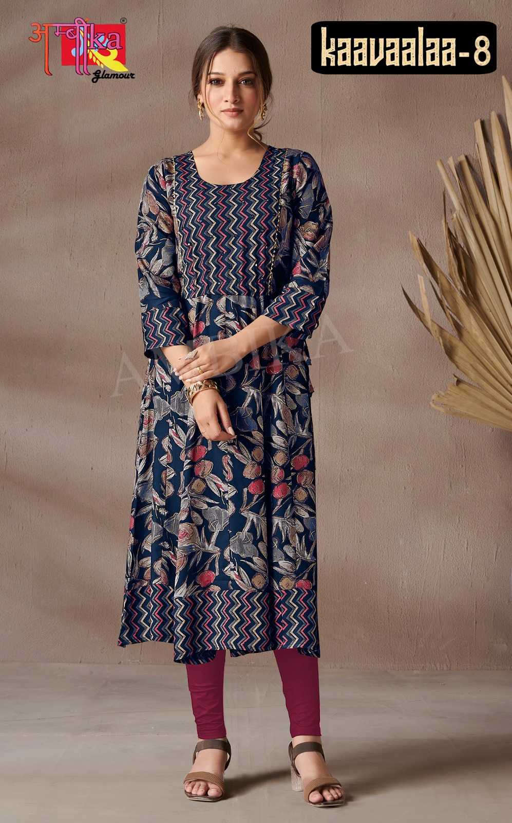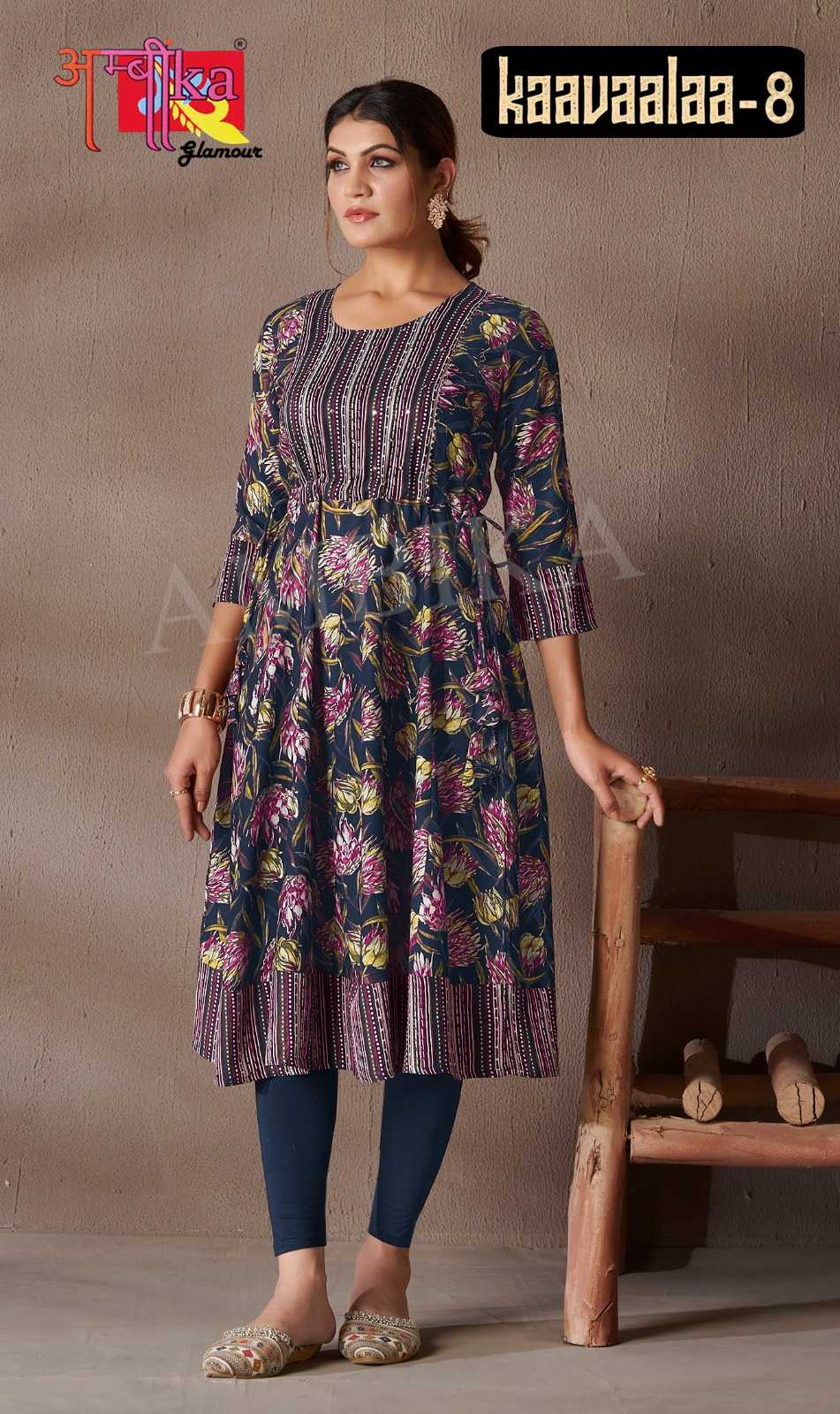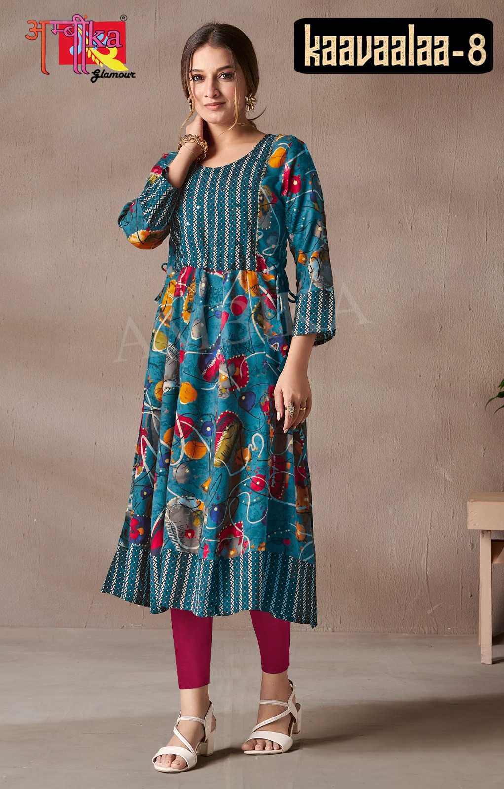 ambika kurtis kavalaa vol 8 readymade fancy rayon mirror work long kurti
