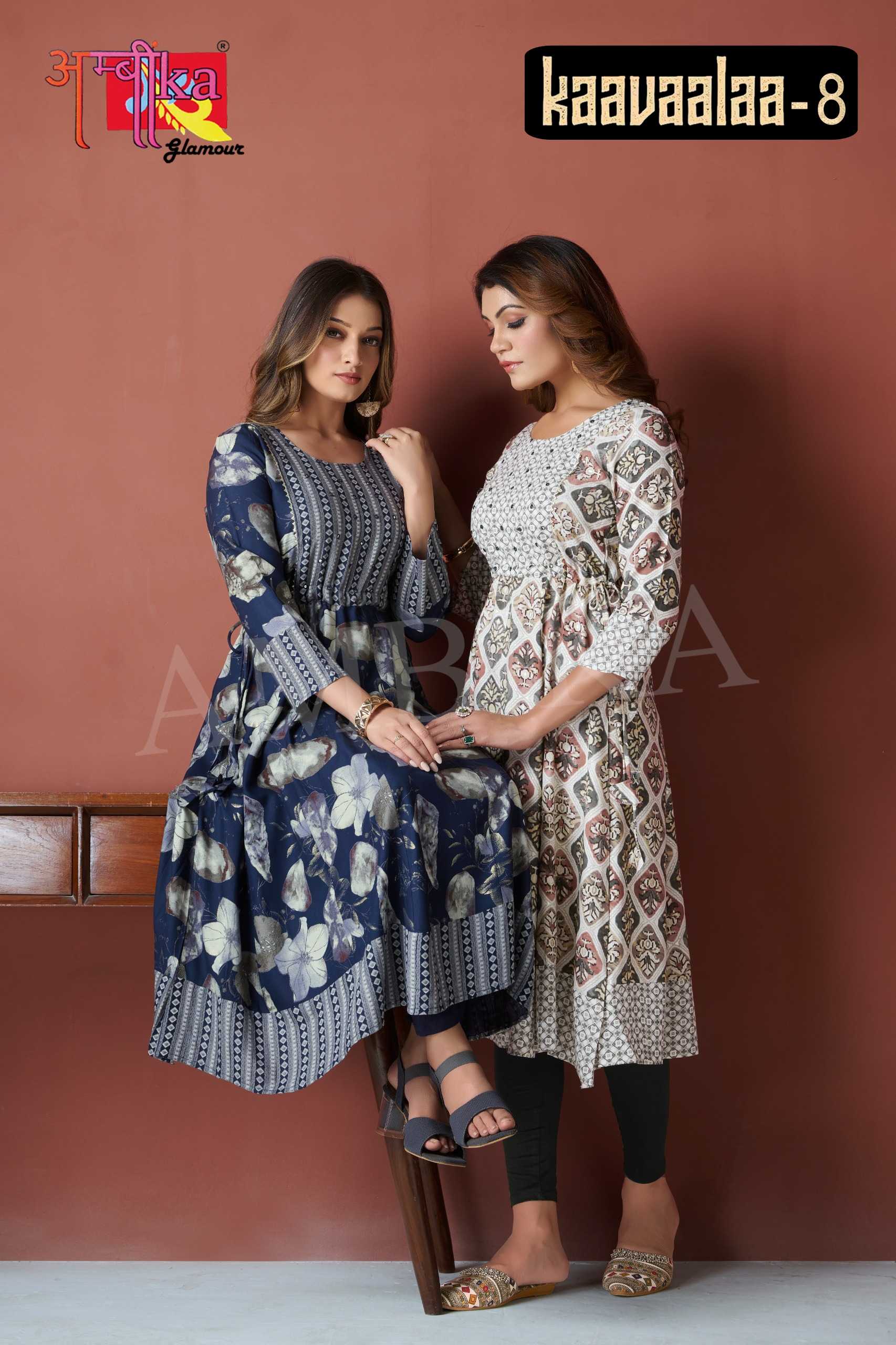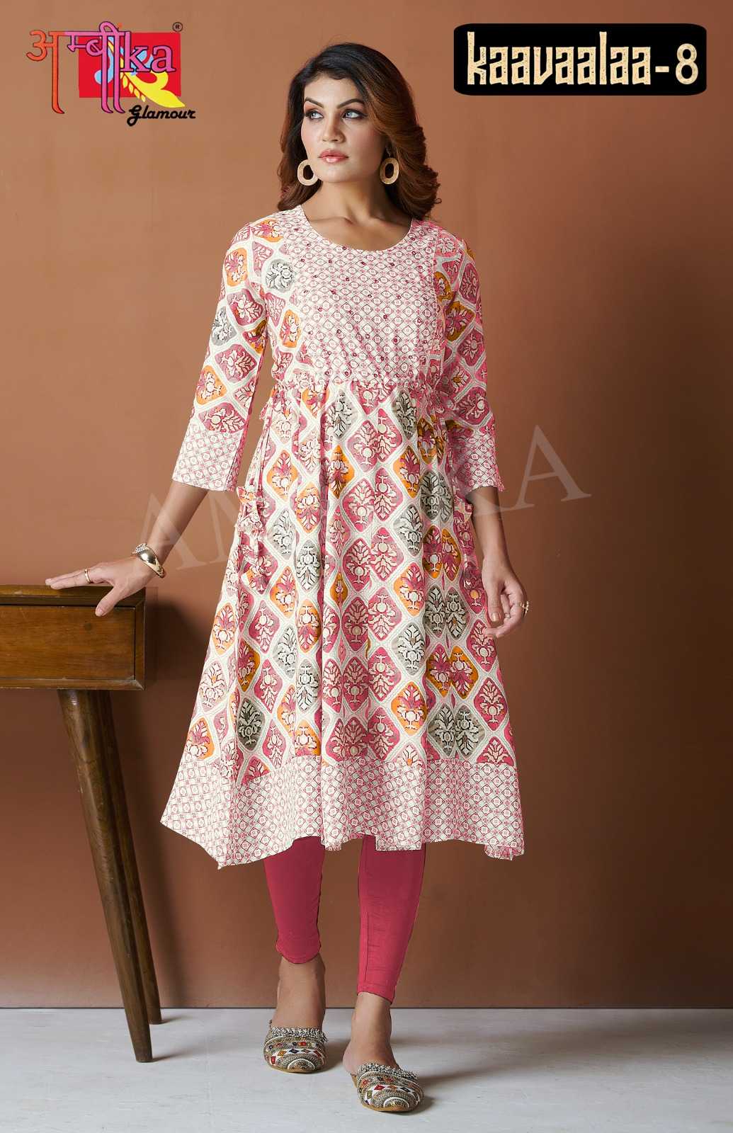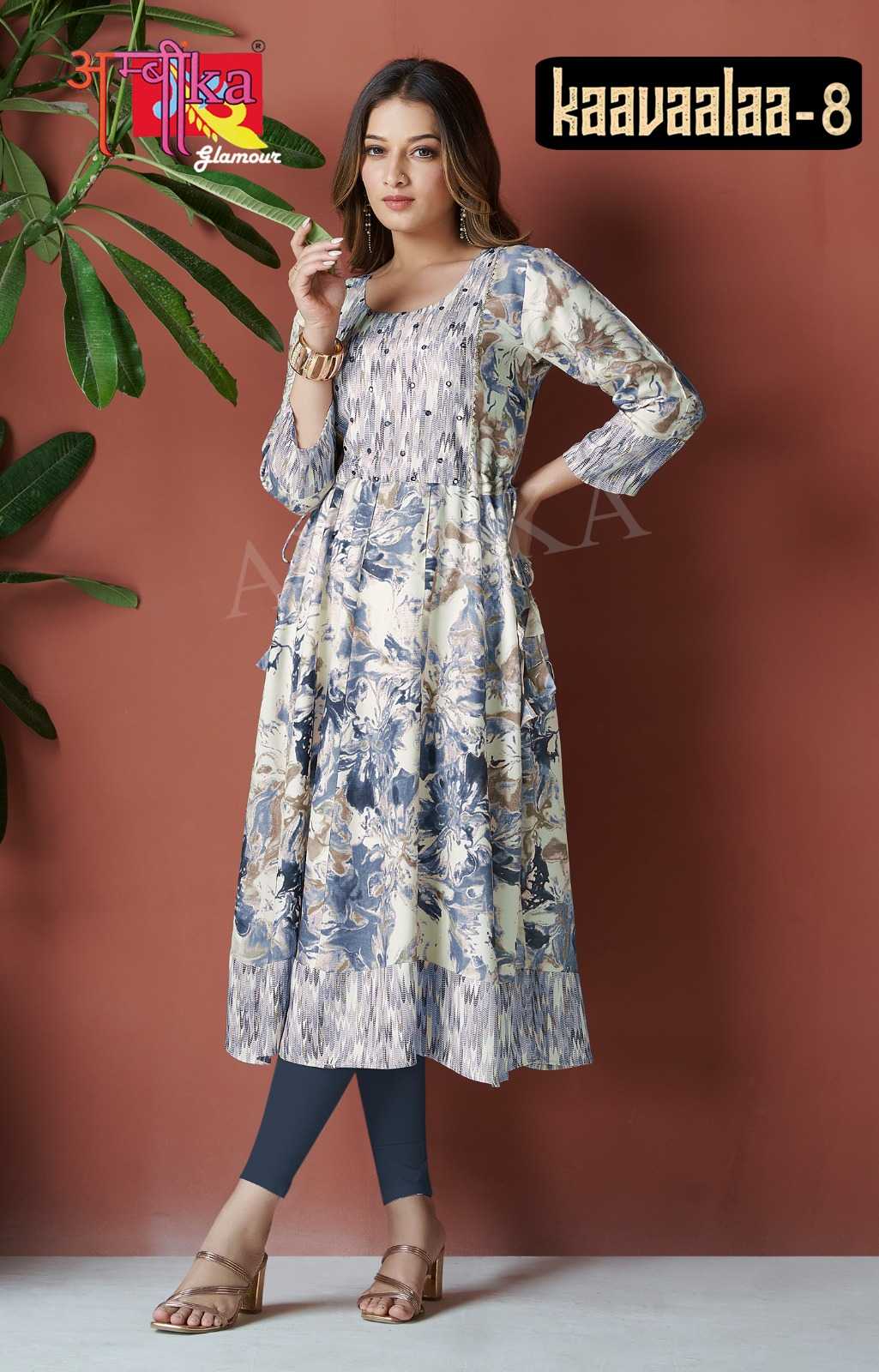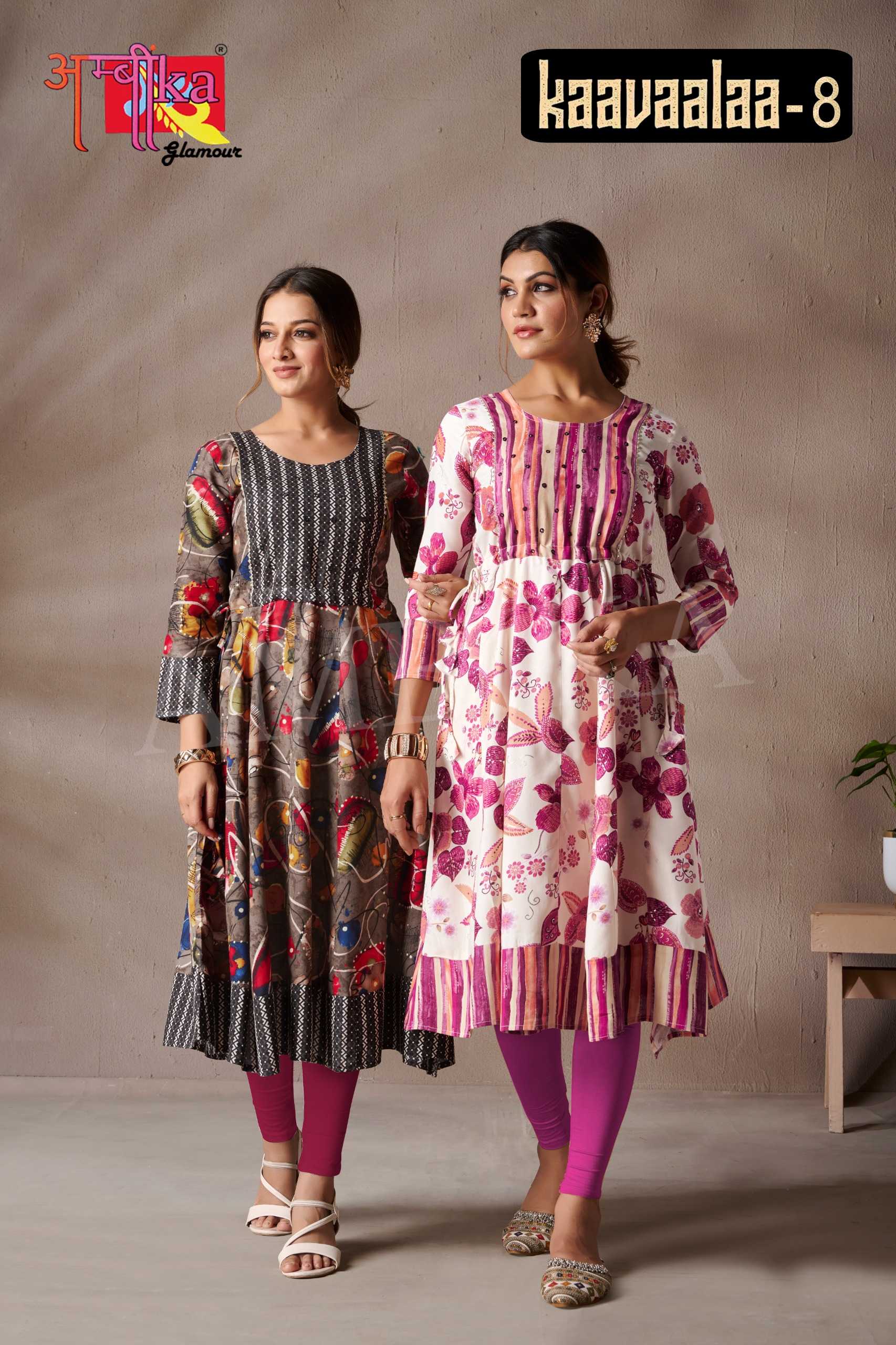 ambika kurtis kavalaa vol 8 readymade fancy rayon mirror work long kurti