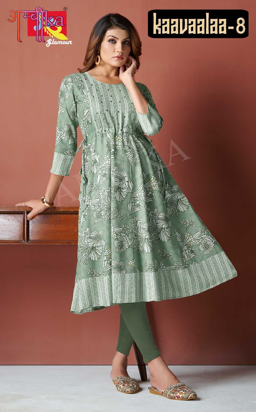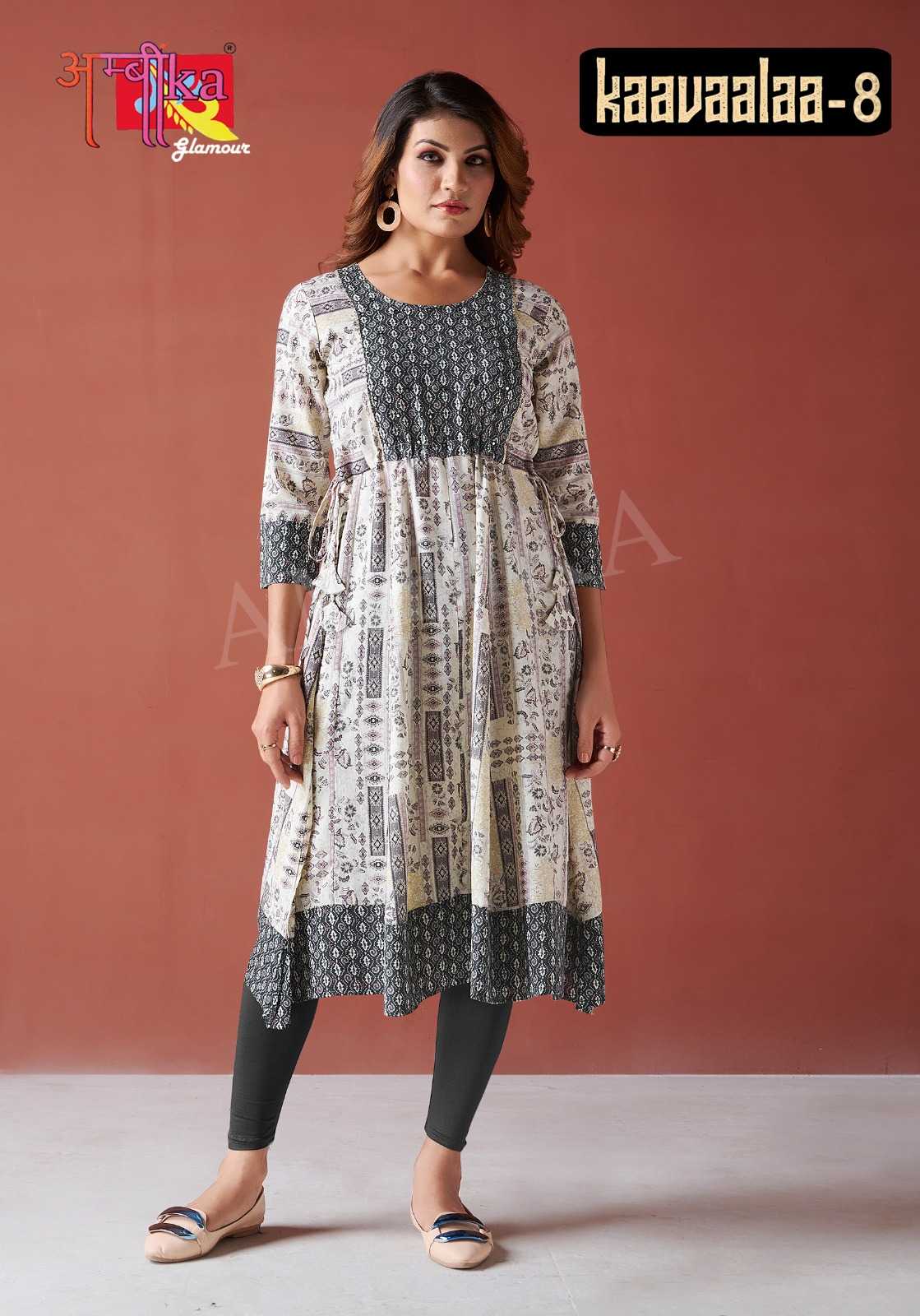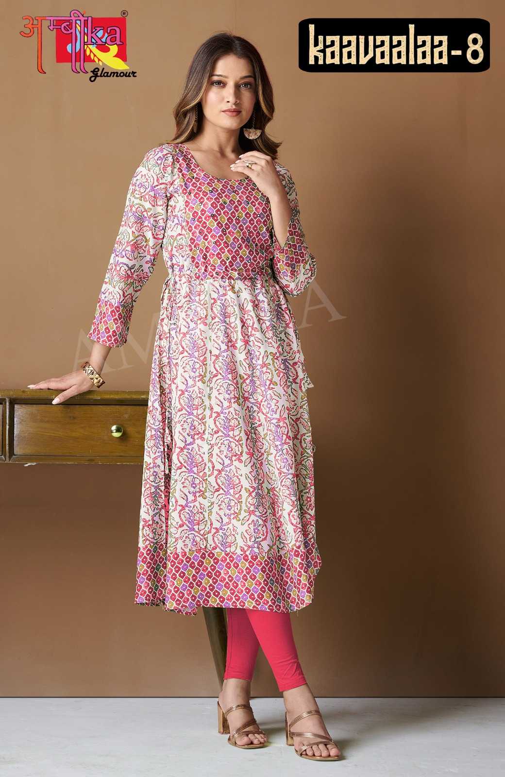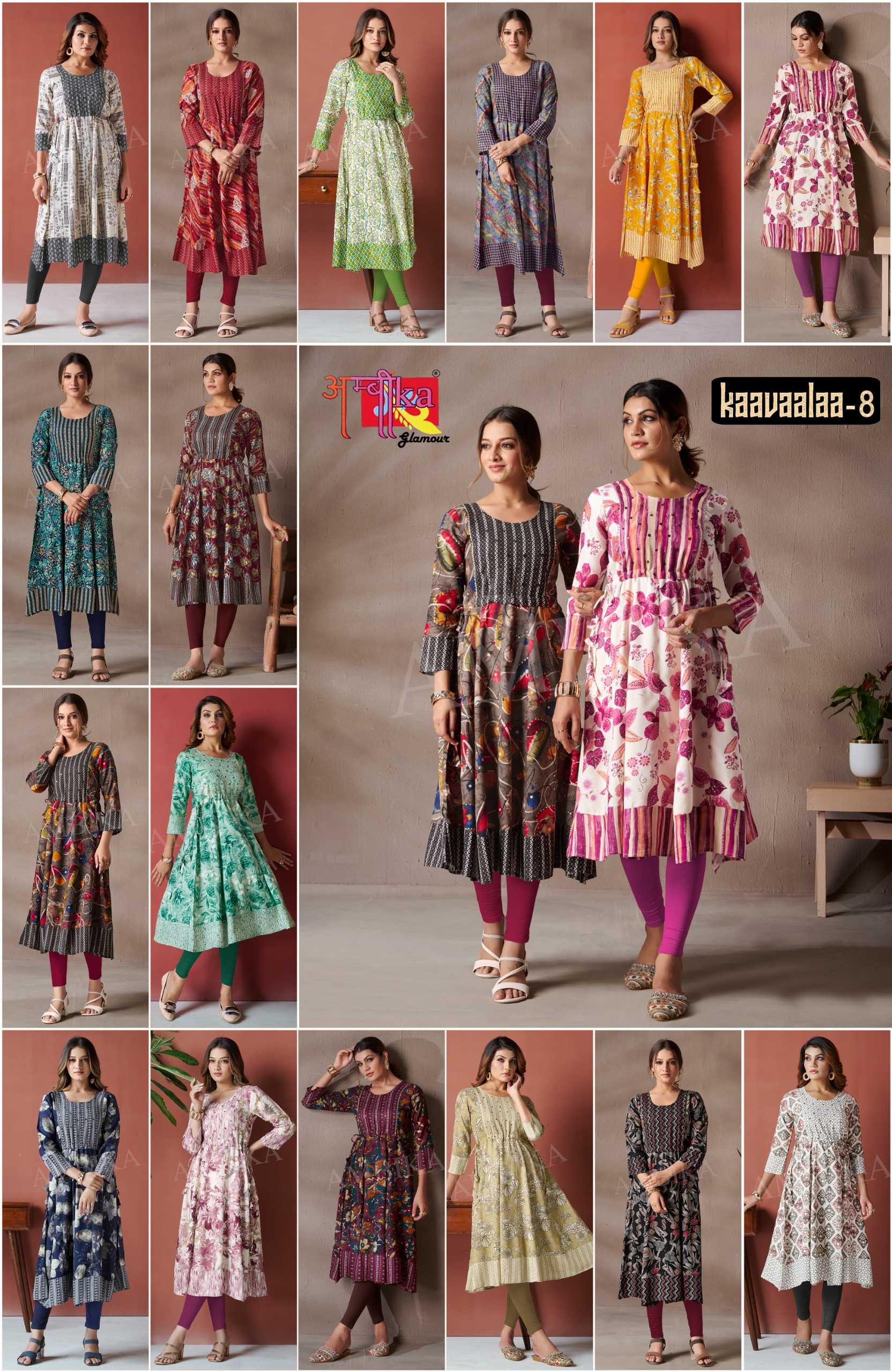 ambika kurtis kavalaa vol 8 readymade fancy rayon mirror work long kurti