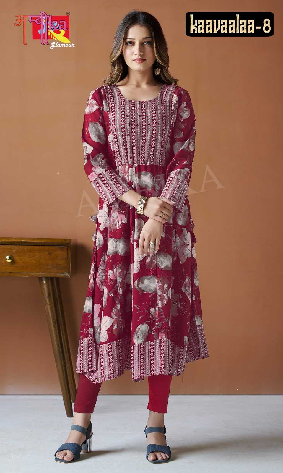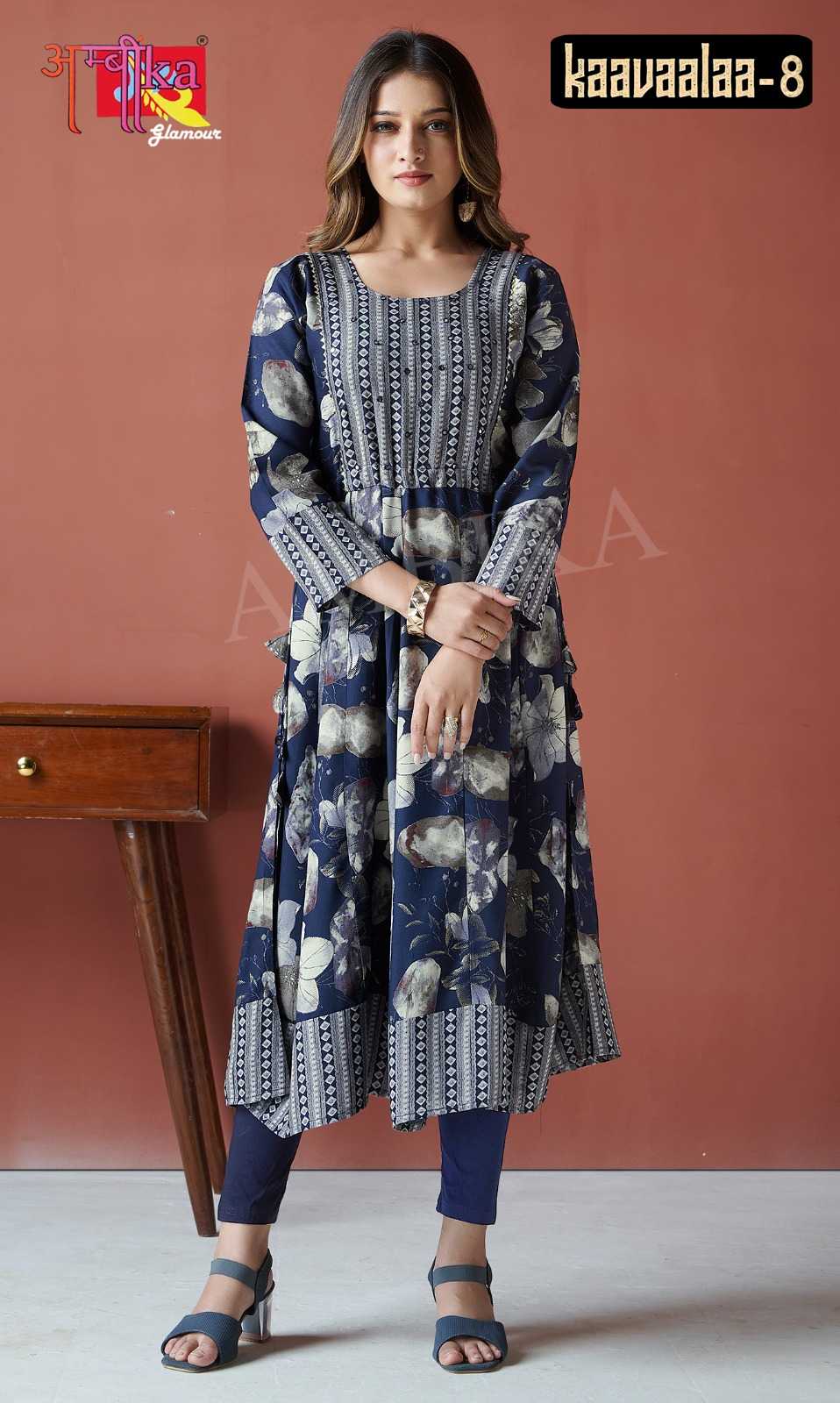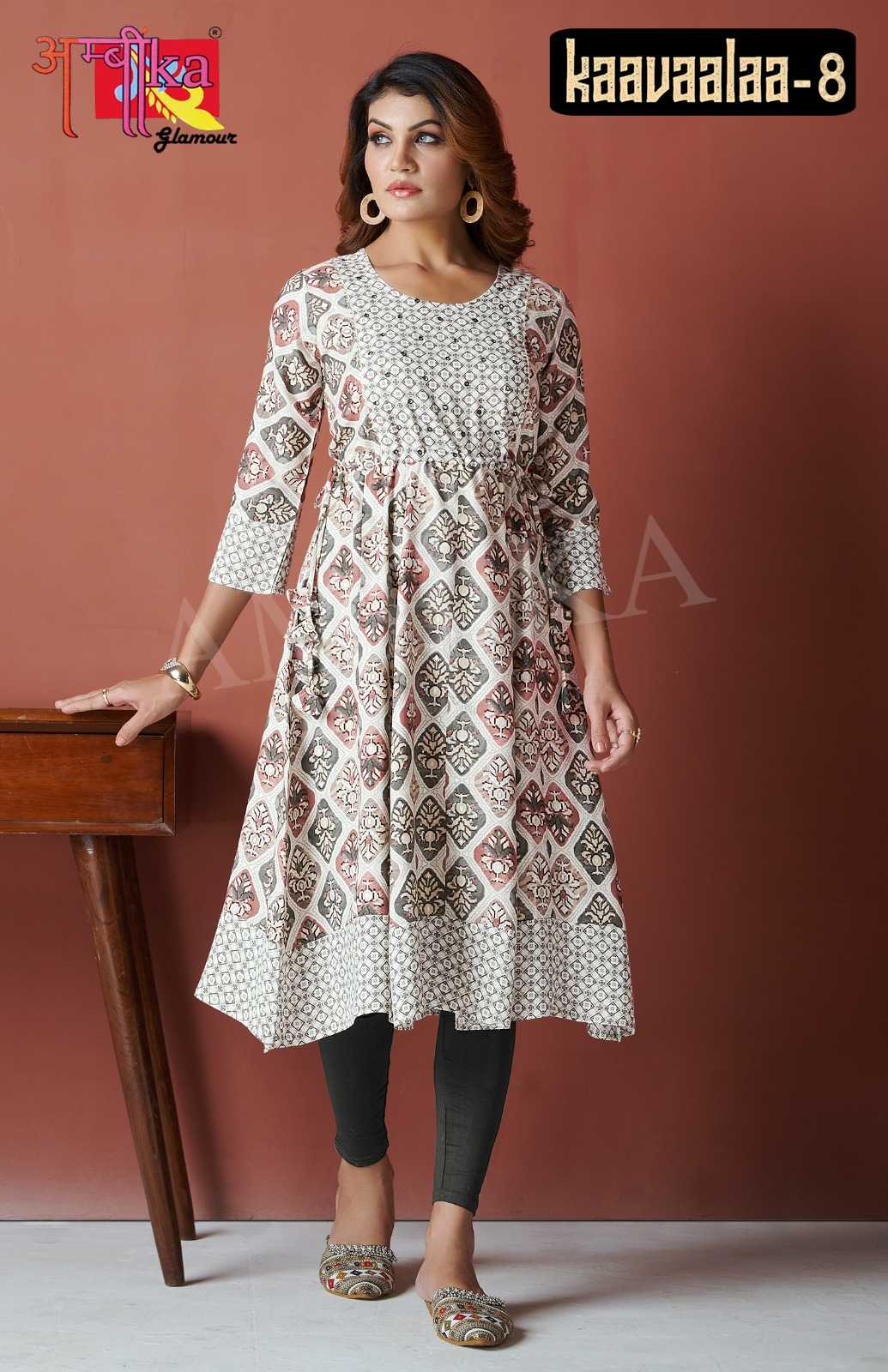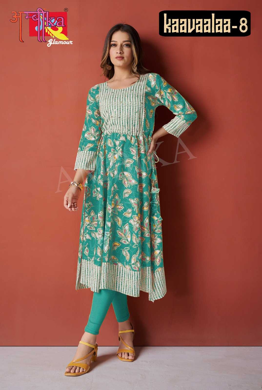 ambika kurtis kavalaa vol 8 readymade fancy rayon mirror work long kurti