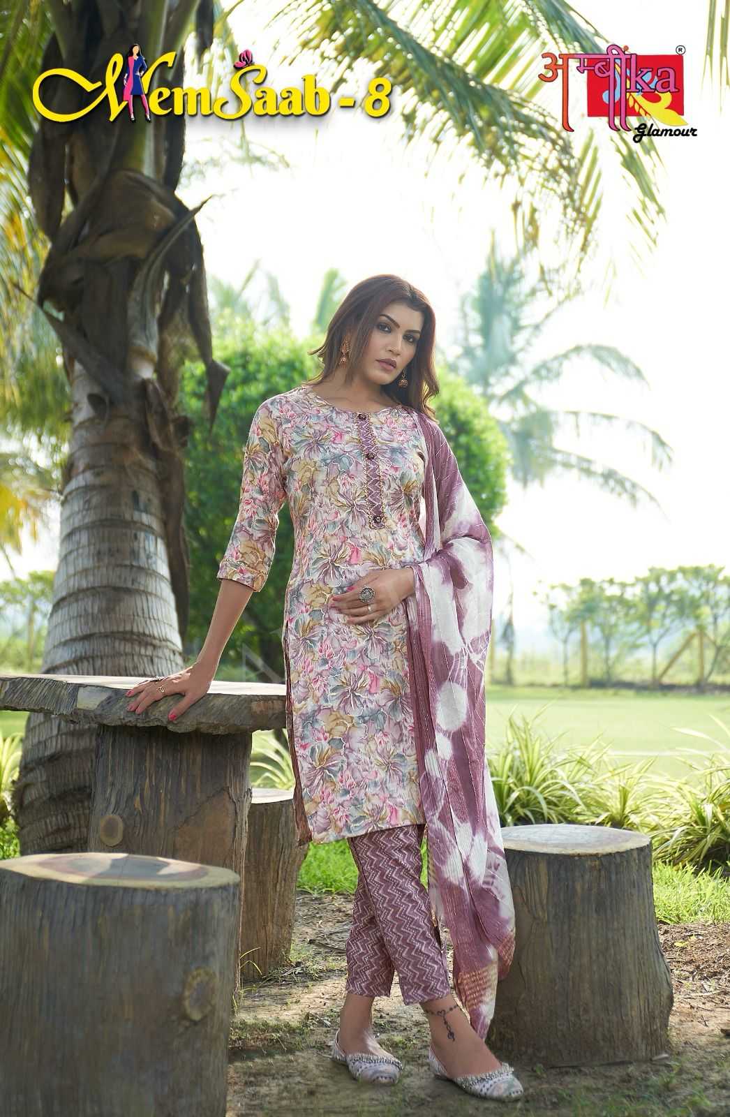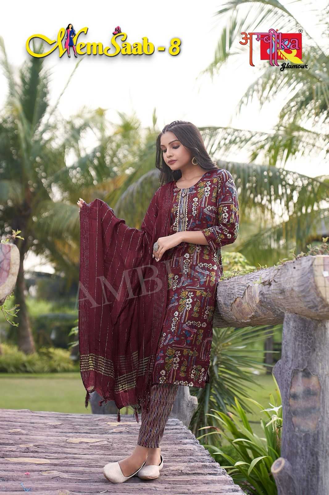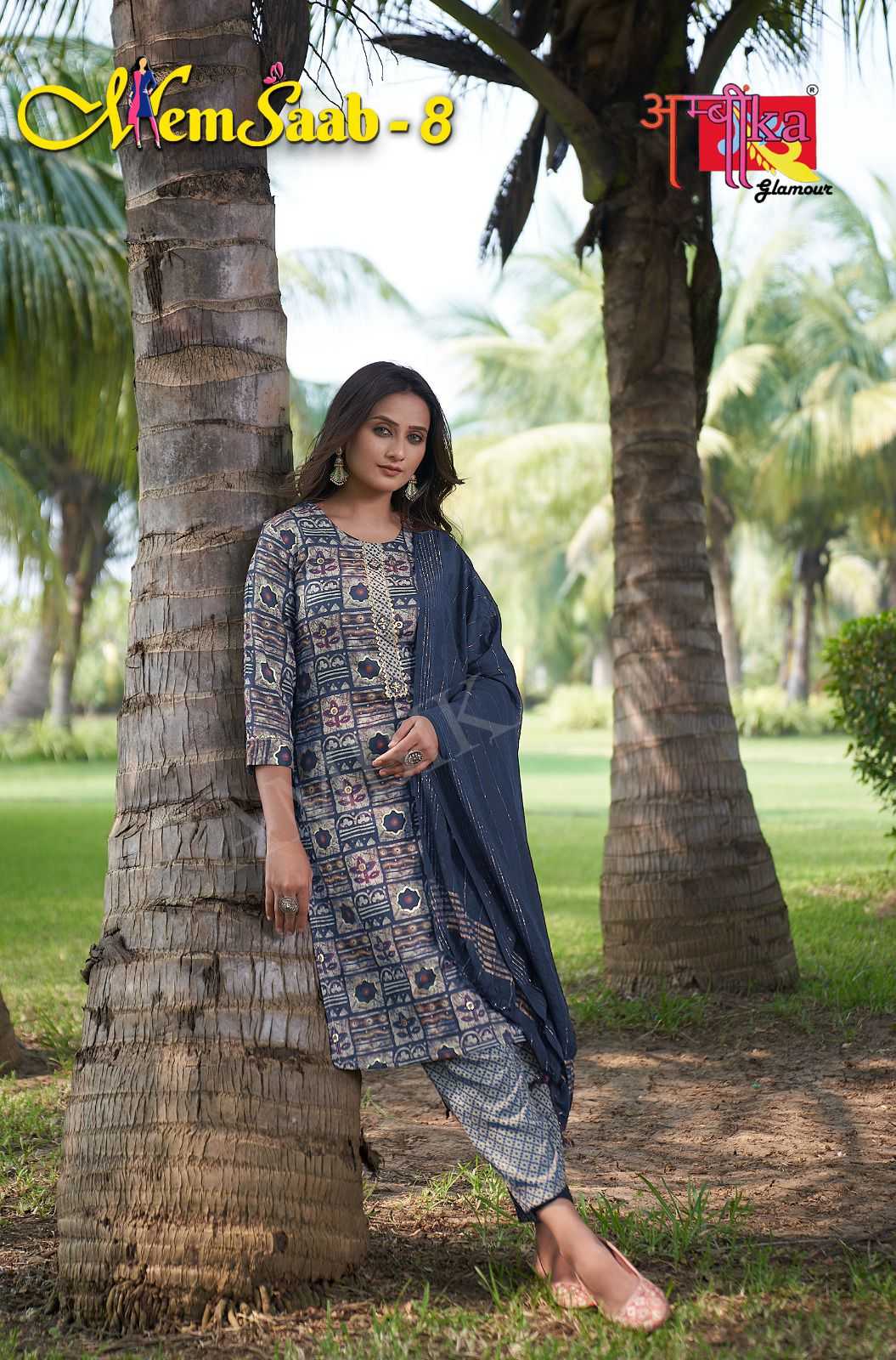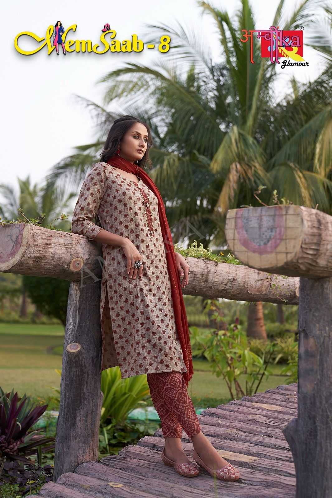 ambika kurtis memsaab vol 8 beautiful fullstitch new design 3 pcs combo set