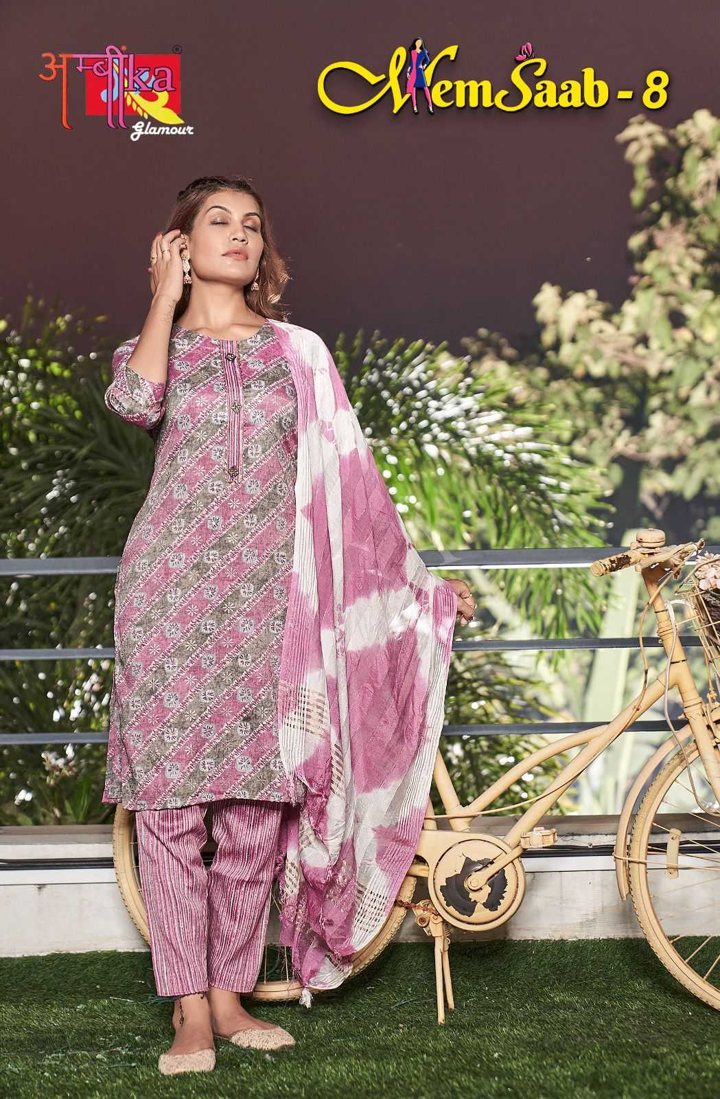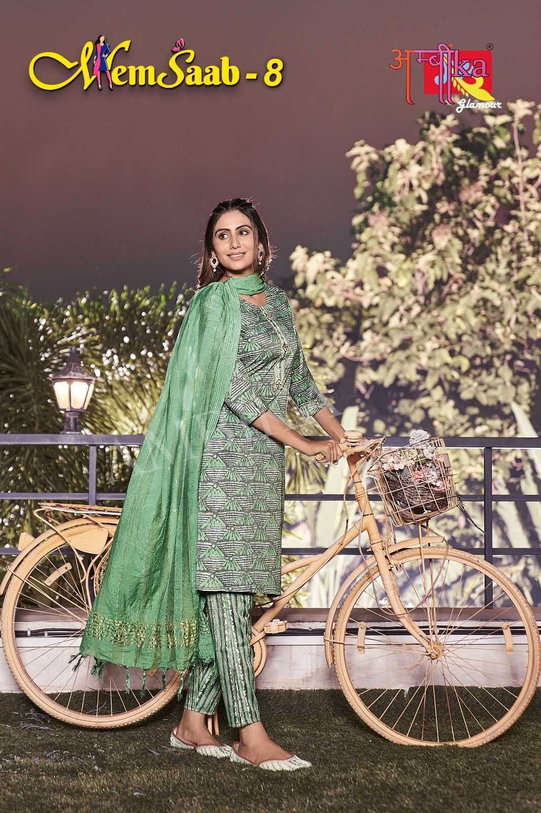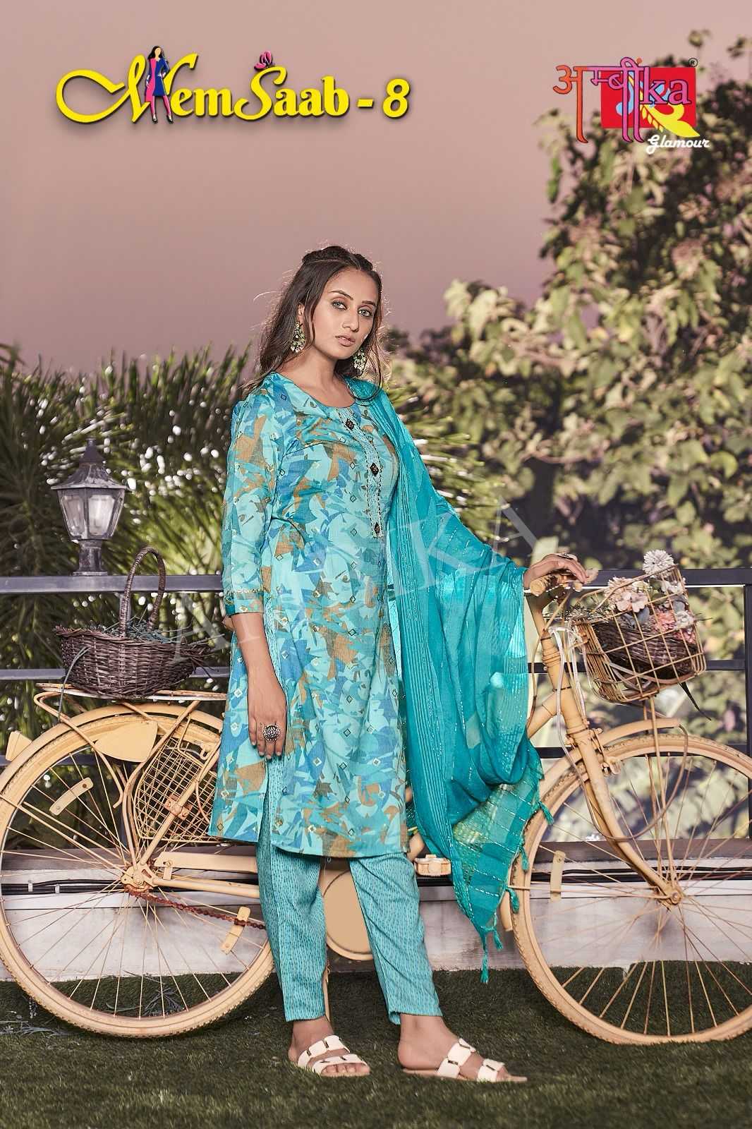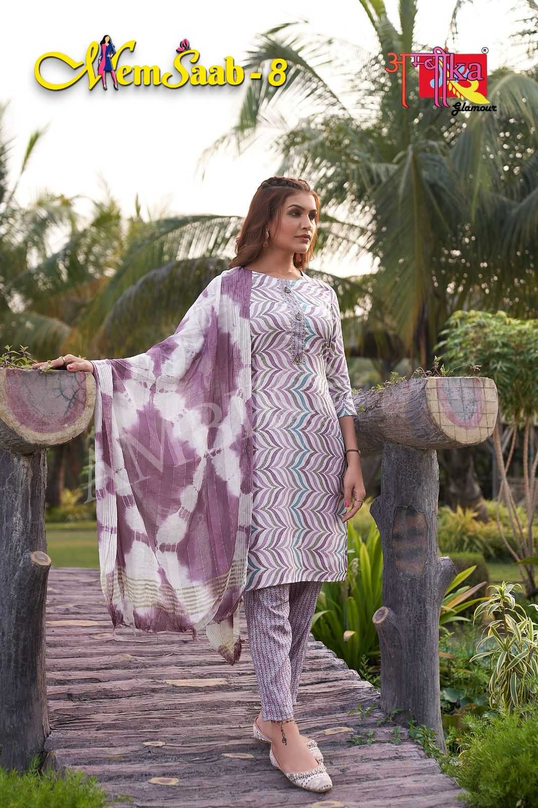 ambika kurtis memsaab vol 8 beautiful fullstitch new design 3 pcs combo set