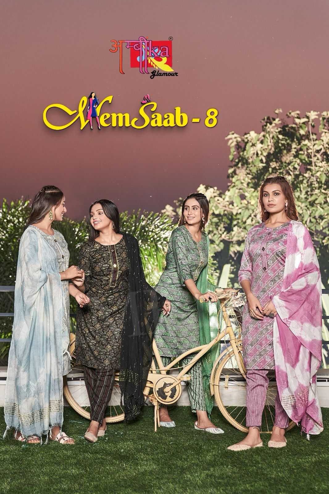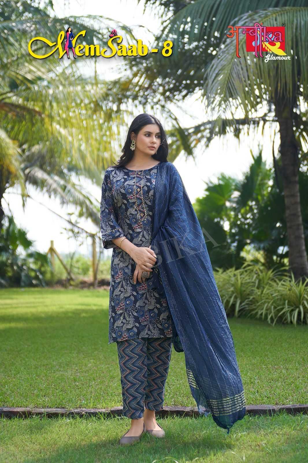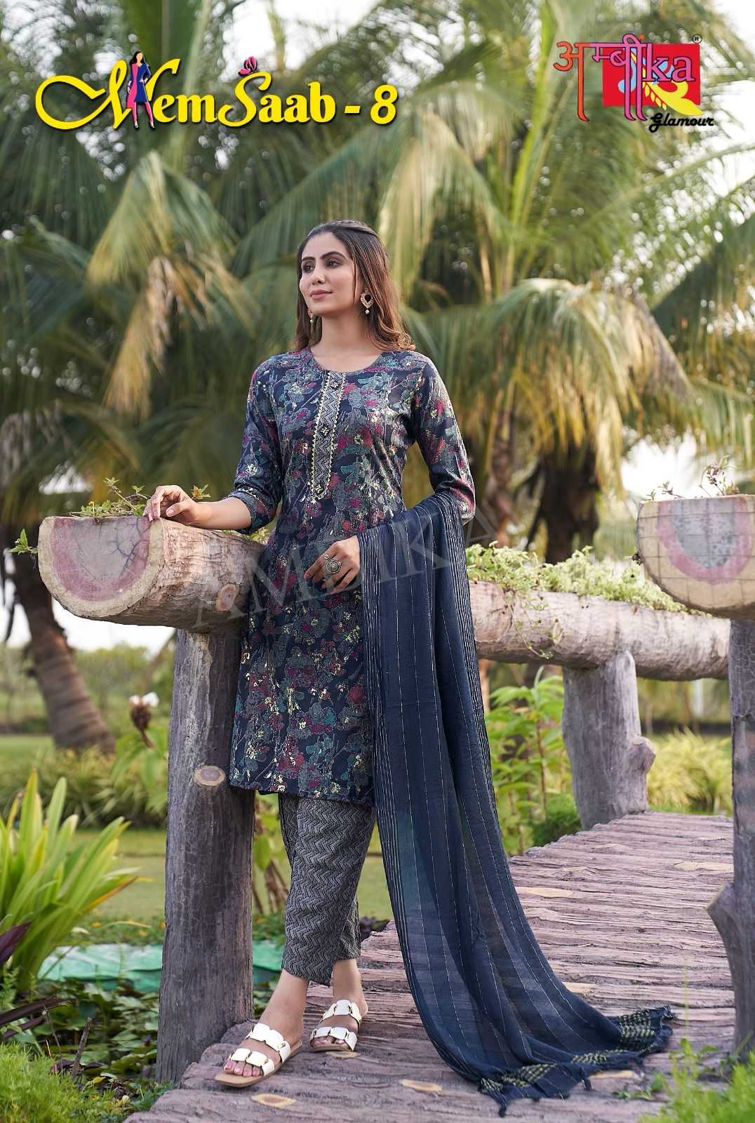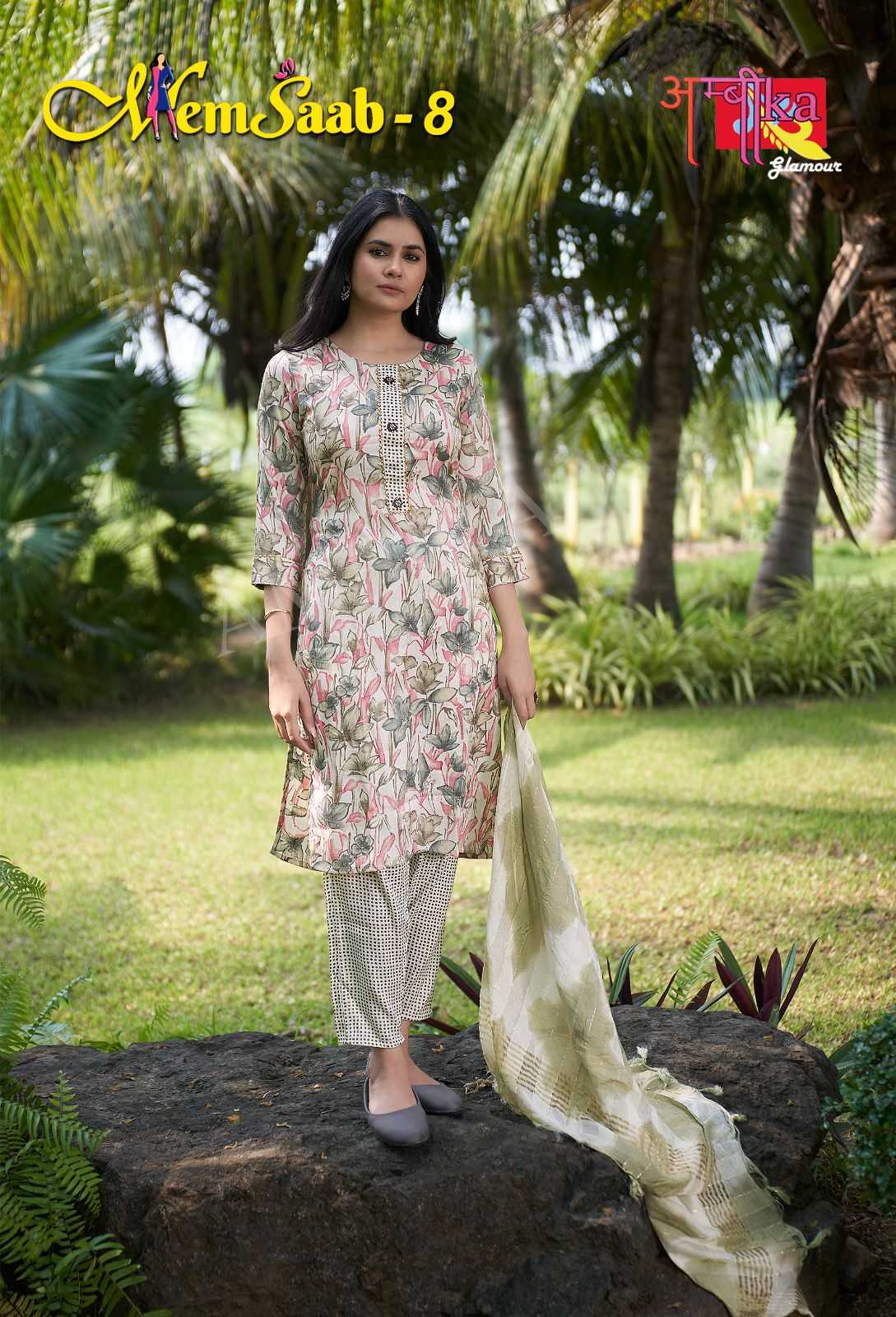 ambika kurtis memsaab vol 8 beautiful fullstitch new design 3 pcs combo set