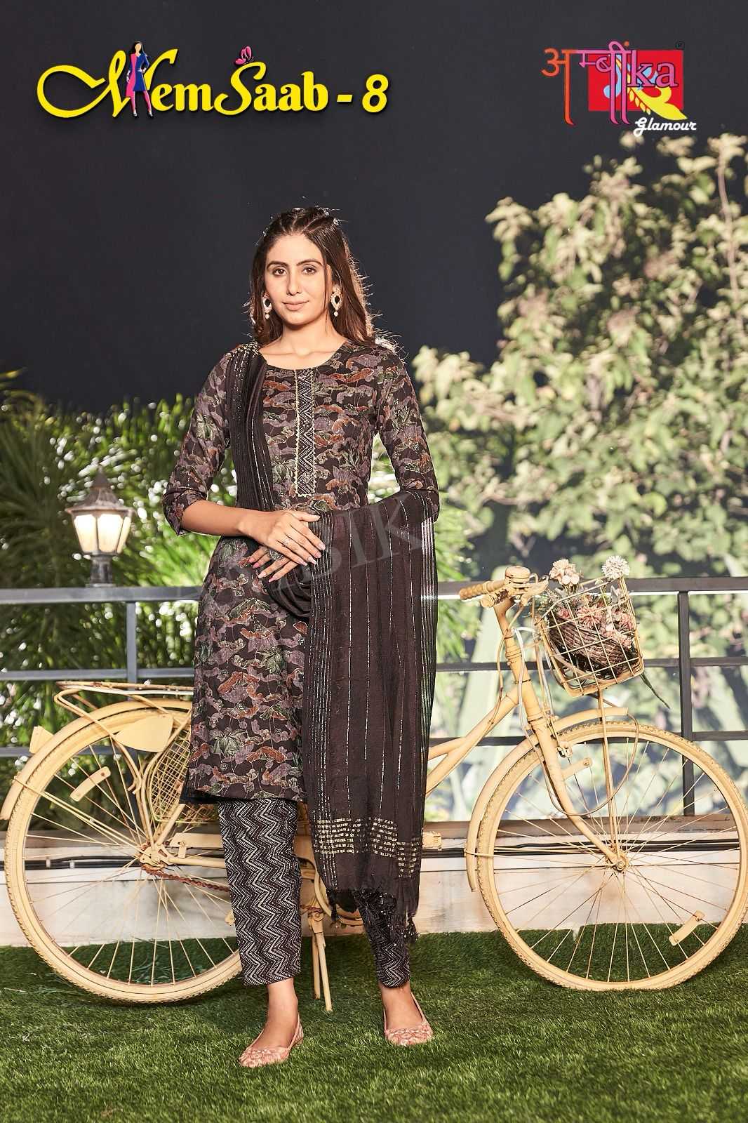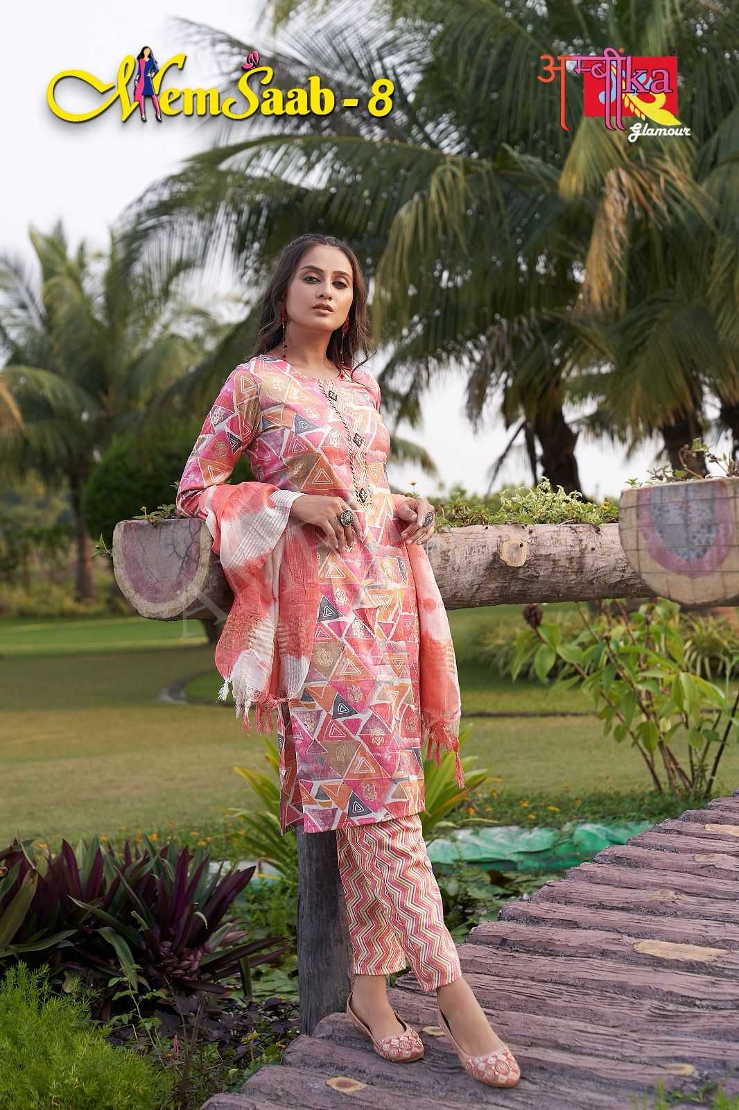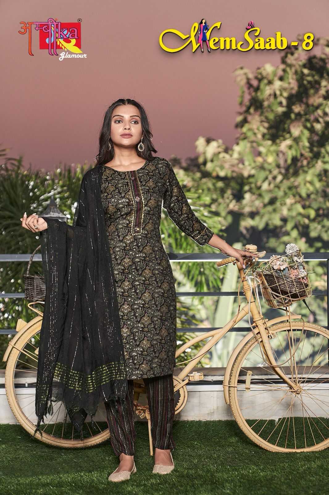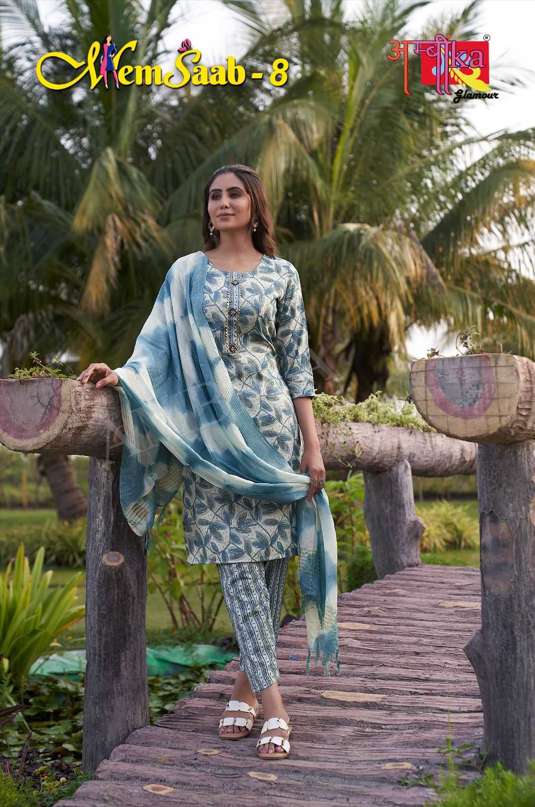 ambika kurtis memsaab vol 8 beautiful fullstitch new design 3 pcs combo set