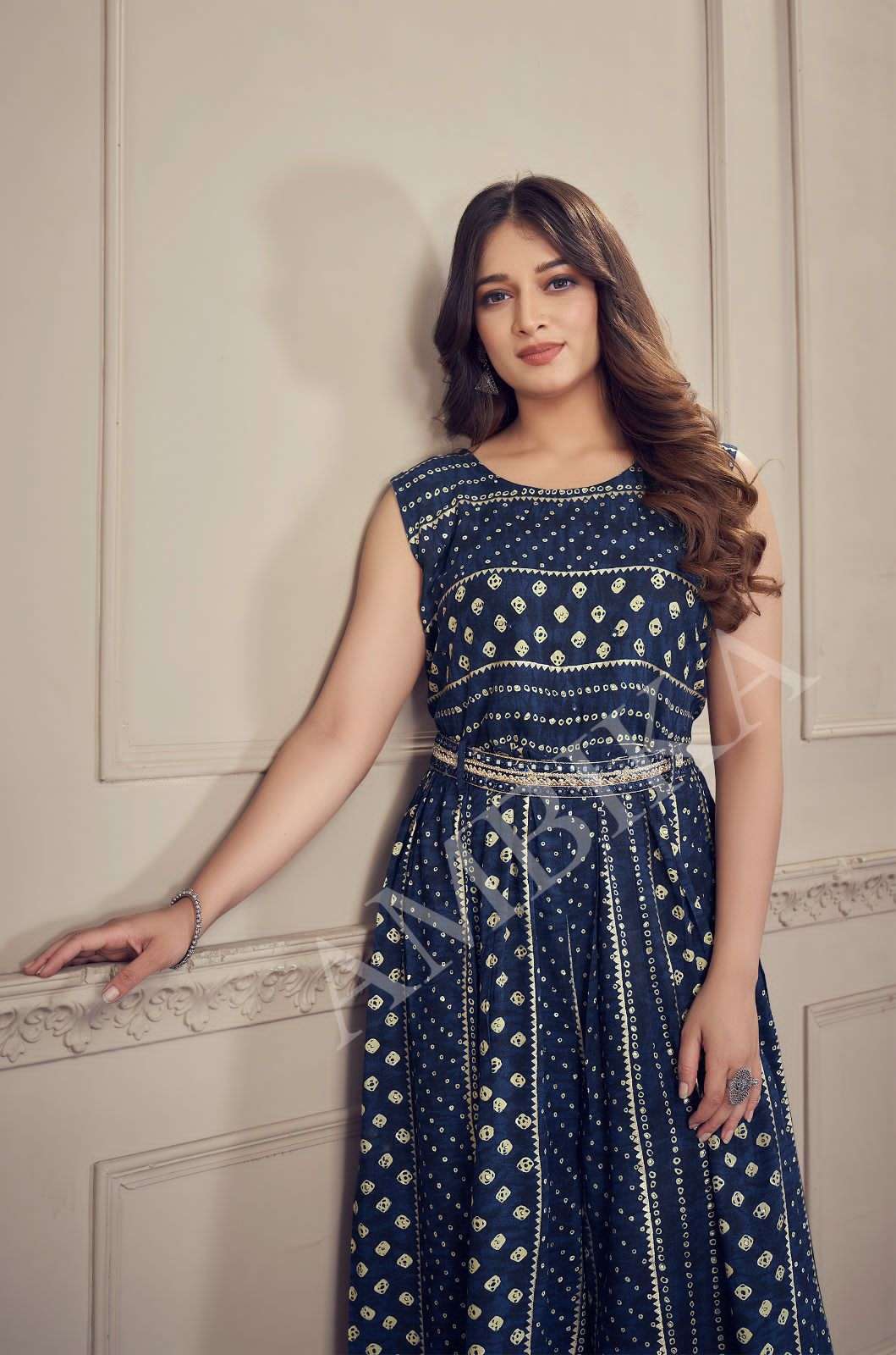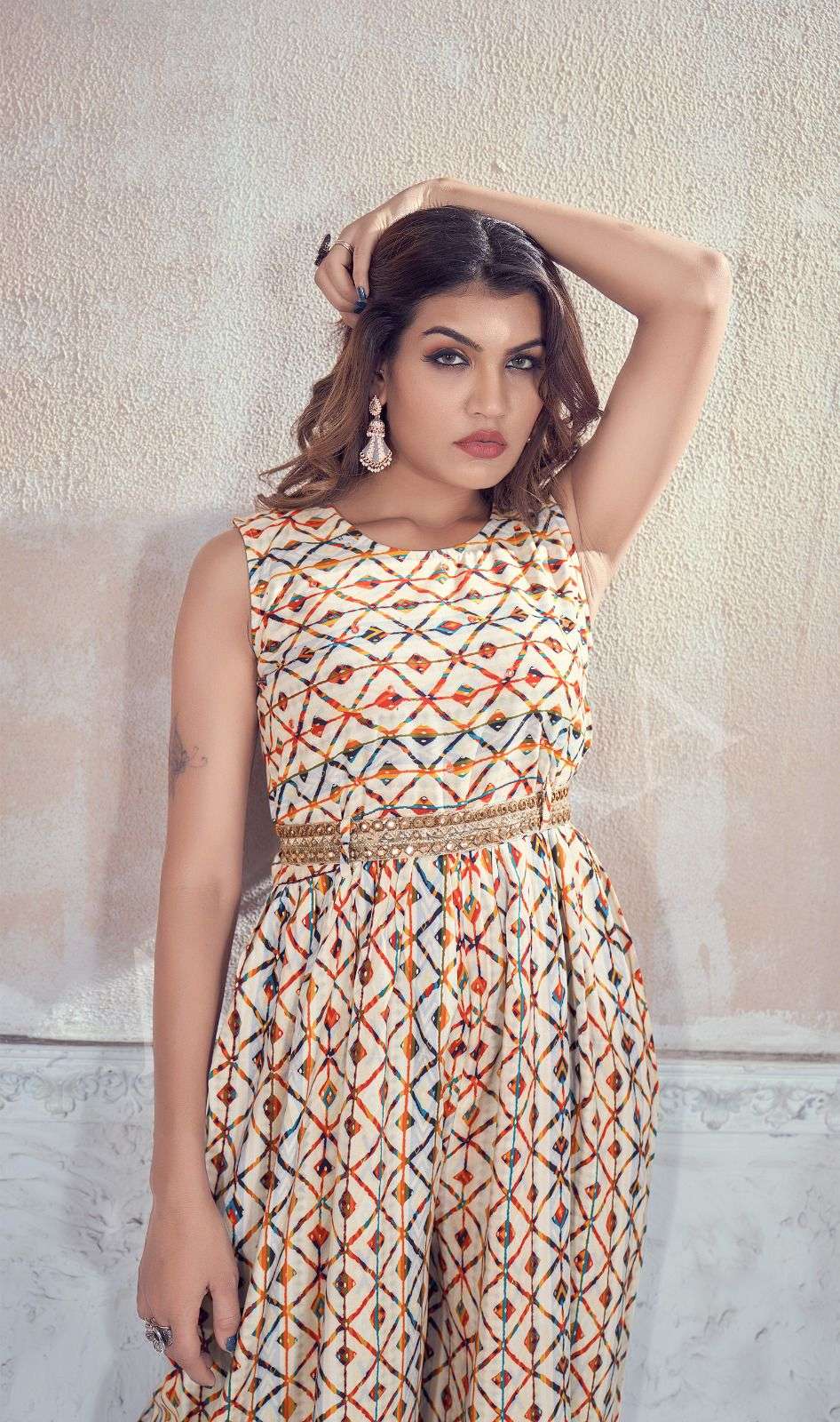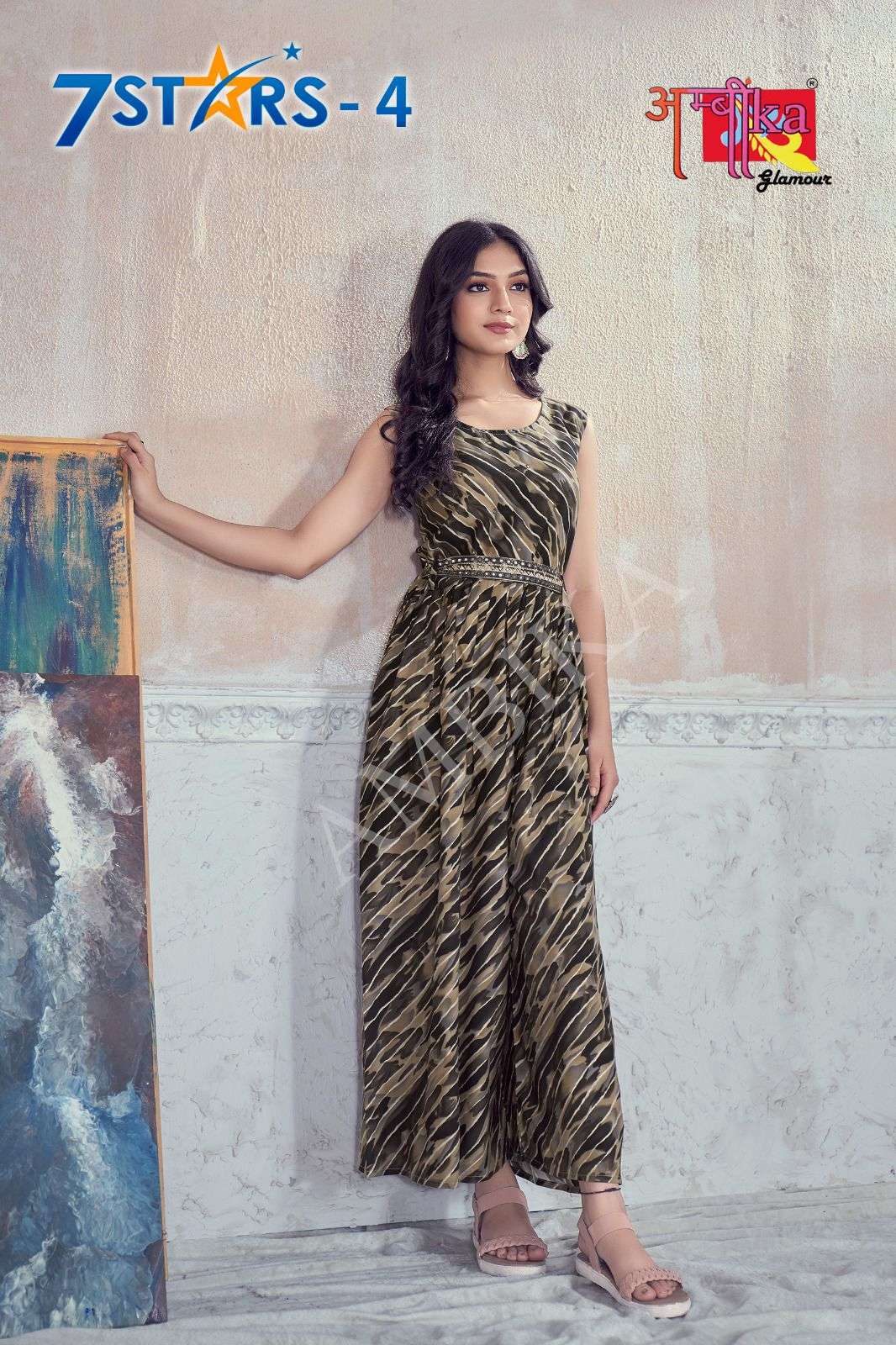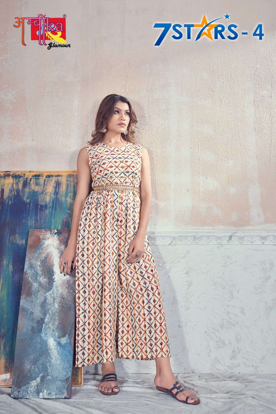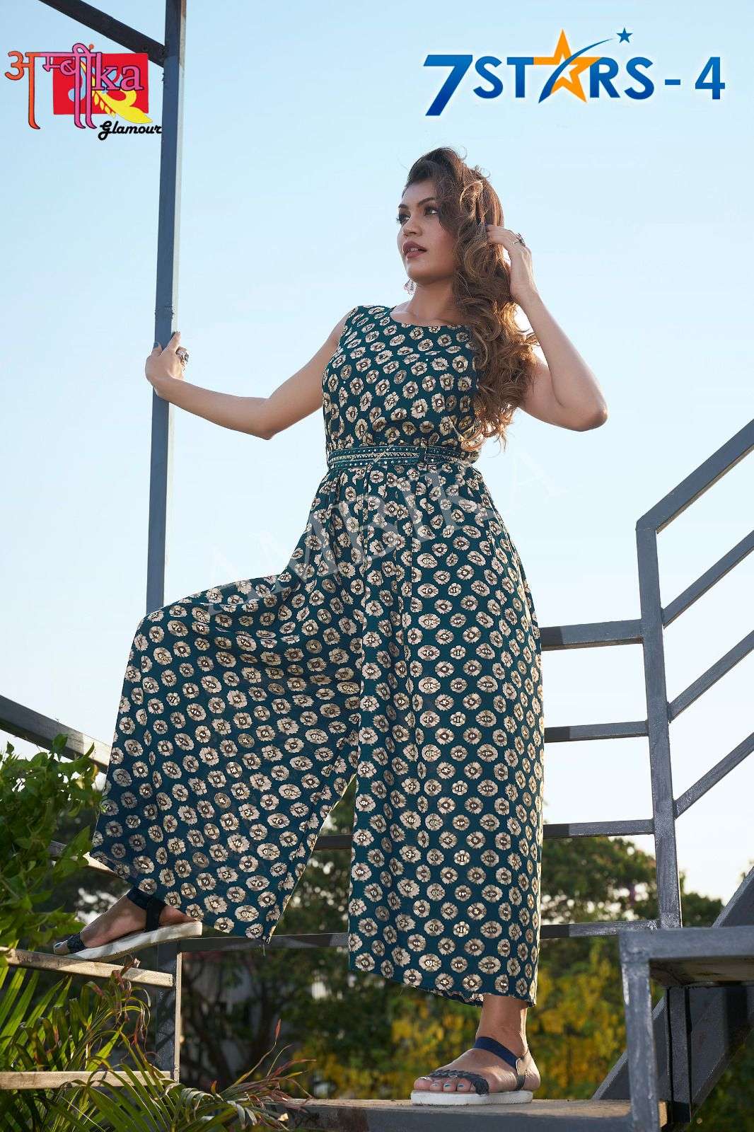 ambika kurtis present 7 stars vol 4 fancy wear jumpsuit with separate belt combo set