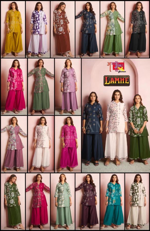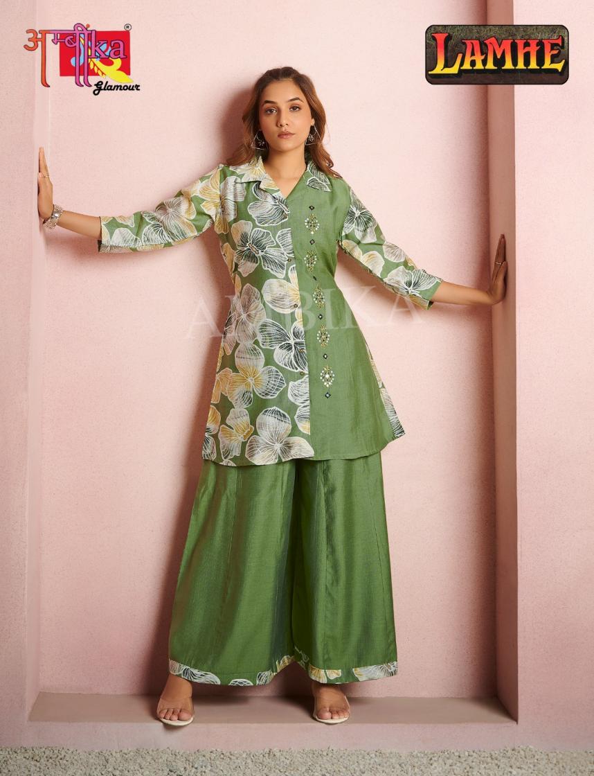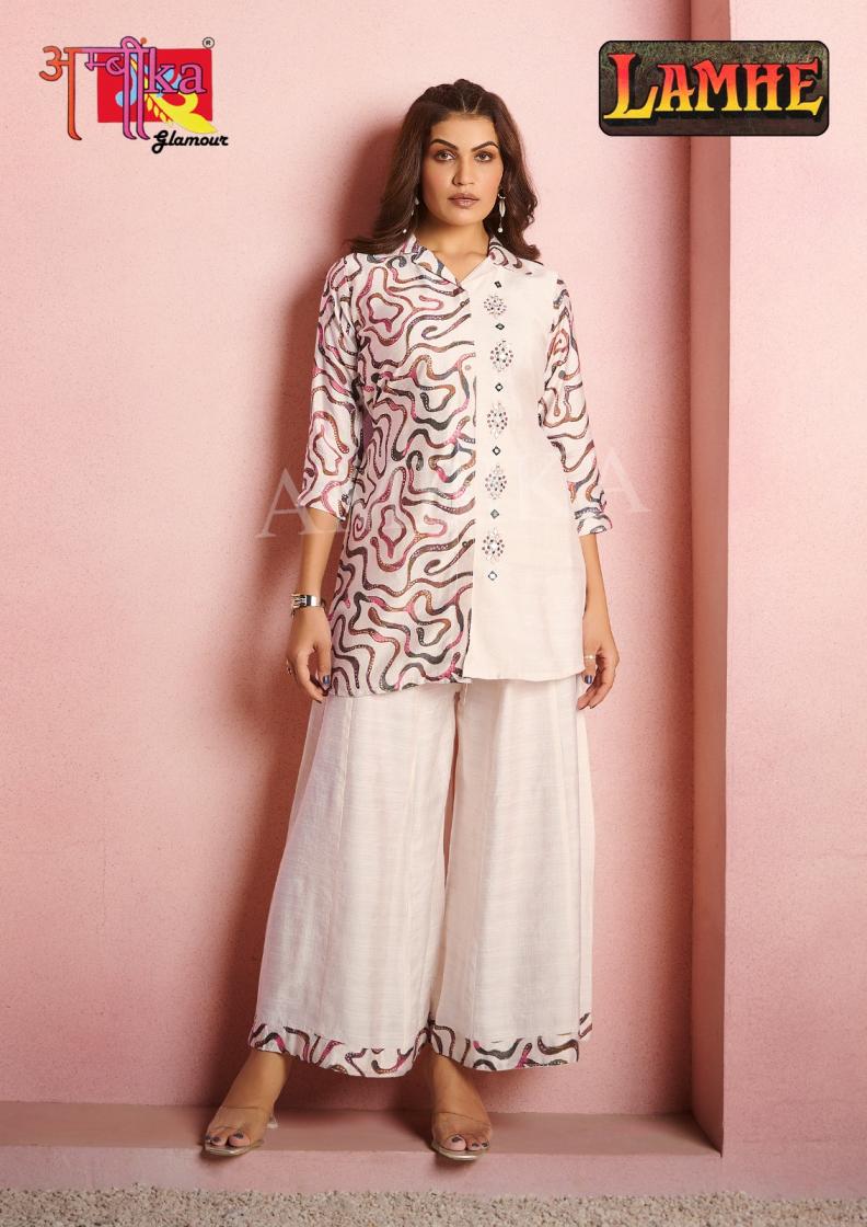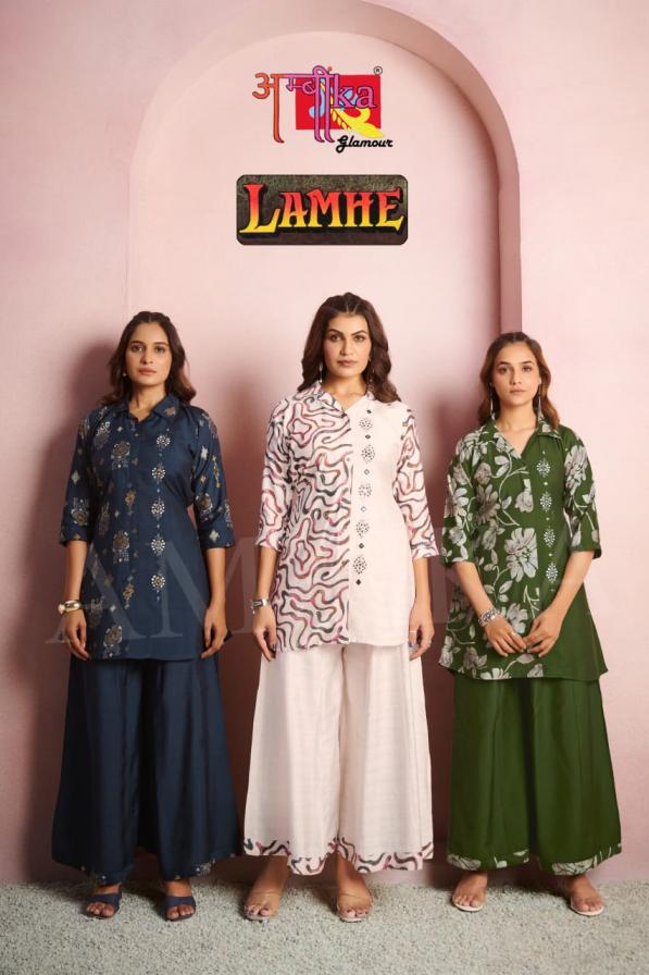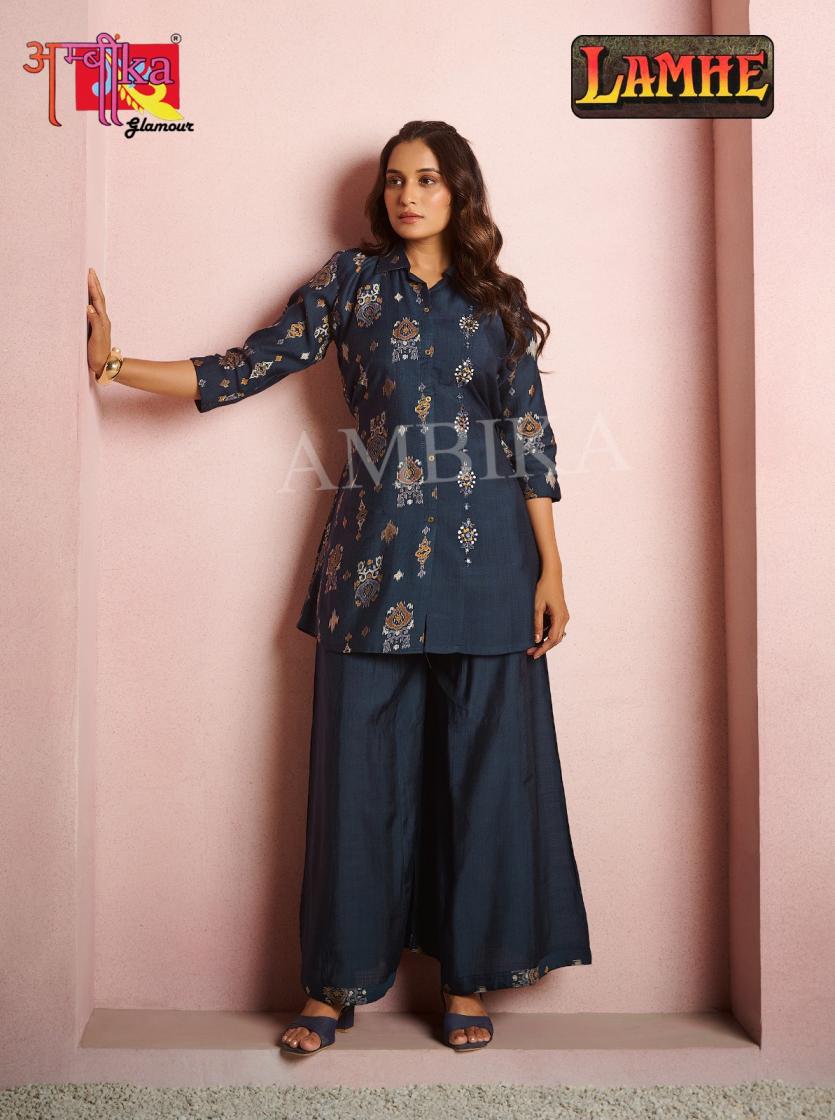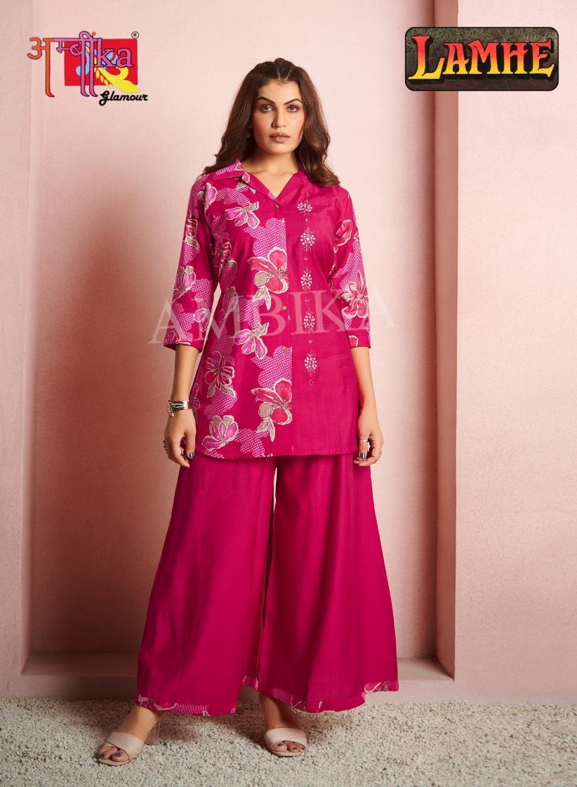 ambika lamhe vertican classic look fully stitch kurti with plazzo combo sets