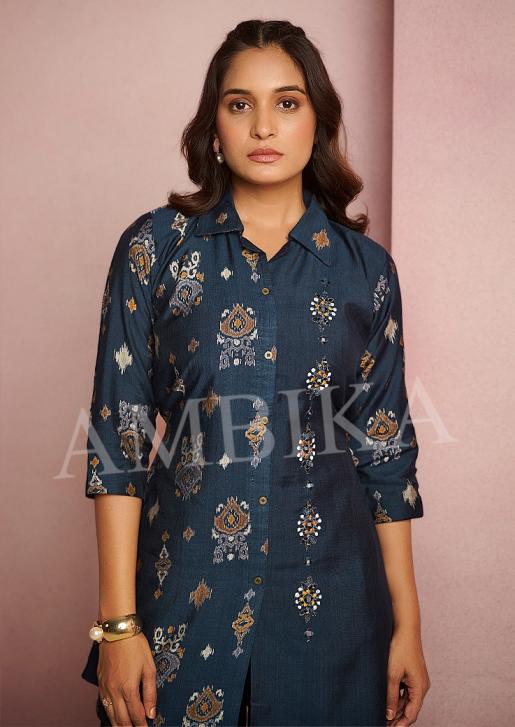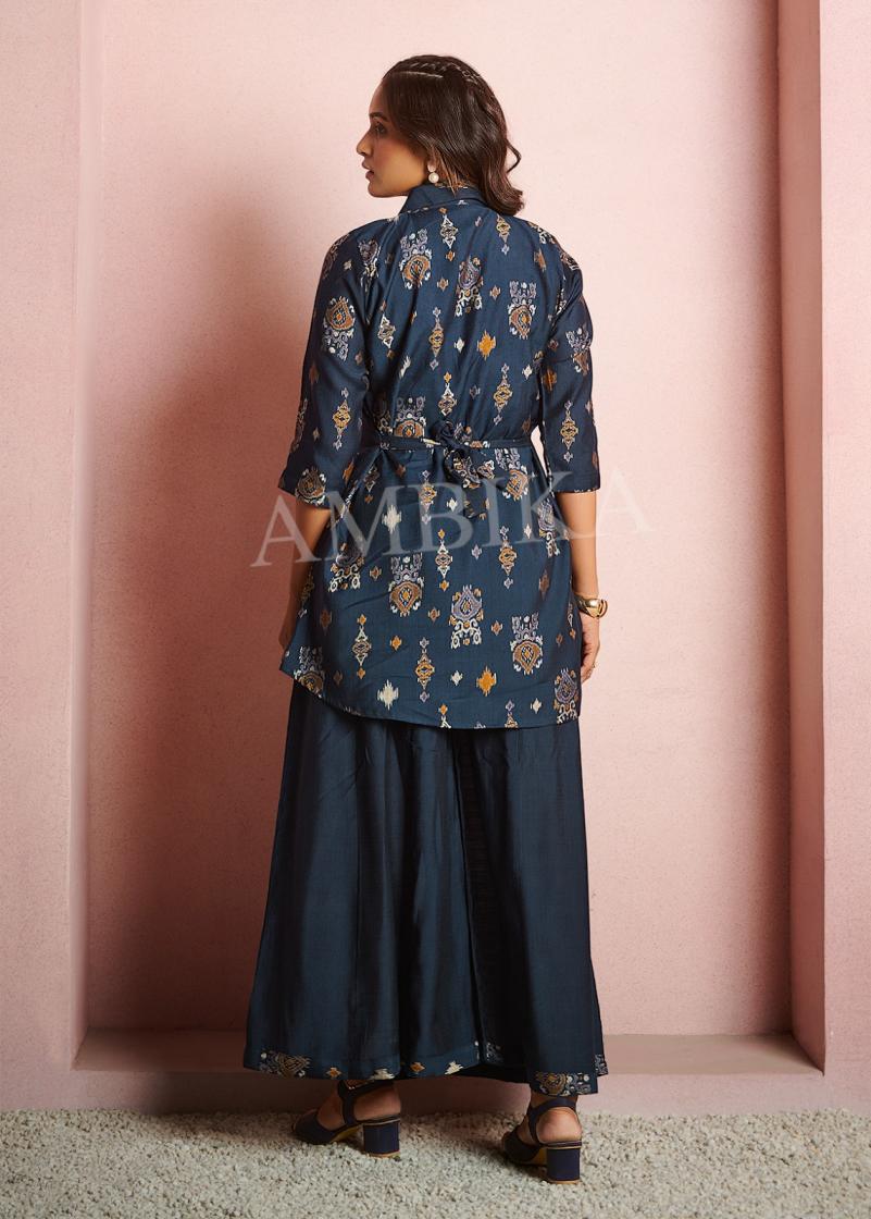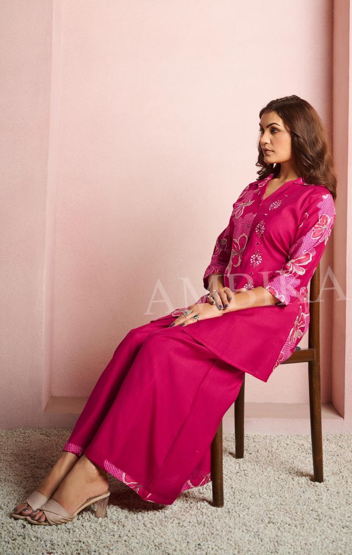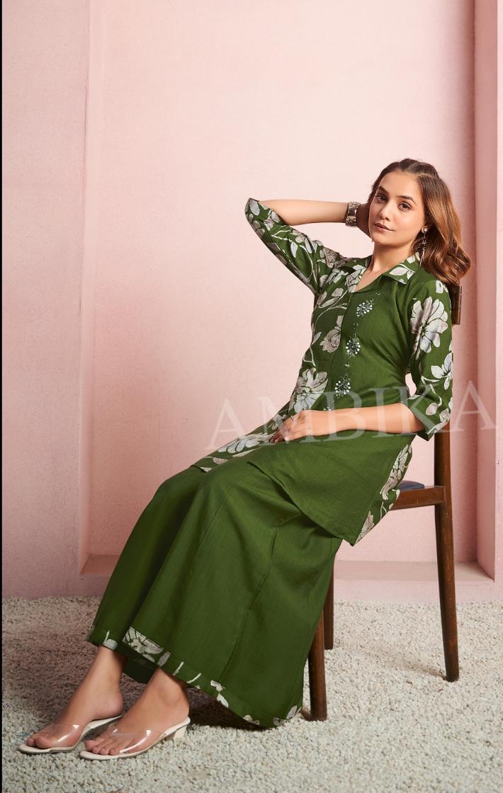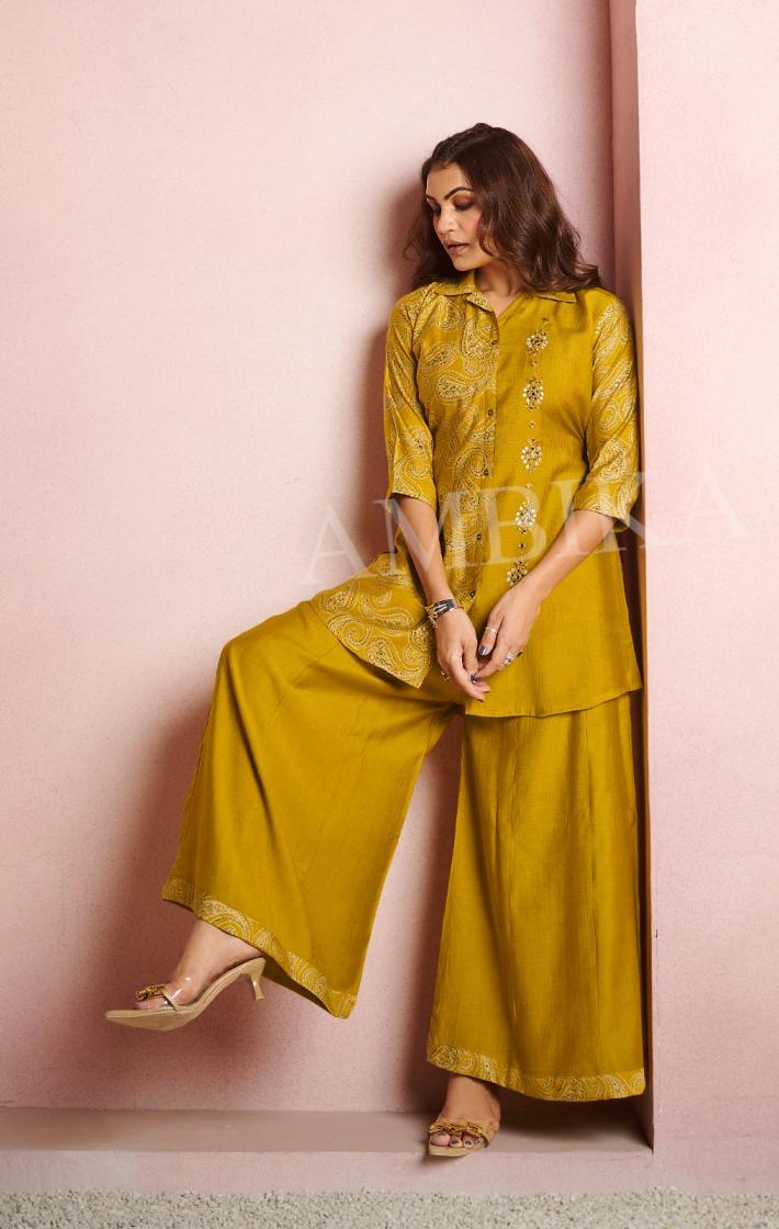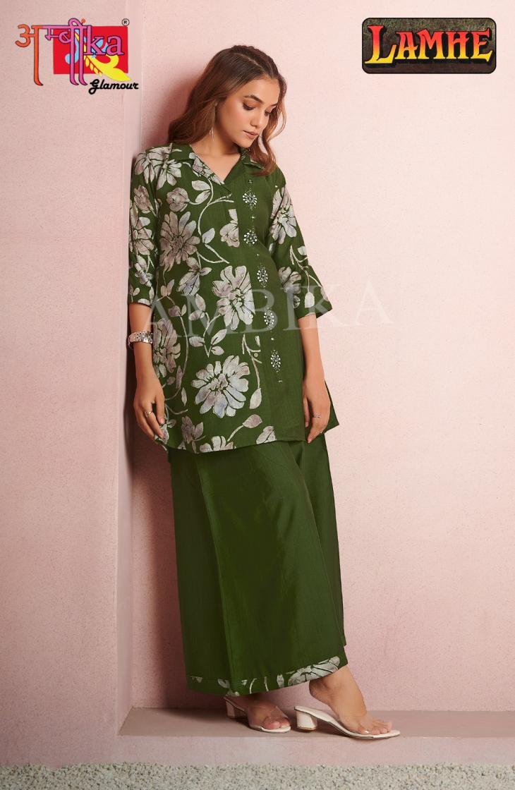 ambika lamhe vertican classic look fully stitch kurti with plazzo combo sets