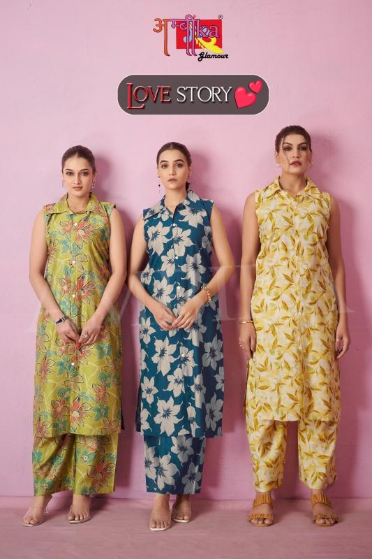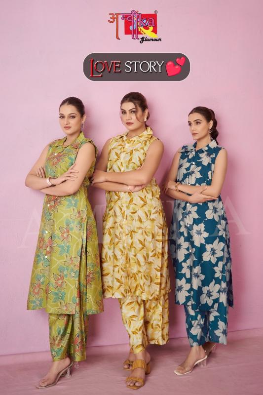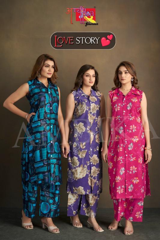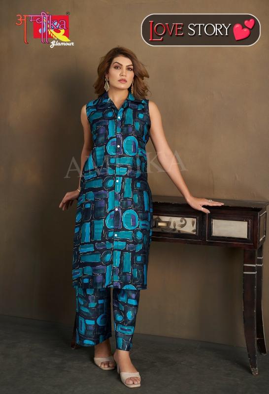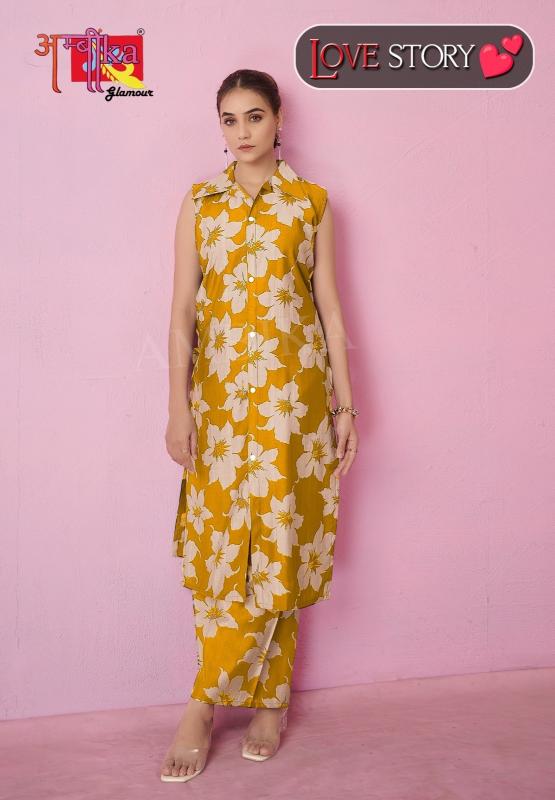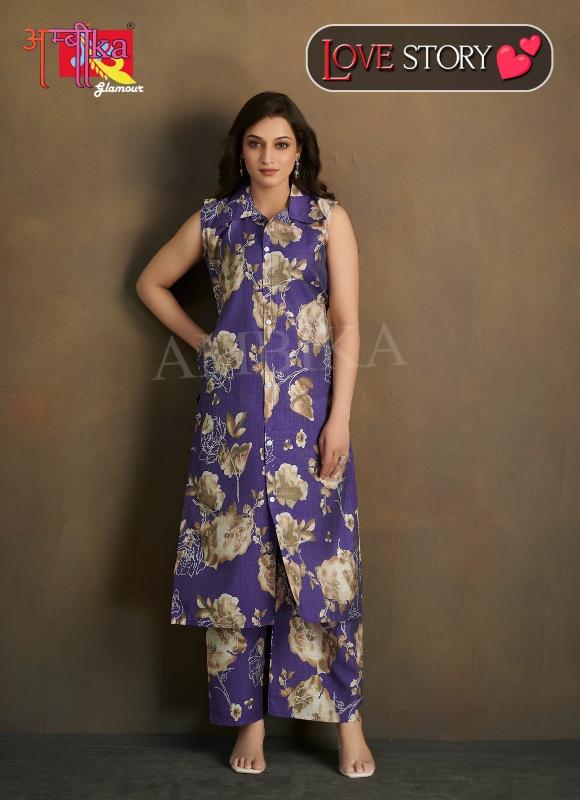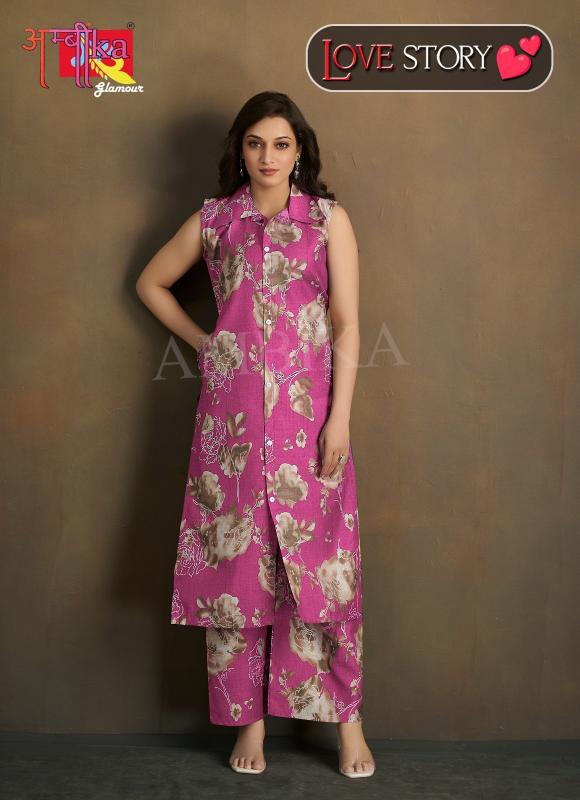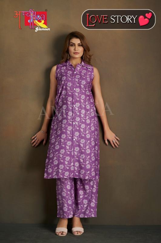 ambika love story vetican mill print with belt readymade combo kurti with pair