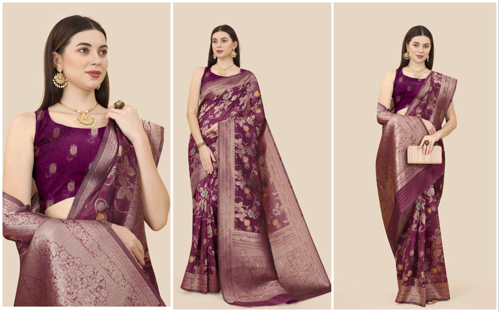 Ambika1 Organza Weaving Silk Saree & Blouse Organza |