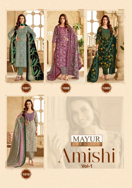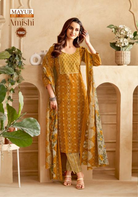 amishi vol 1 by mayur creation full stitch cotton elegance big size 3pcs dress