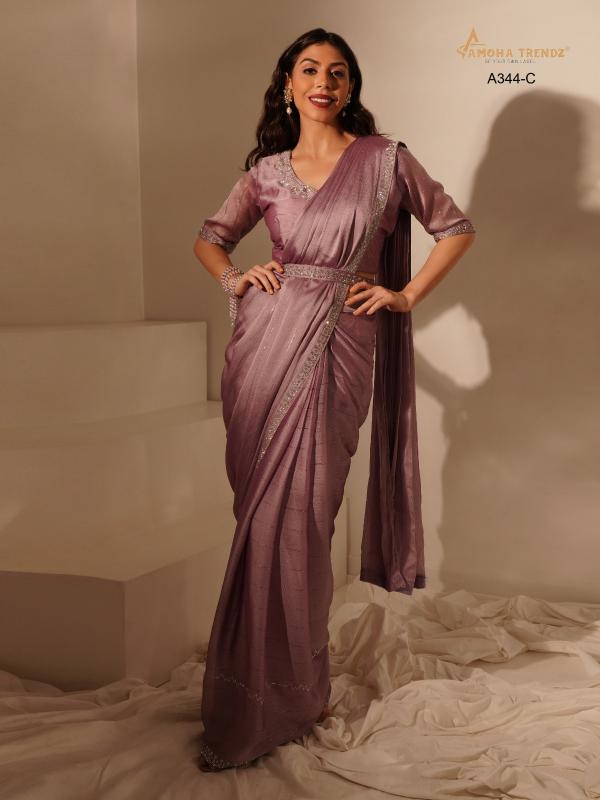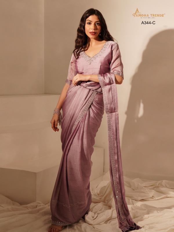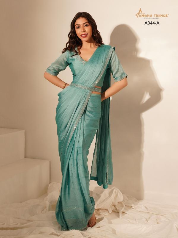 amoha trendz a344 chinon silk beautiful traditional wear ready to wear saree wholesale