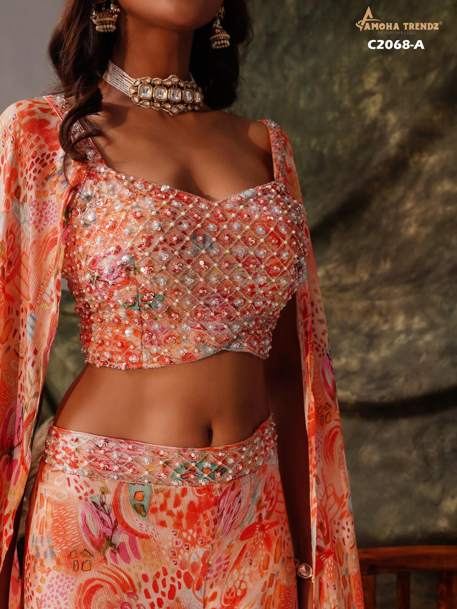 amoha trendz c2068 chinon readymade traditional crop top for girls