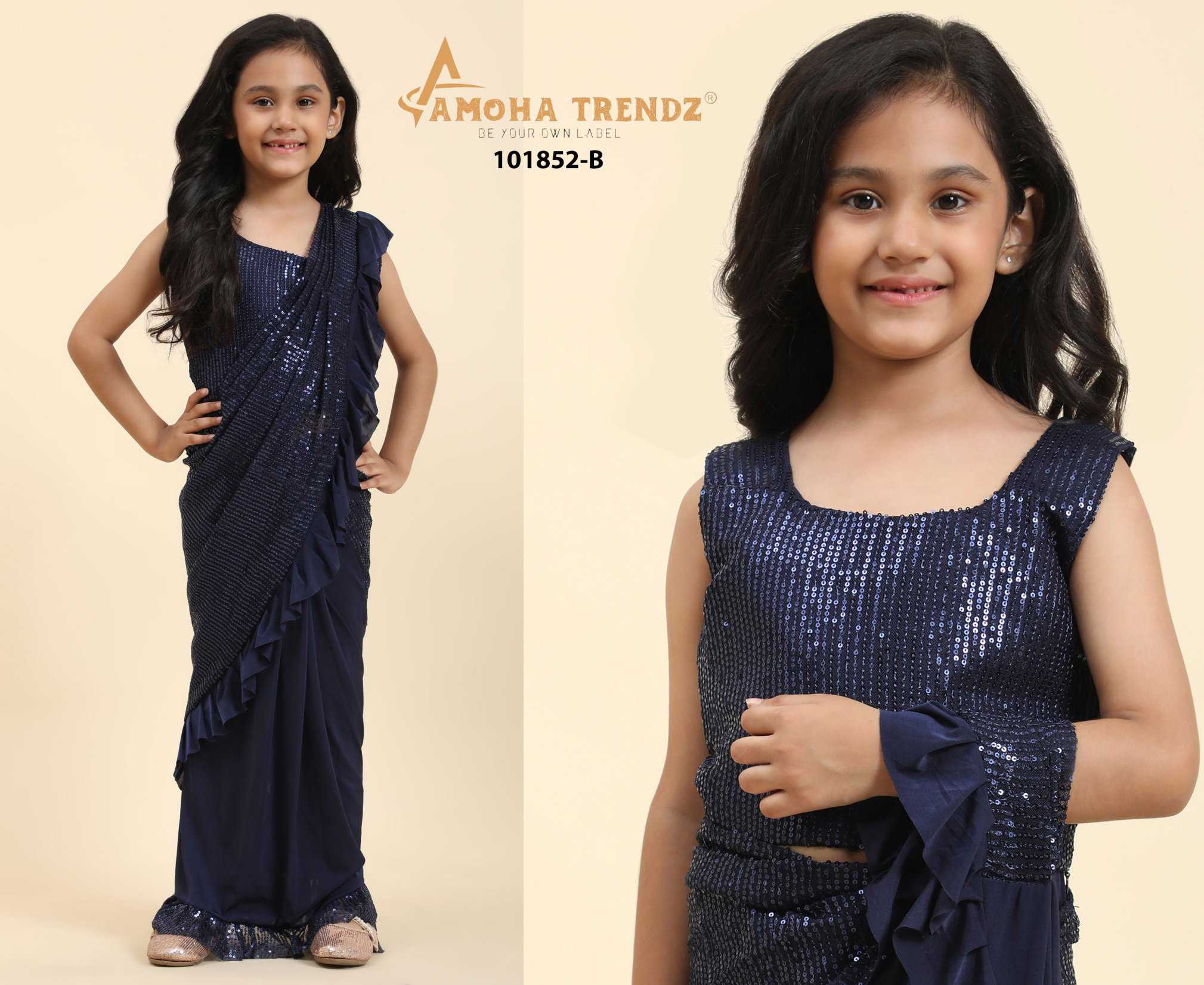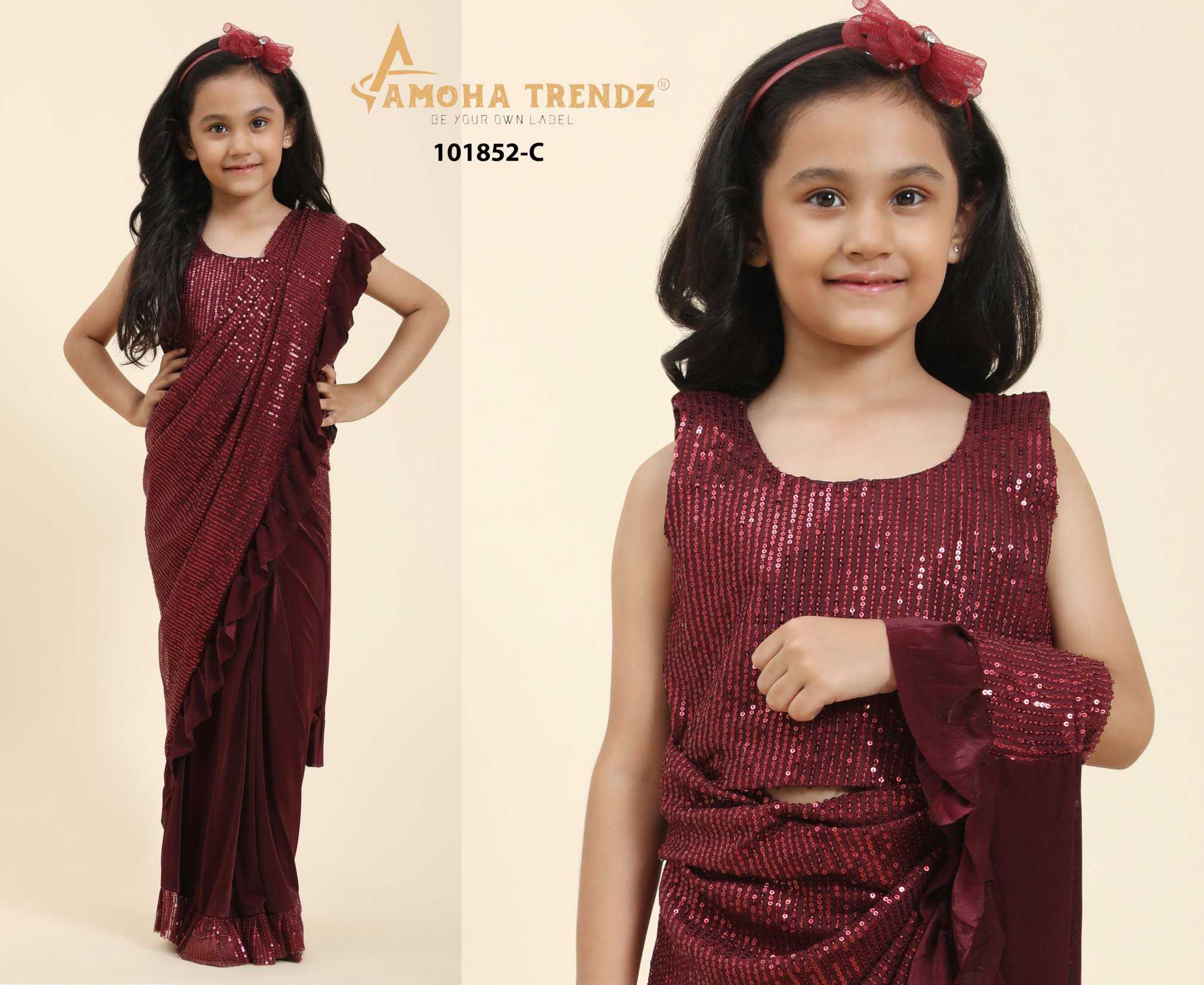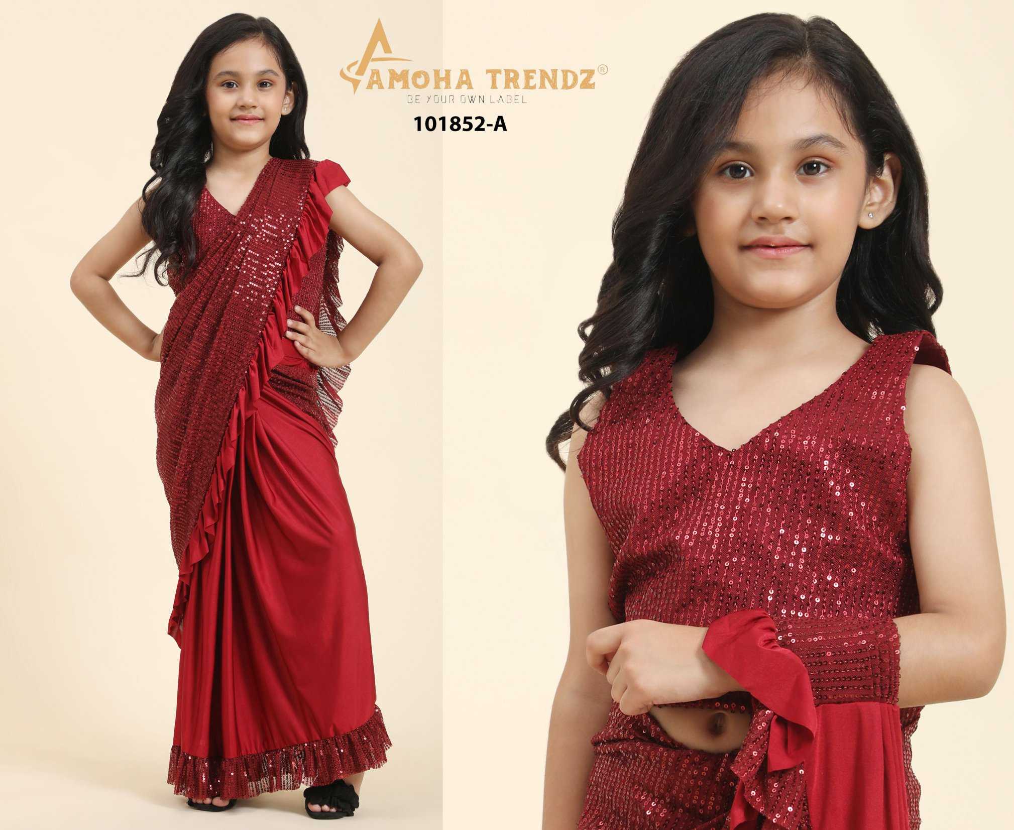 amoha trendz k101852 designer kids wear readymade fancy sarees